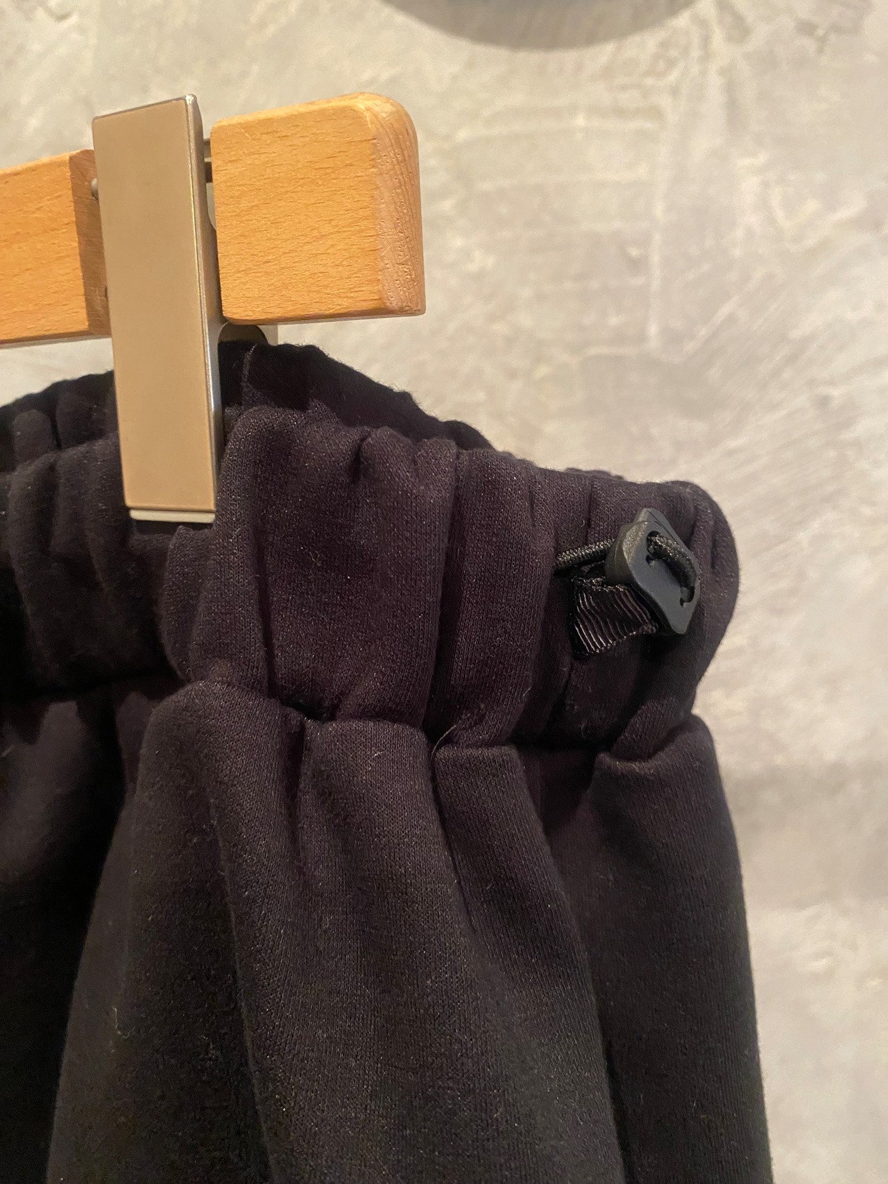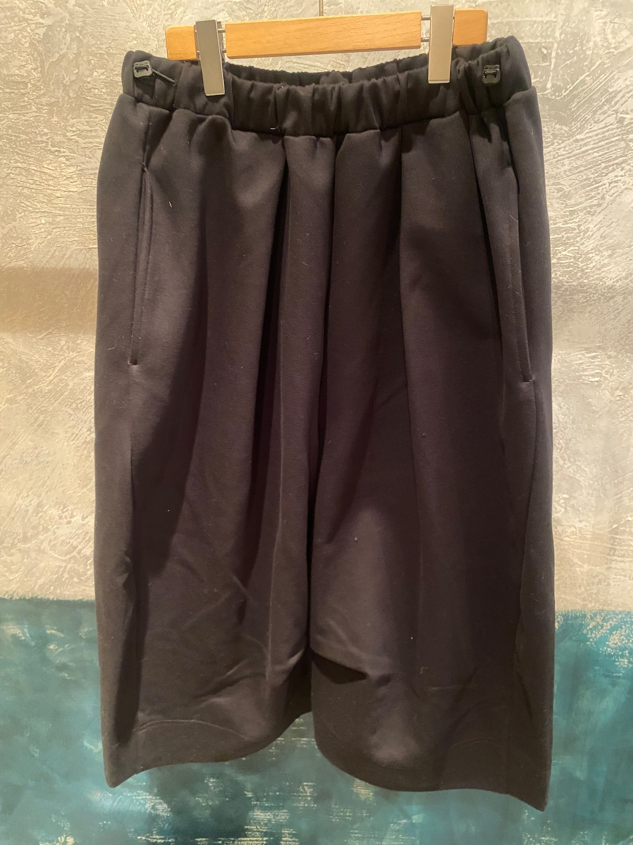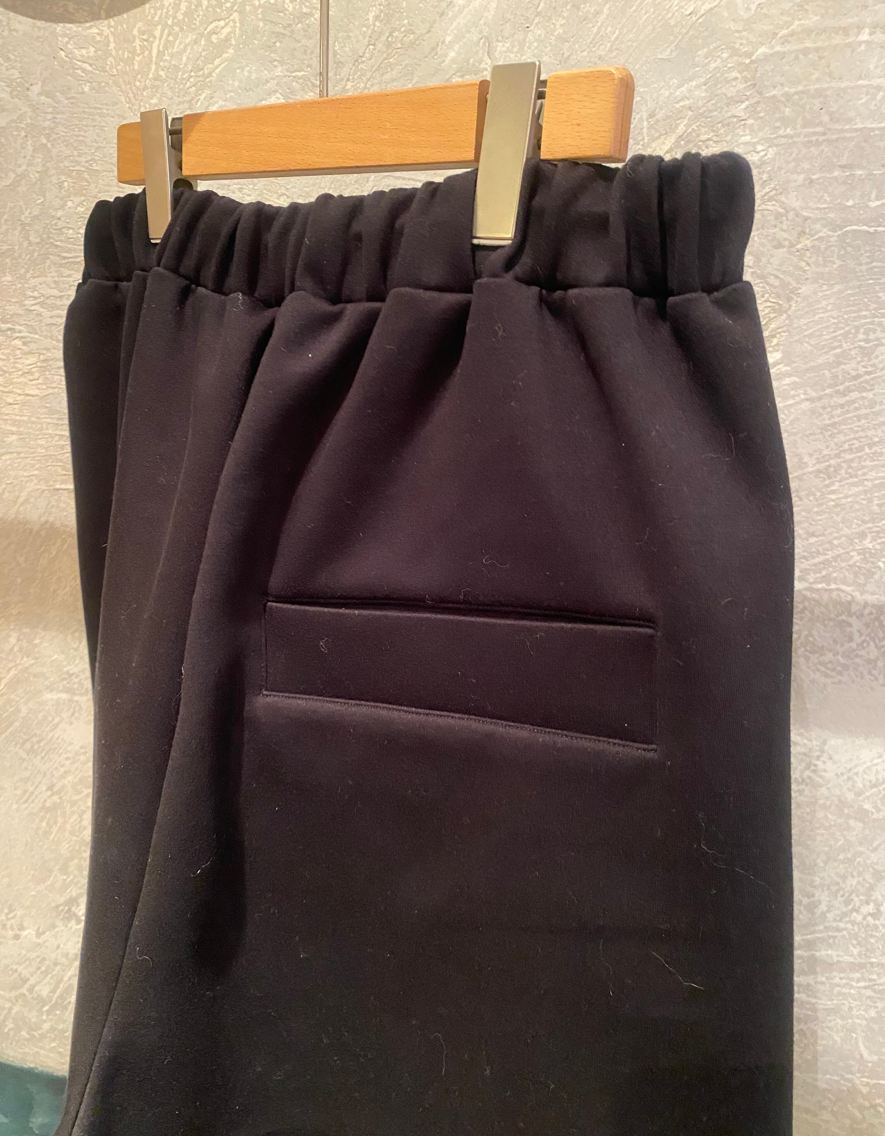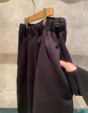 コットン混の肌触りの良いダンボールニット素材ですが、膨らみ感とハリ感があり立体的なシルエット何特徴的なパンツになります。