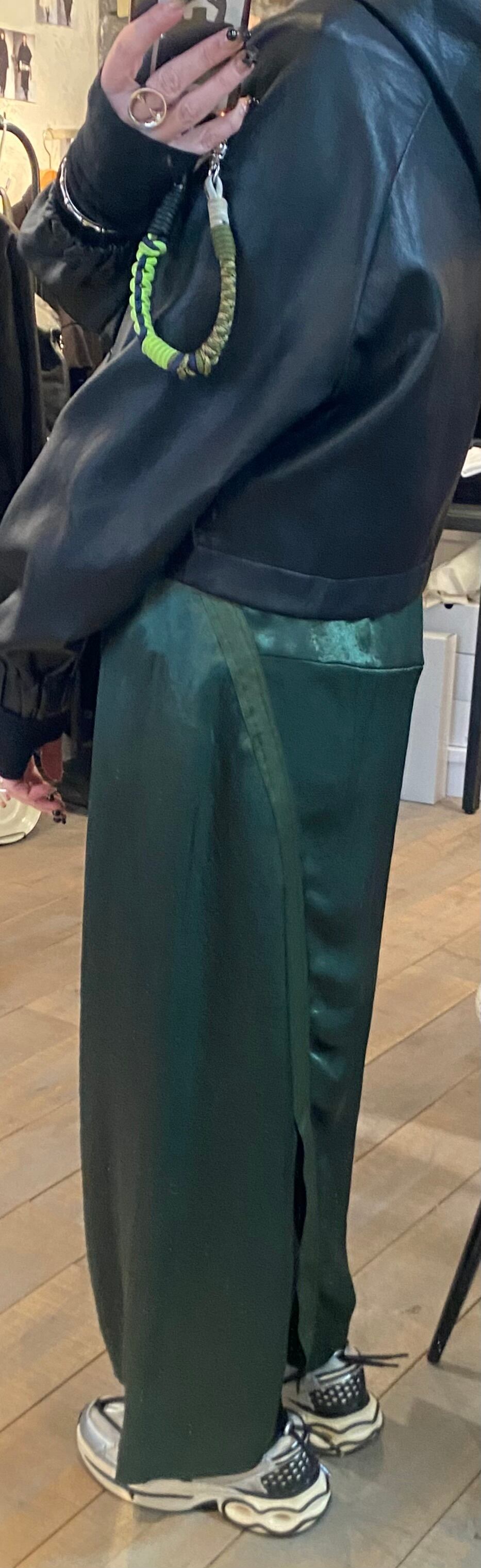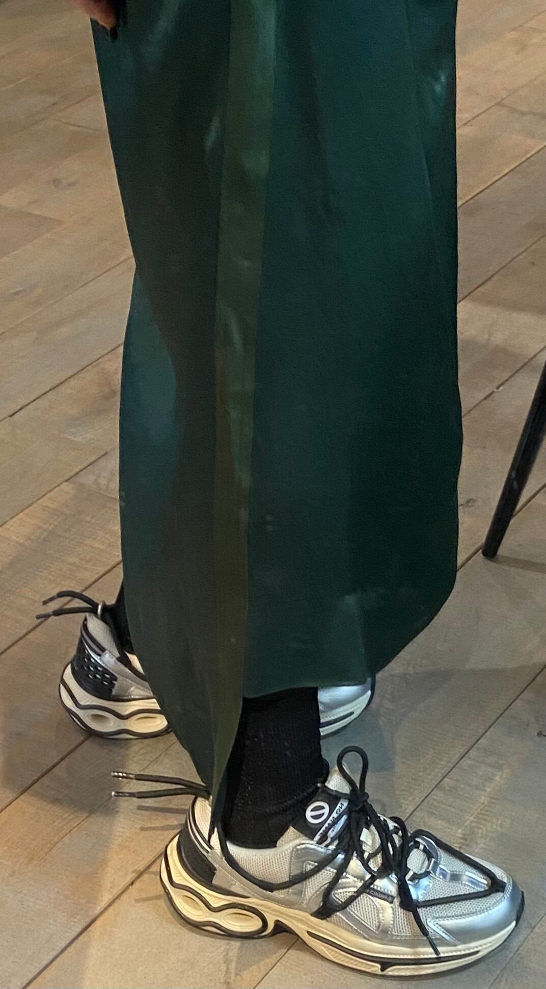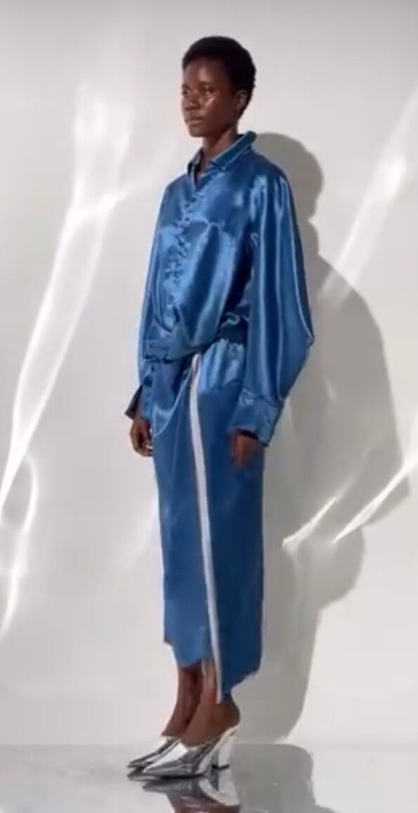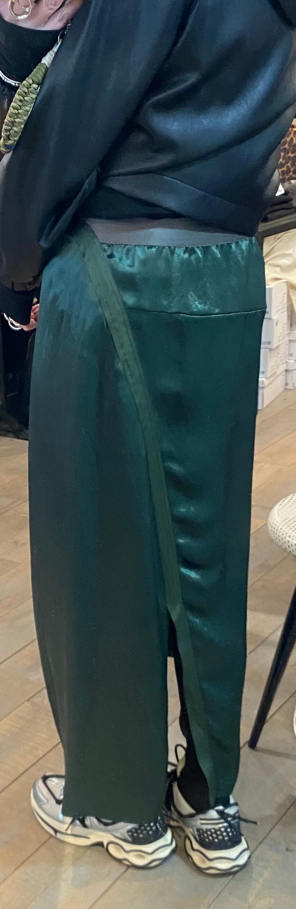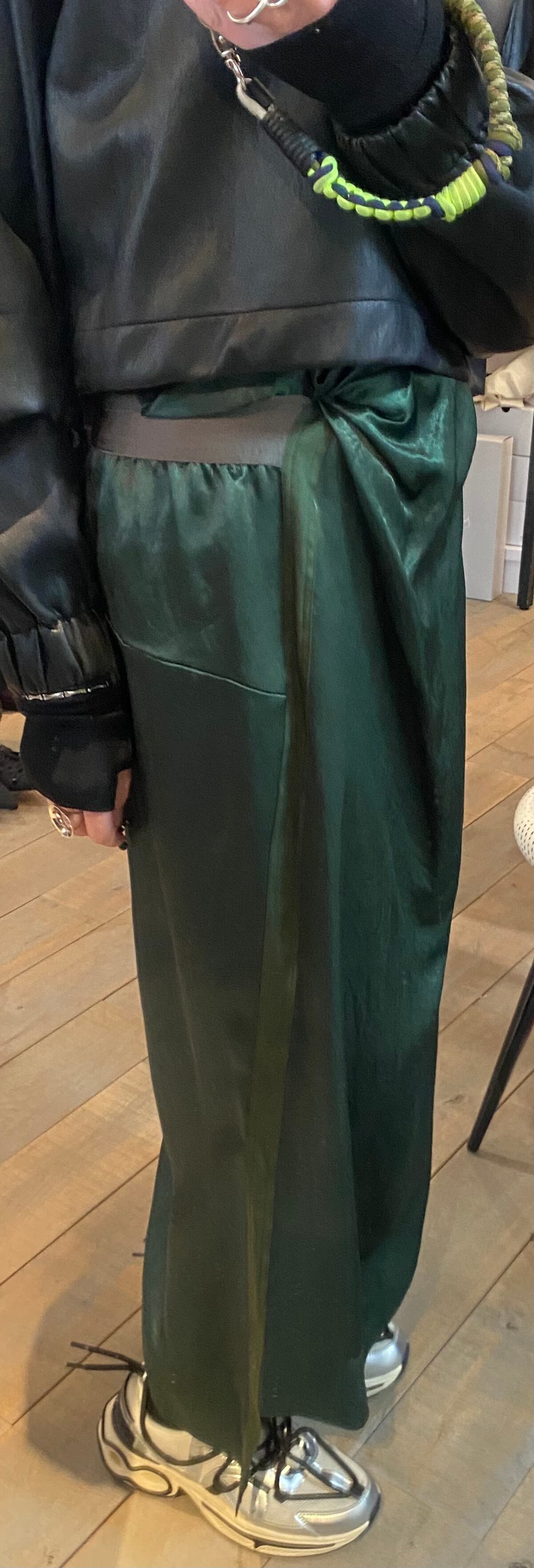 ドレープとカッティングが特徴のエレガントなスカート。ゴムベルトを取り入れる事でフィット感を高めつつも快適な着心地を実現。アシンメトリーなデザインが動きの中で美しいラインを描き、洗練された印象を与えます。