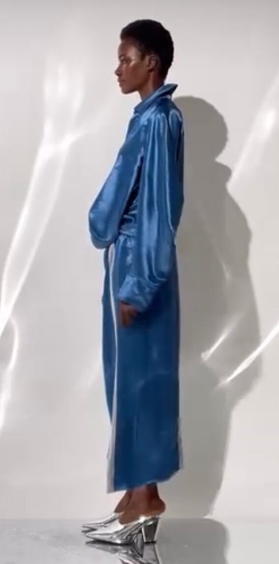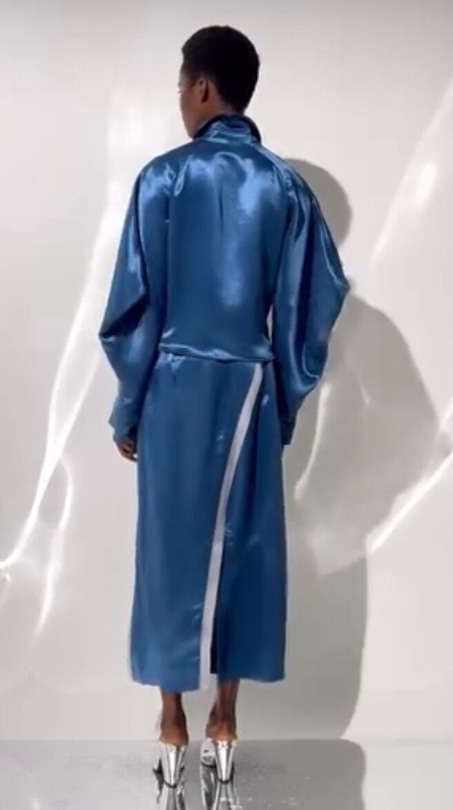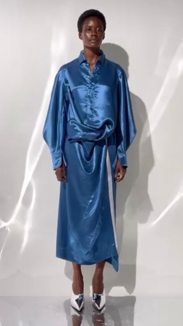 Naiaアセテートを使用したツイル素材。ブライト糸とセミダル糸を交織することで、ツイル組織の凹凸を際立たせ、光の反射による奥行き感を生み出しています。アセテート特有の上品な艶と美しいドレープ性に加え、特殊加工を施す事で膨らみのある柔らかなタッチを実現。エレガントさと快適な着心地を兼ね備えた、高級感あふれるファブリックです。