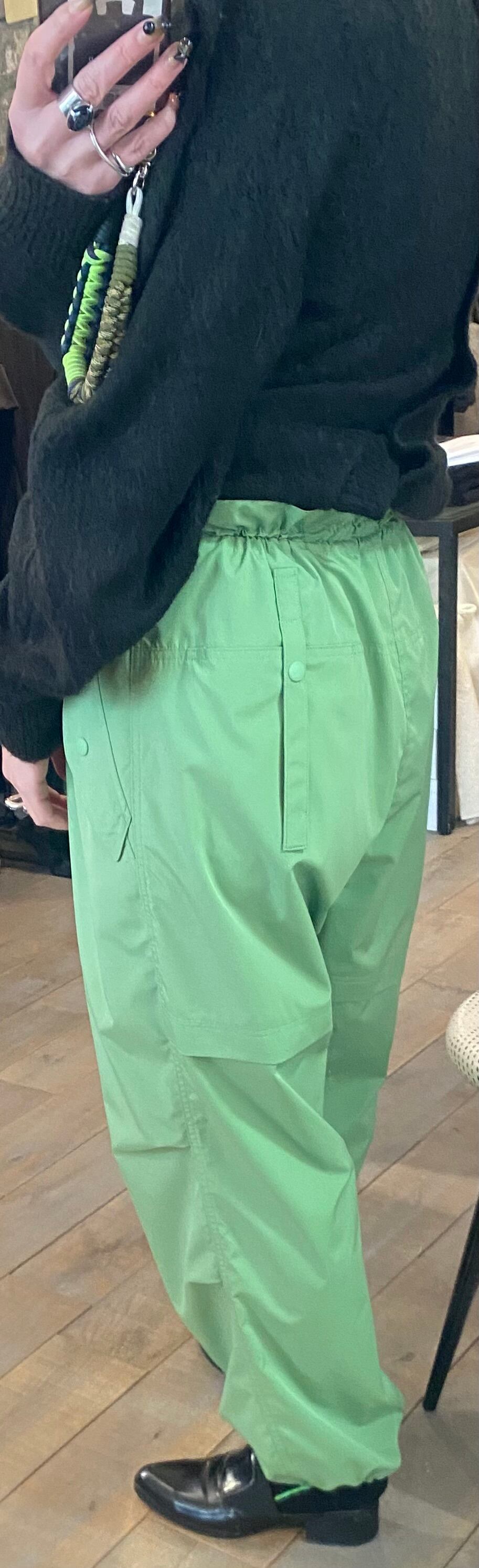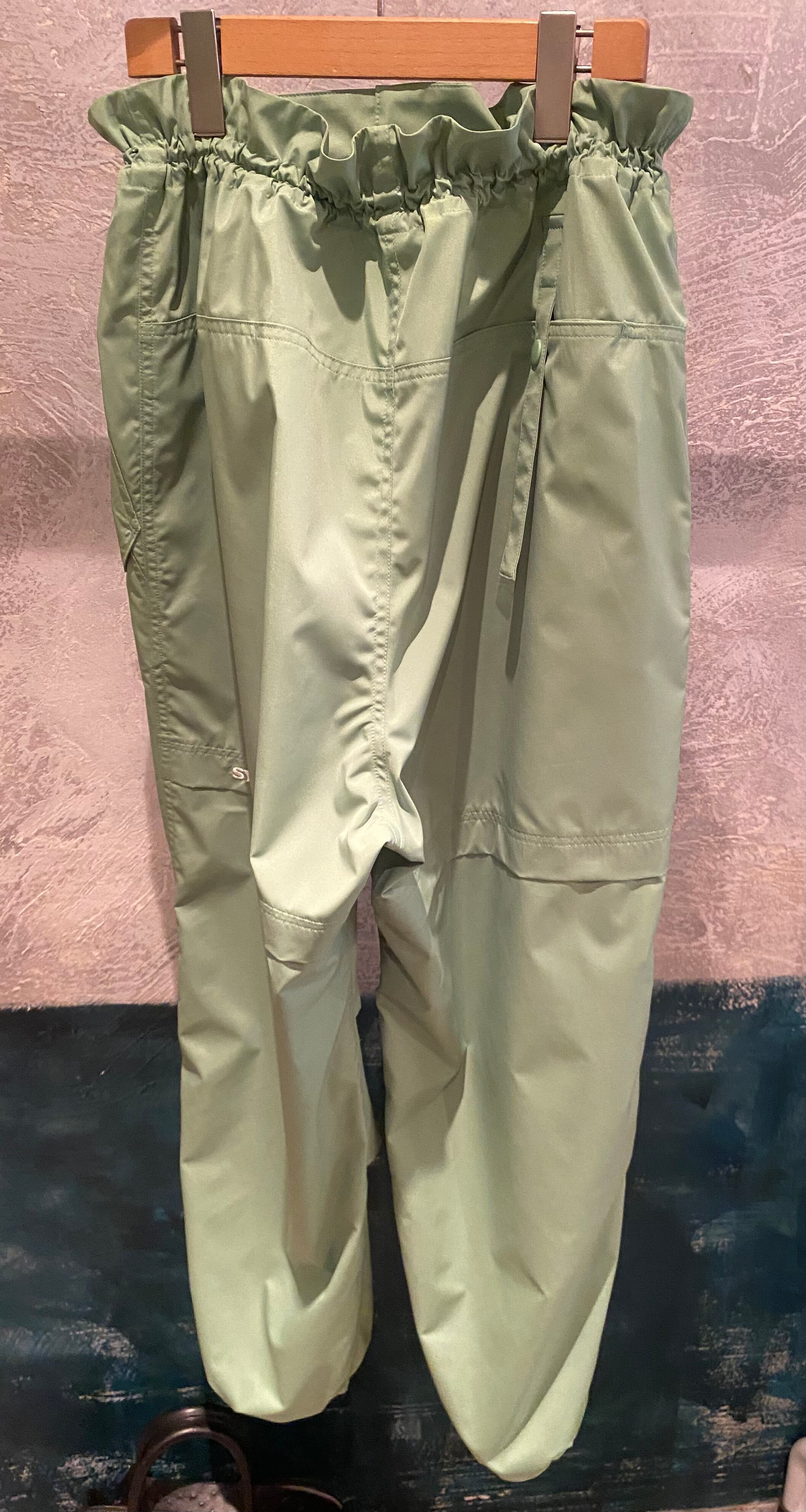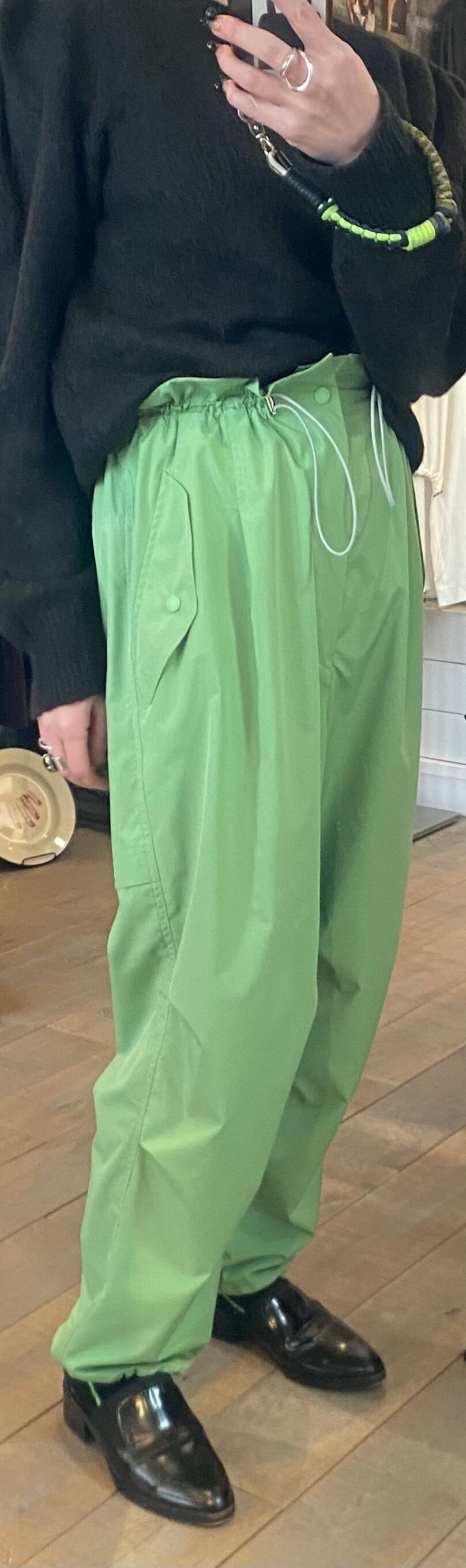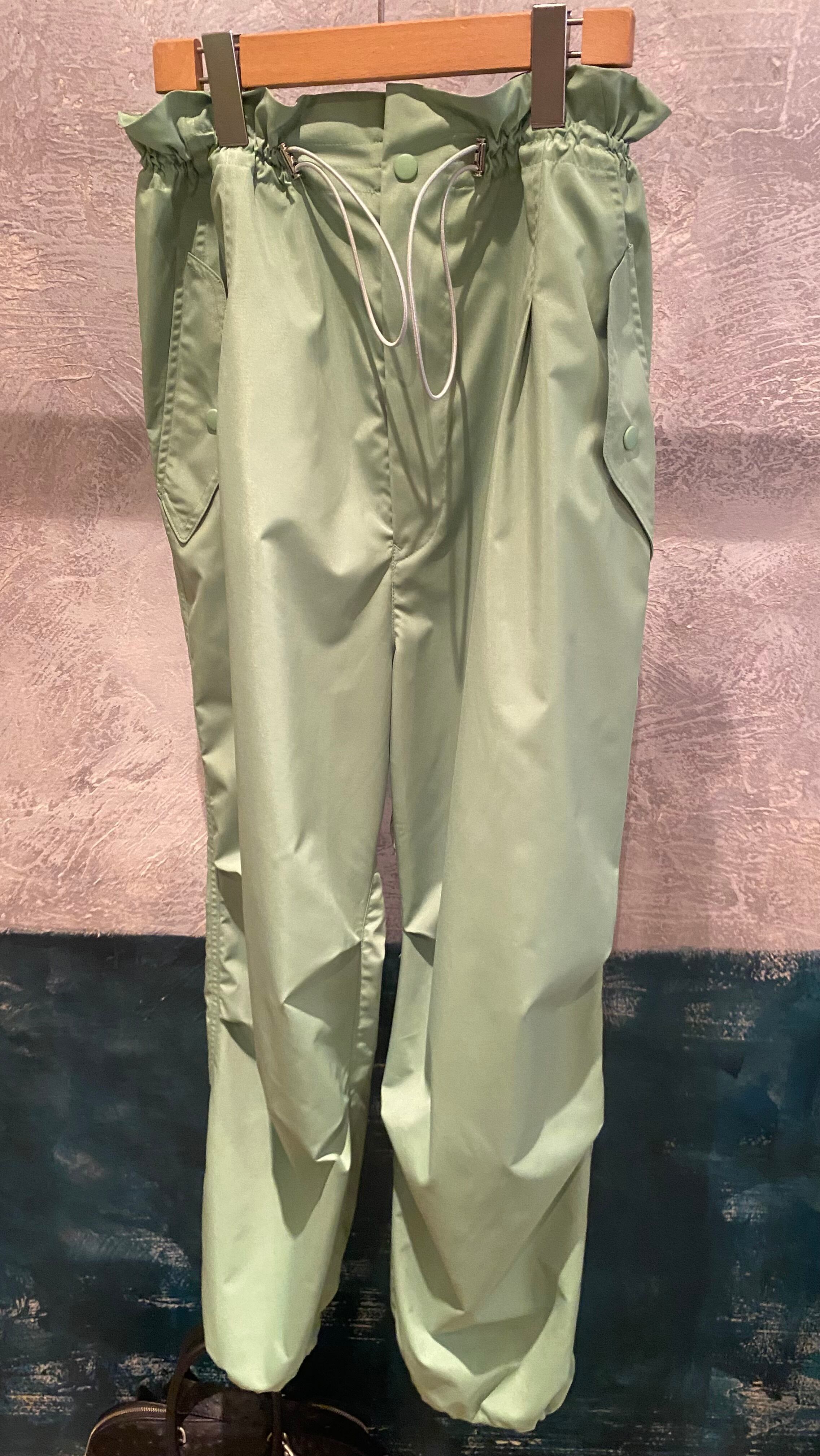 高密度で上品な表情の75デニールストレッチタフタに、吸汗速乾に優れたCOOLMAX®️を使用した、機能性カーゴパンツ。キメ細やかでハリのある素材感ながらも、肌あたりはソフトで快適、撥水性も備えています。フラップ付きのポケットが程よくワークなアクセントを加えつつ、ウエストと裾にはドローコードを配し、シルエットやフィット感を自在に調節できます。
