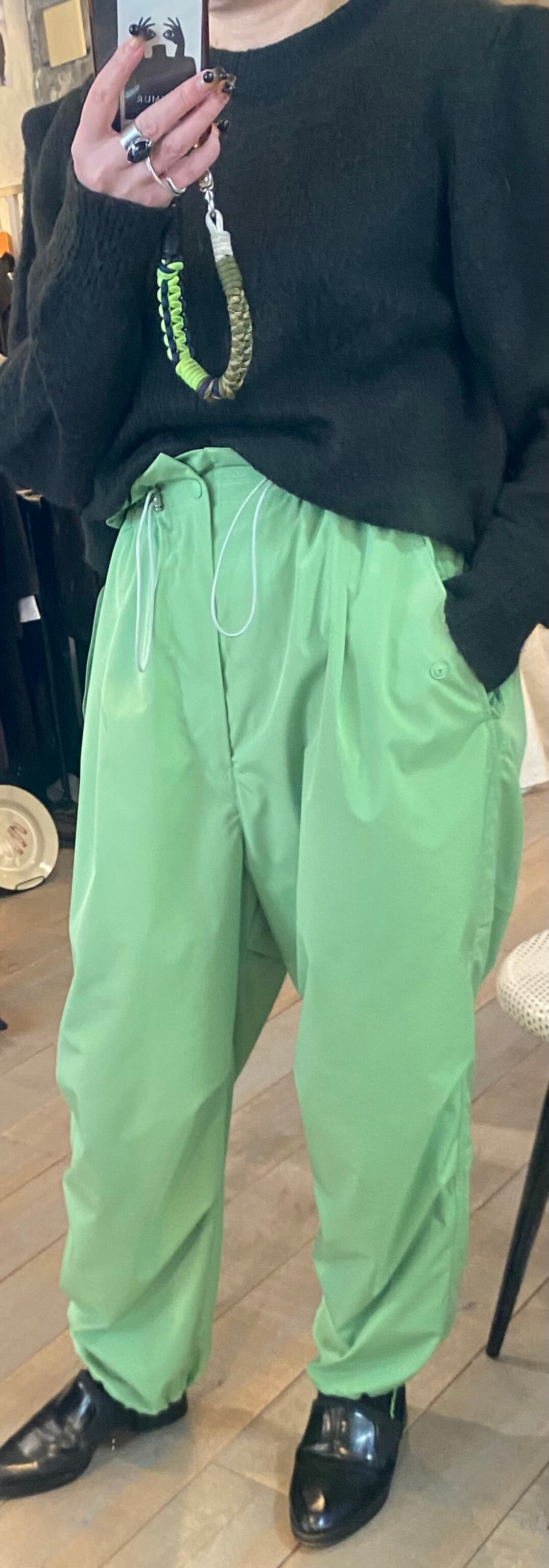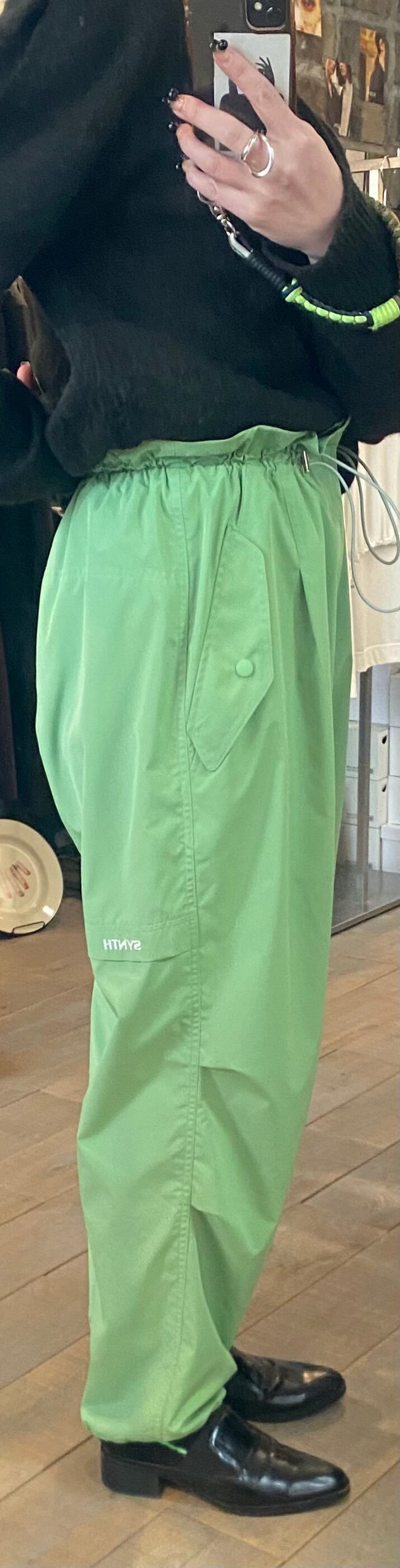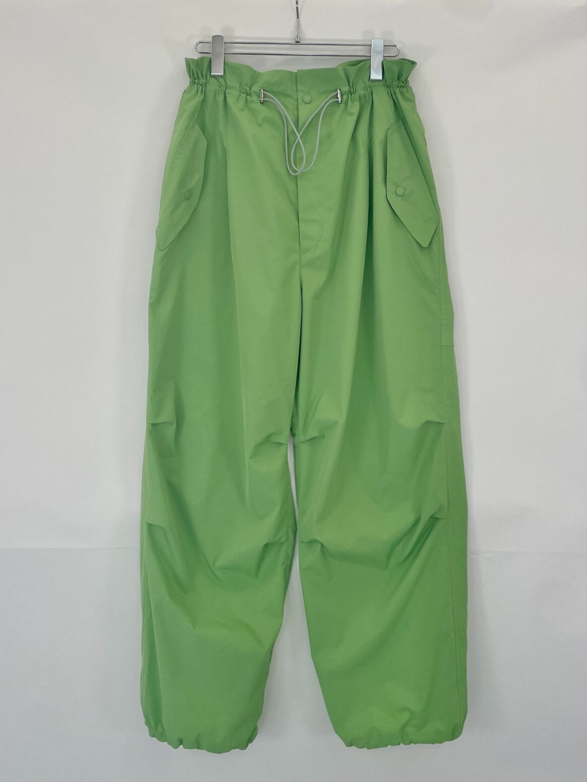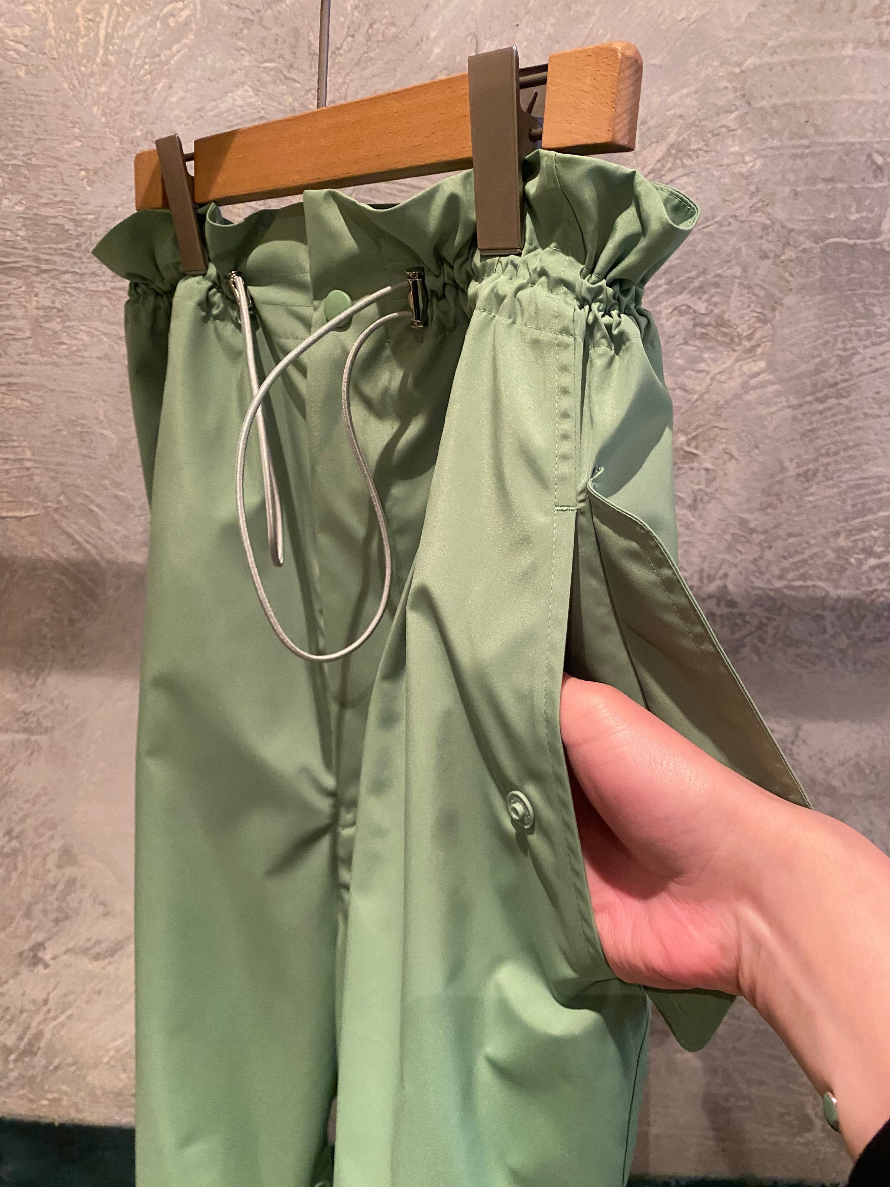 高密度で上品な表情の75デニールストレッチタフタに、吸汗速乾に優れたCOOLMAX®️を使用した、機能性カーゴパンツ。キメ細やかでハリのある素材感ながらも、肌あたりはソフトで快適、撥水性も備えています。フラップ付きのポケットが程よくワークなアクセントを加えつつ、ウエストと裾にはドローコードを配し、シルエットやフィット感を自在に調節できます。