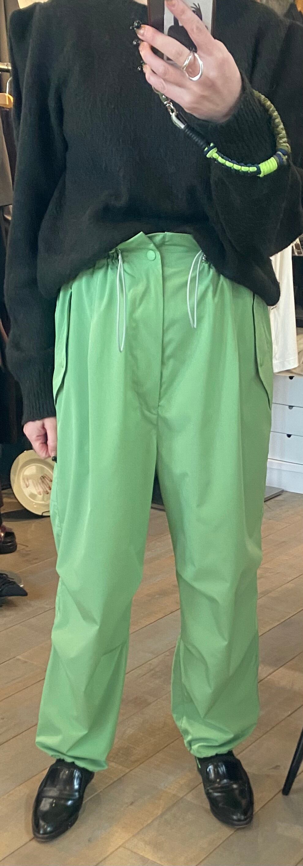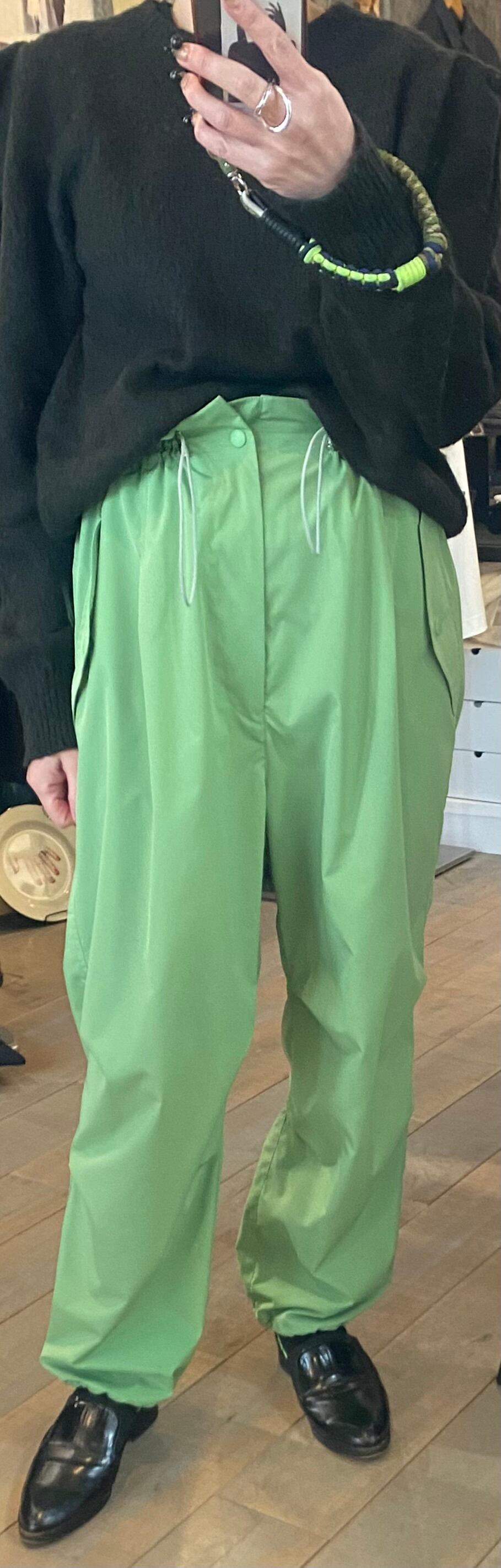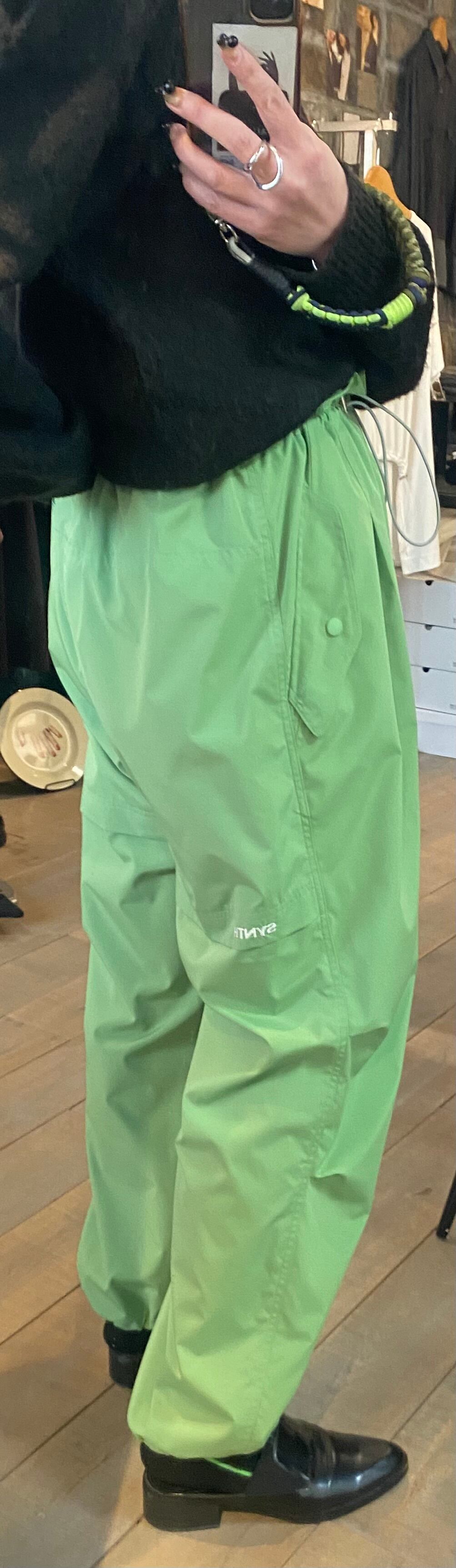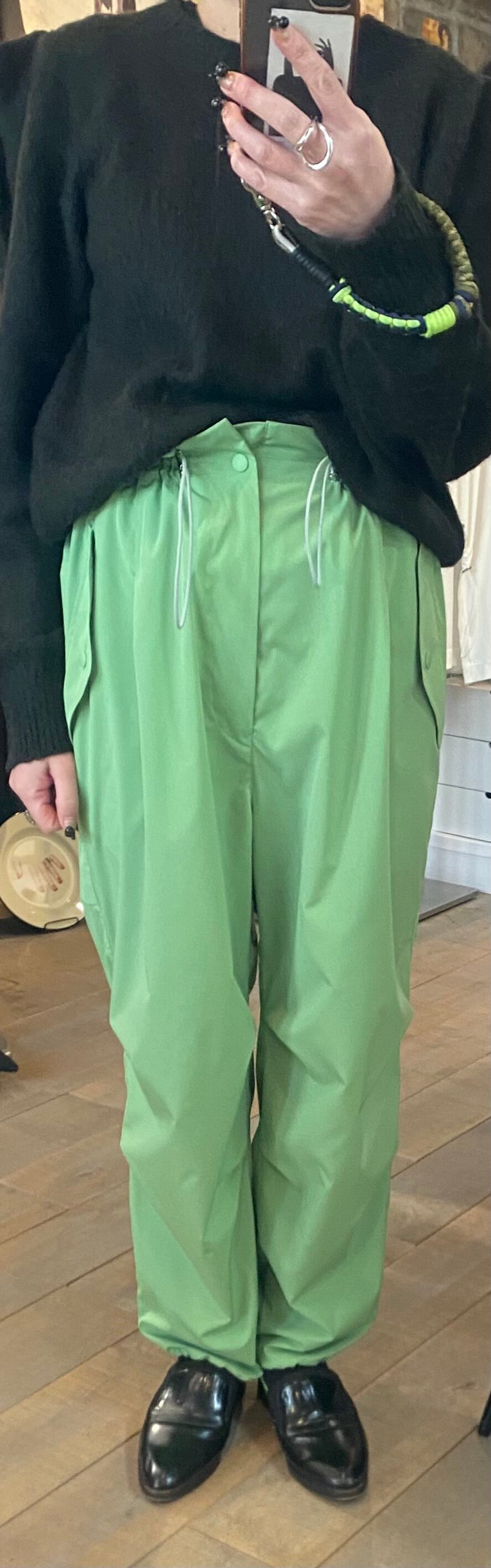 高密度で上品な表情の75デニールストレッチタフタに、吸汗速乾に優れたCOOLMAX®️を使用した、機能性カーゴパンツ。キメ細やかでハリのある素材感ながらも、肌あたりはソフトで快適、撥水性も備えています。フラップ付きのポケットが程よくワークなアクセントを加えつつ、ウエストと裾にはドローコードを配し、シルエットやフィット感を自在に調節できます。