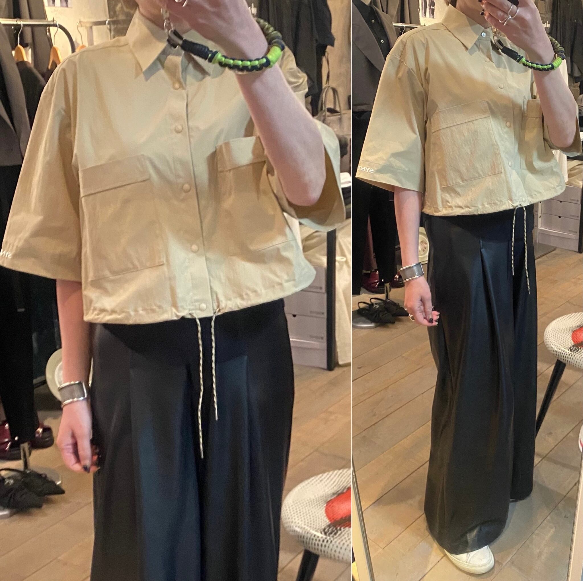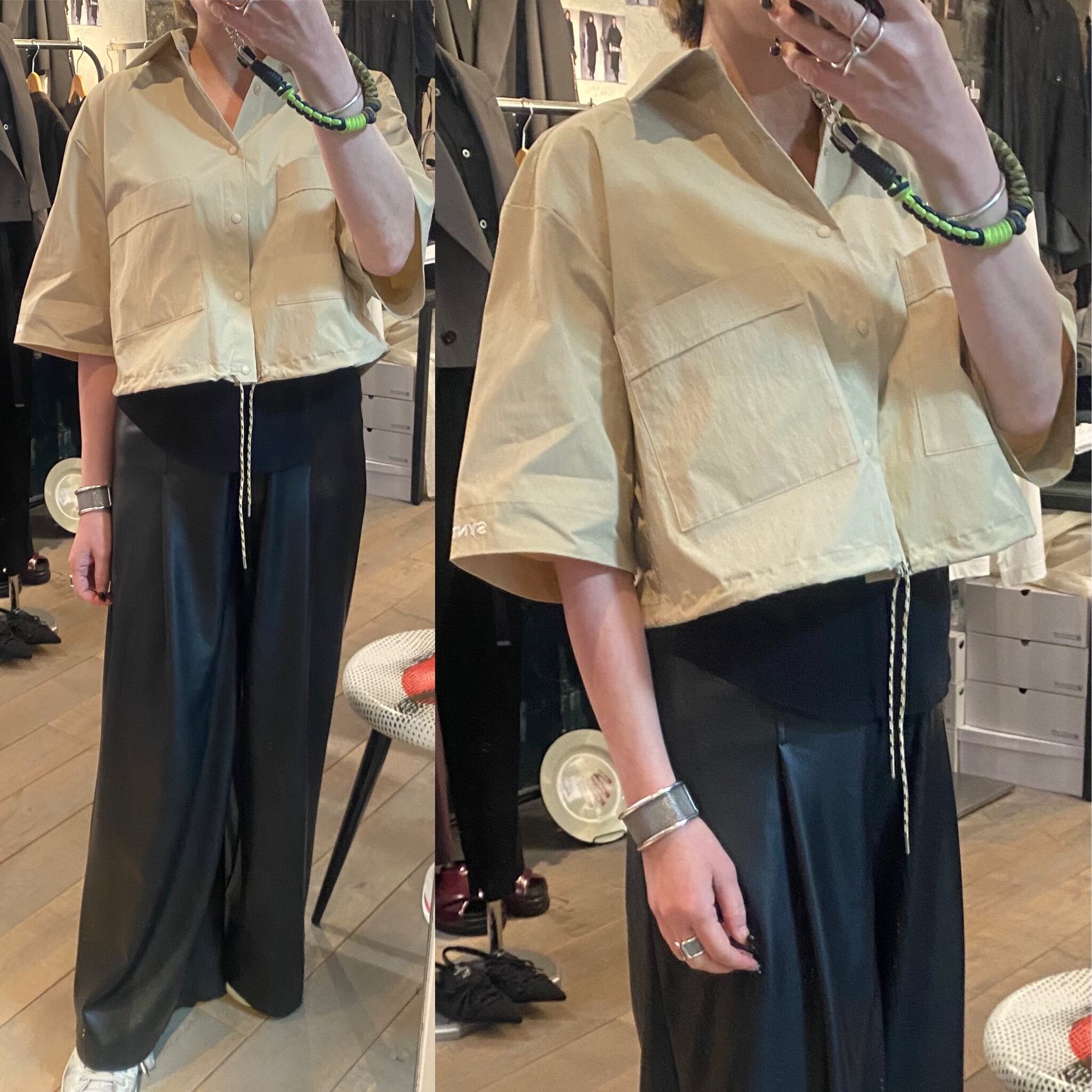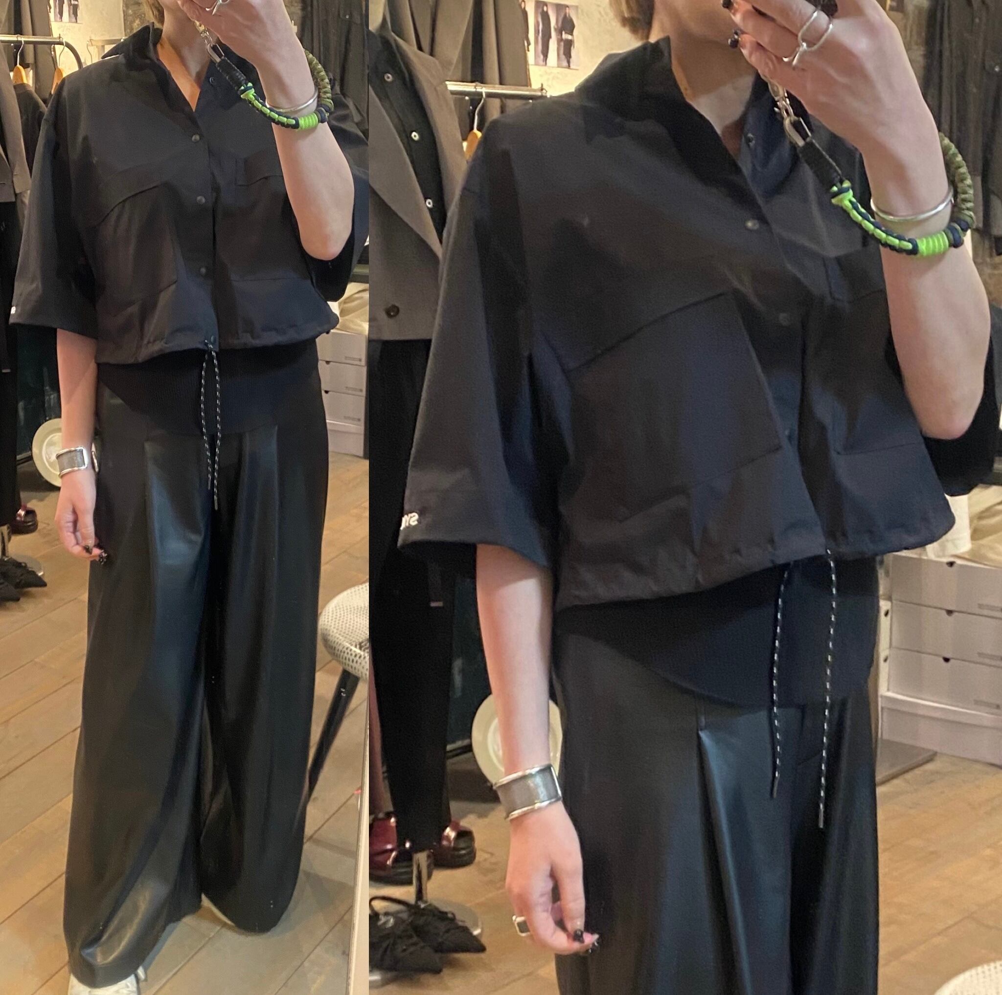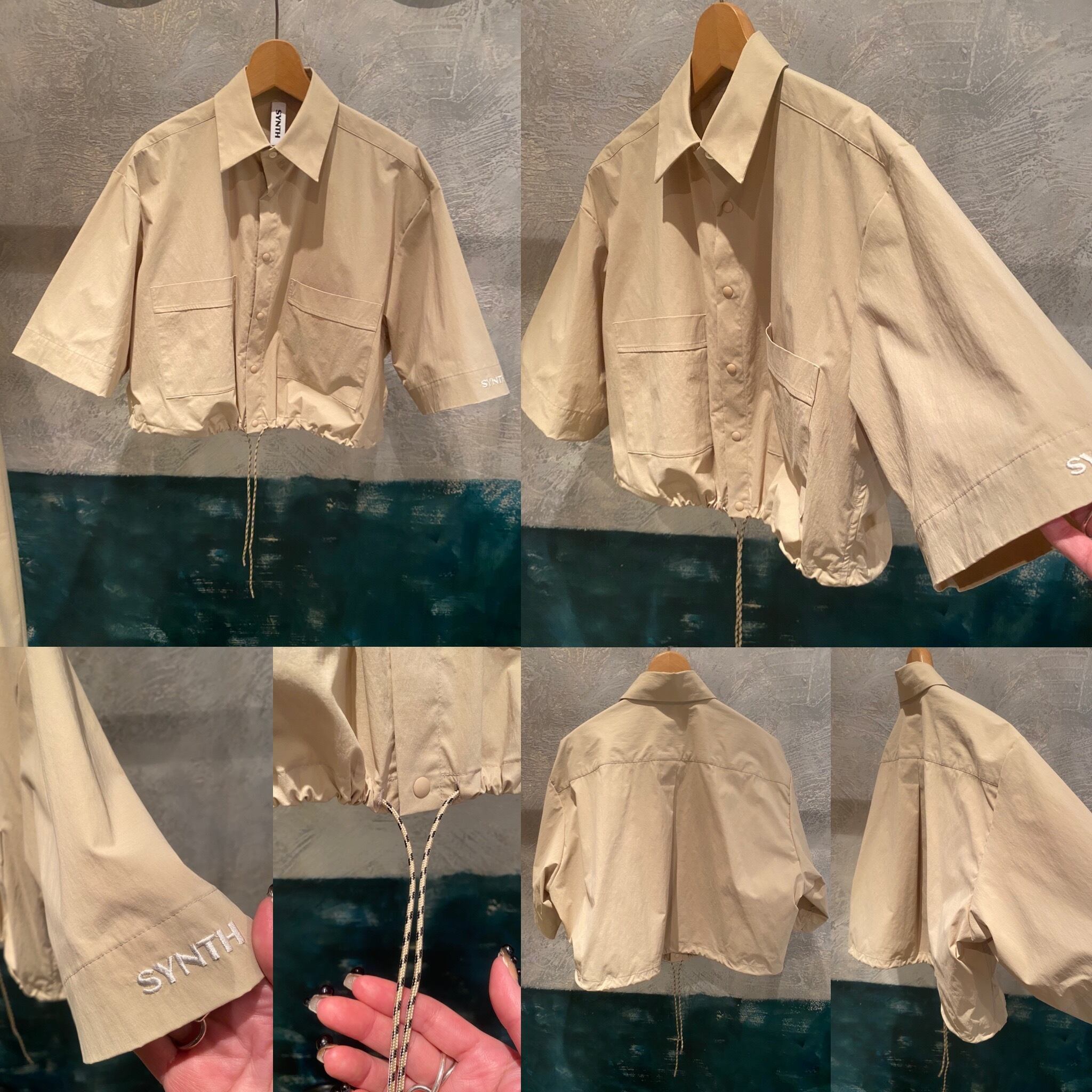 軽やかでしなやかなナチュラルタッチナイロンを使用したクロップドシャツ。ゆとりのあるボクシーなシルエットに、裾にはミックスカラーのドローコードをあしらい、スタイリングに遊び心とアクセントをプラスしています。マットな表示とコットンタッチのドライな風合いが、アクティブな日常に自然と馴染む1枚です。ヨコ方向に伸びる快適なストレッチ性により動きやすく、撥水性やシワになりにくい特性もあり、オン/オフ問わず活躍するアイテムです♪