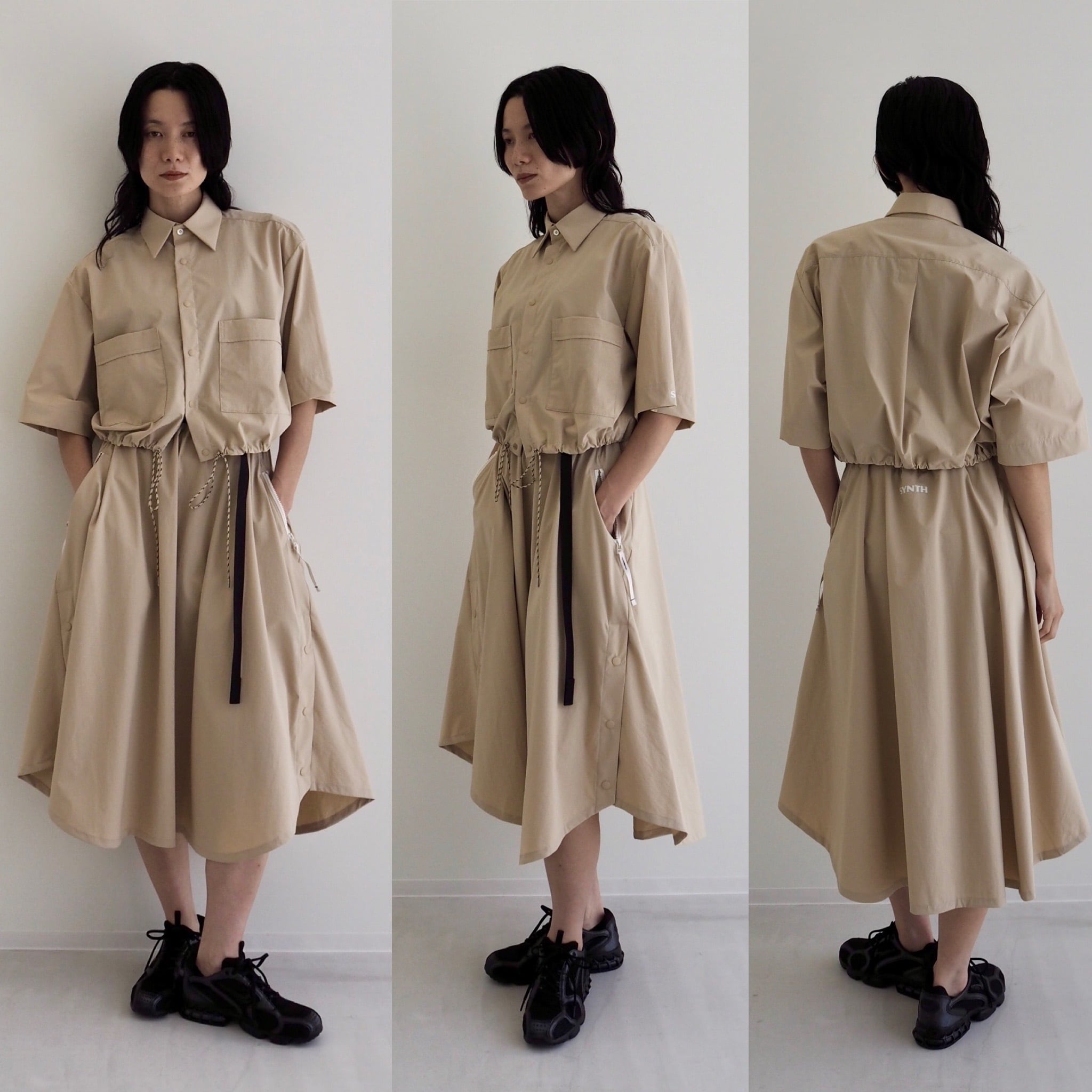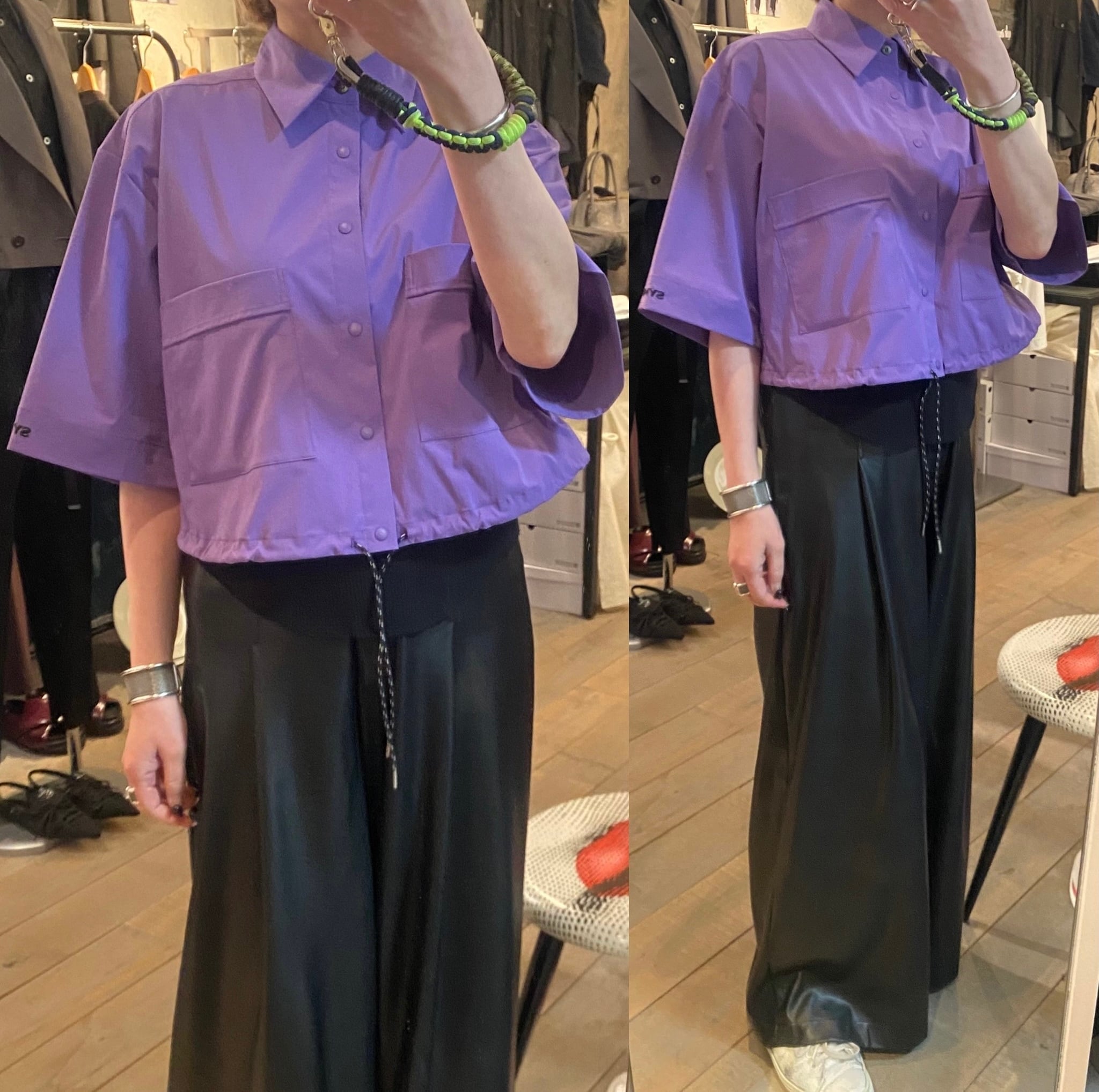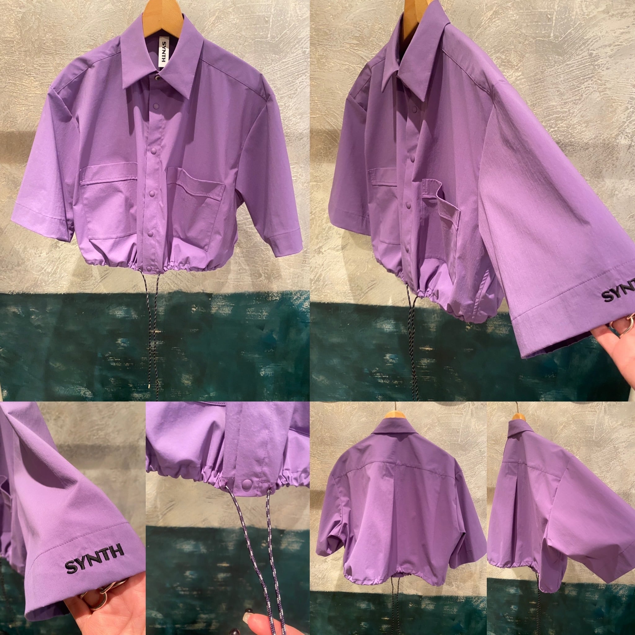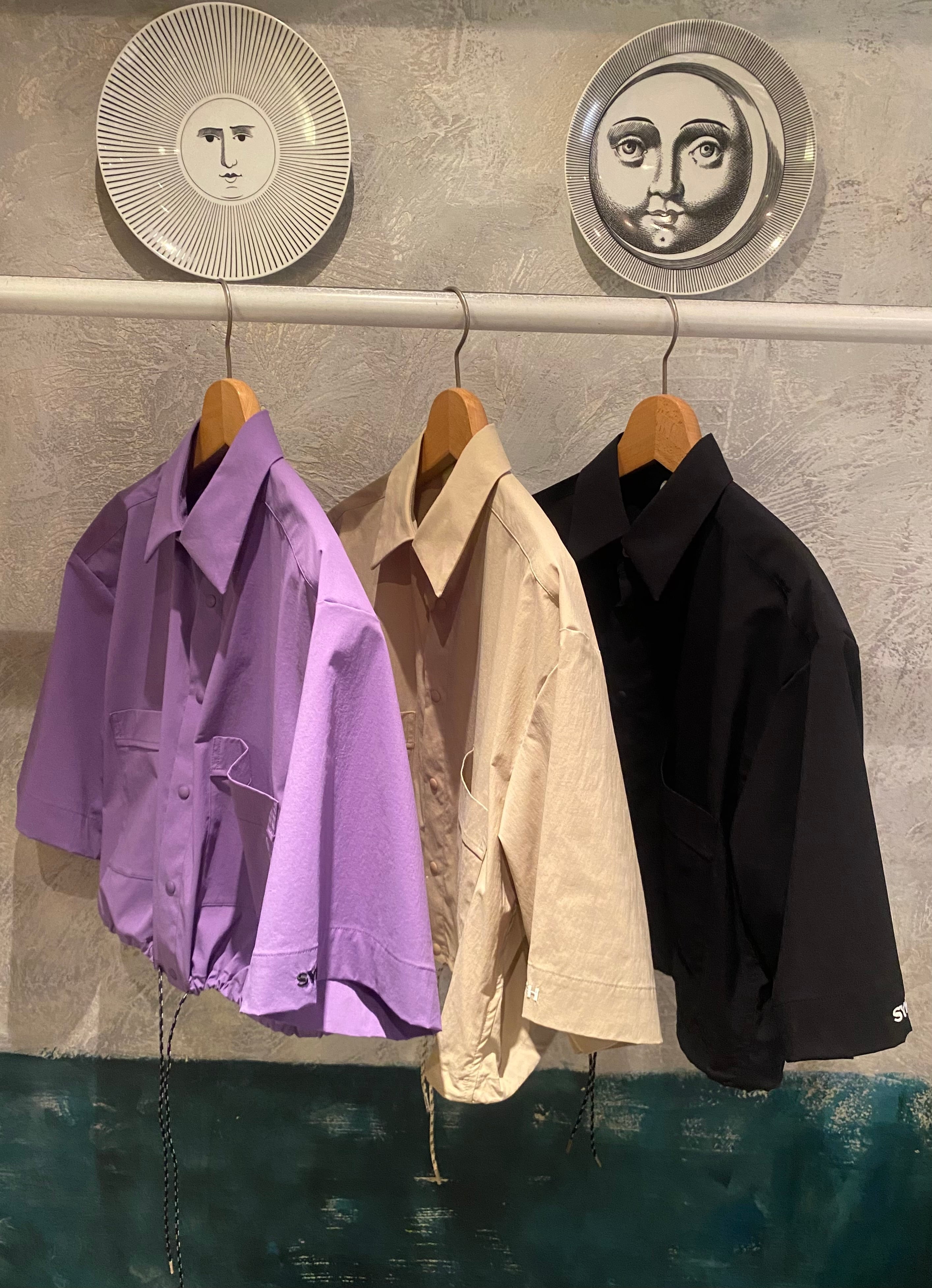 軽やかでしなやかなナチュラルタッチナイロンを使用したクロップドシャツ。ゆとりのあるボクシーなシルエットに、裾にはミックスカラーのドローコードをあしらい、スタイリングに遊び心とアクセントをプラスしています。マットな表示とコットンタッチのドライな風合いが、アクティブな日常に自然と馴染む1枚です。ヨコ方向に伸びる快適なストレッチ性により動きやすく、撥水性やシワになりにくい特性もあり、オン/オフ問わず活躍するアイテムです♪