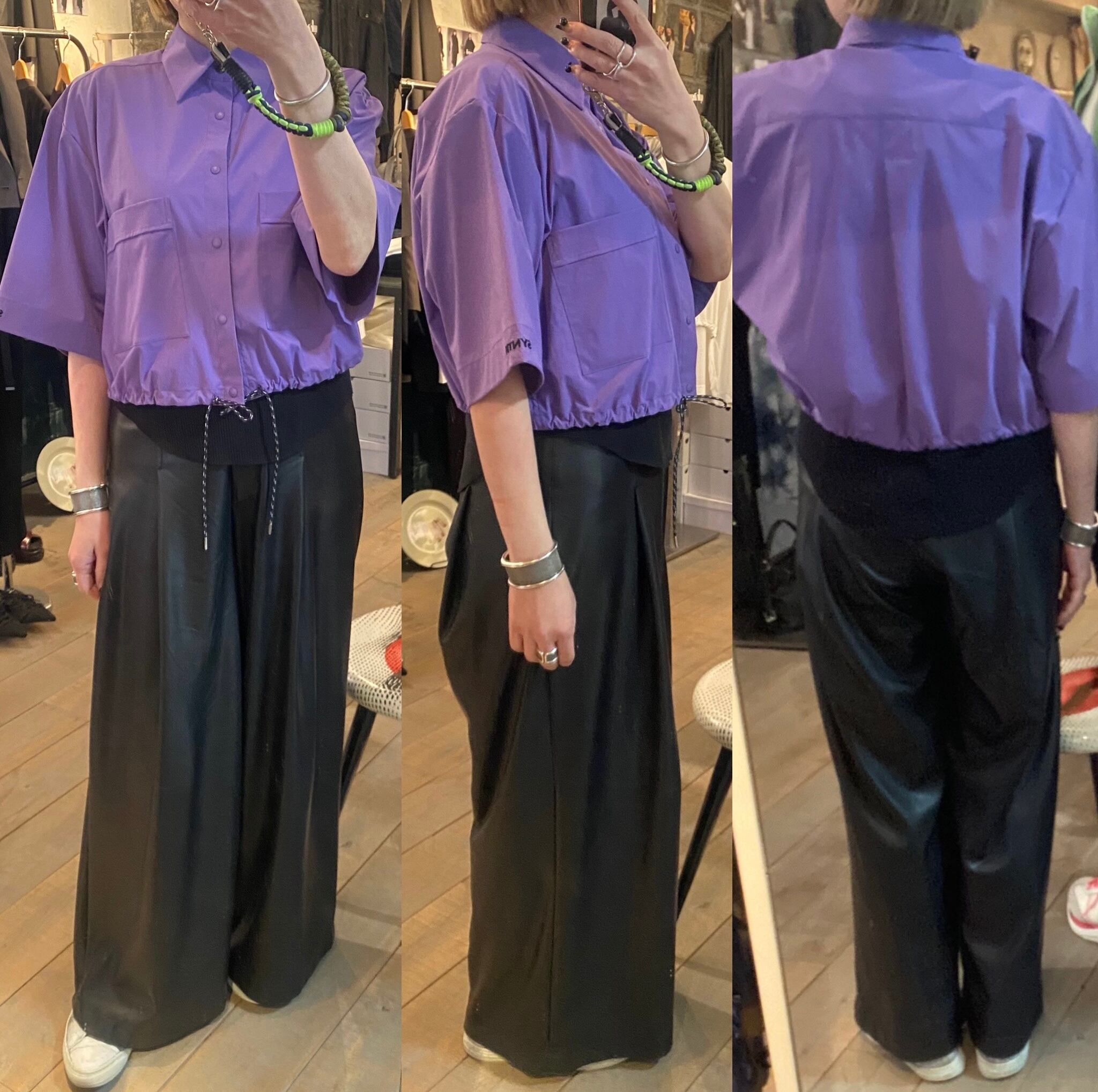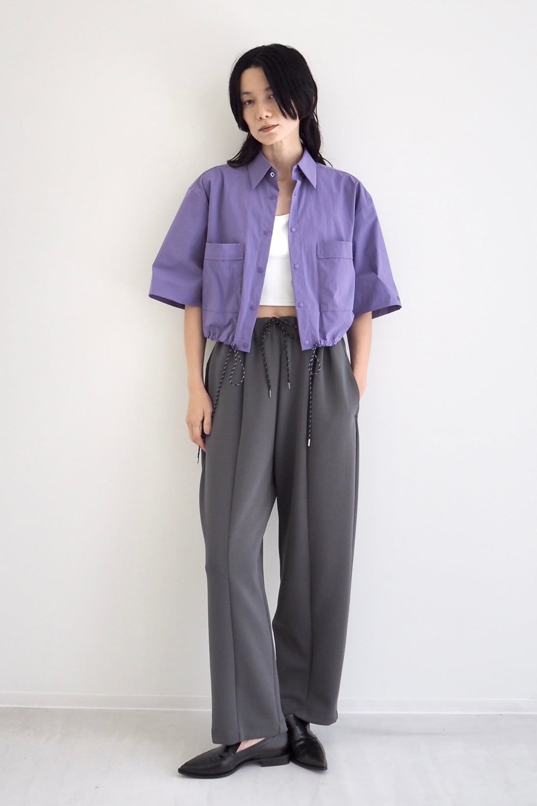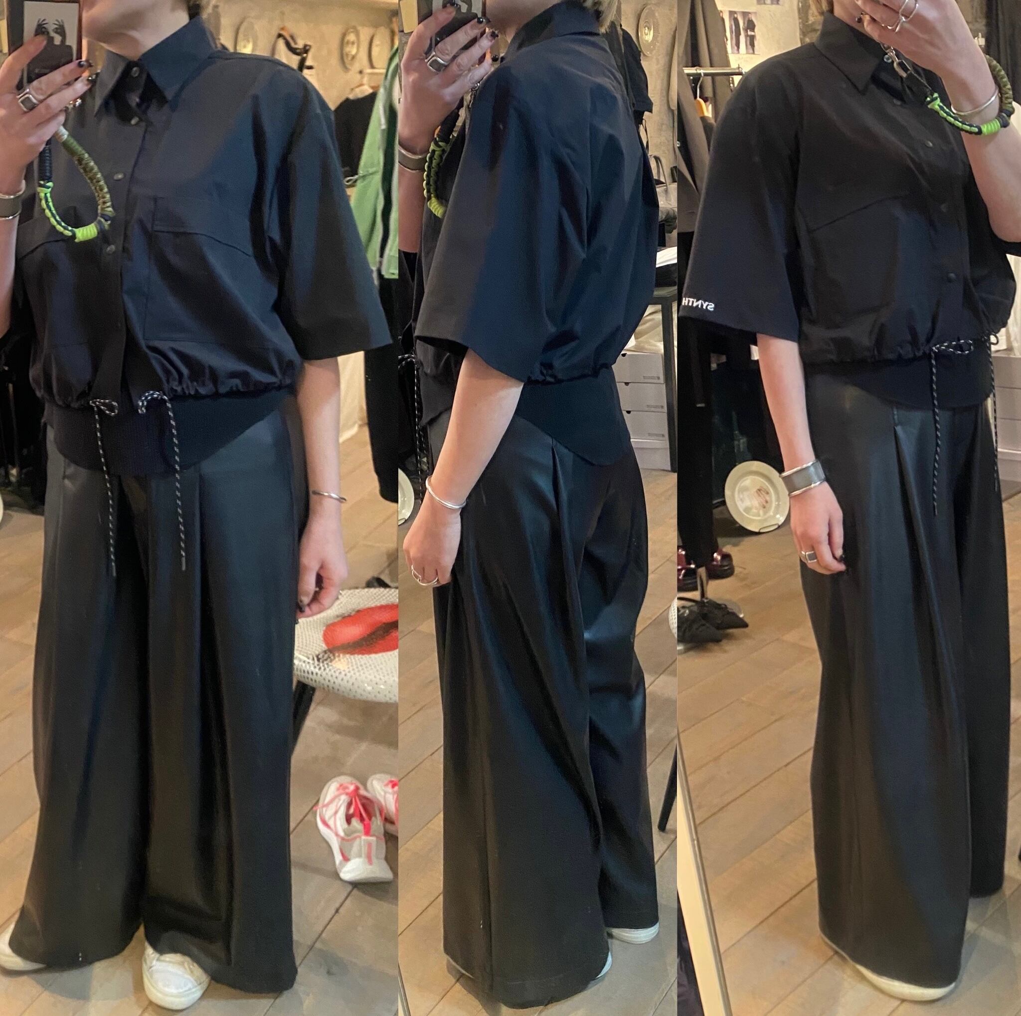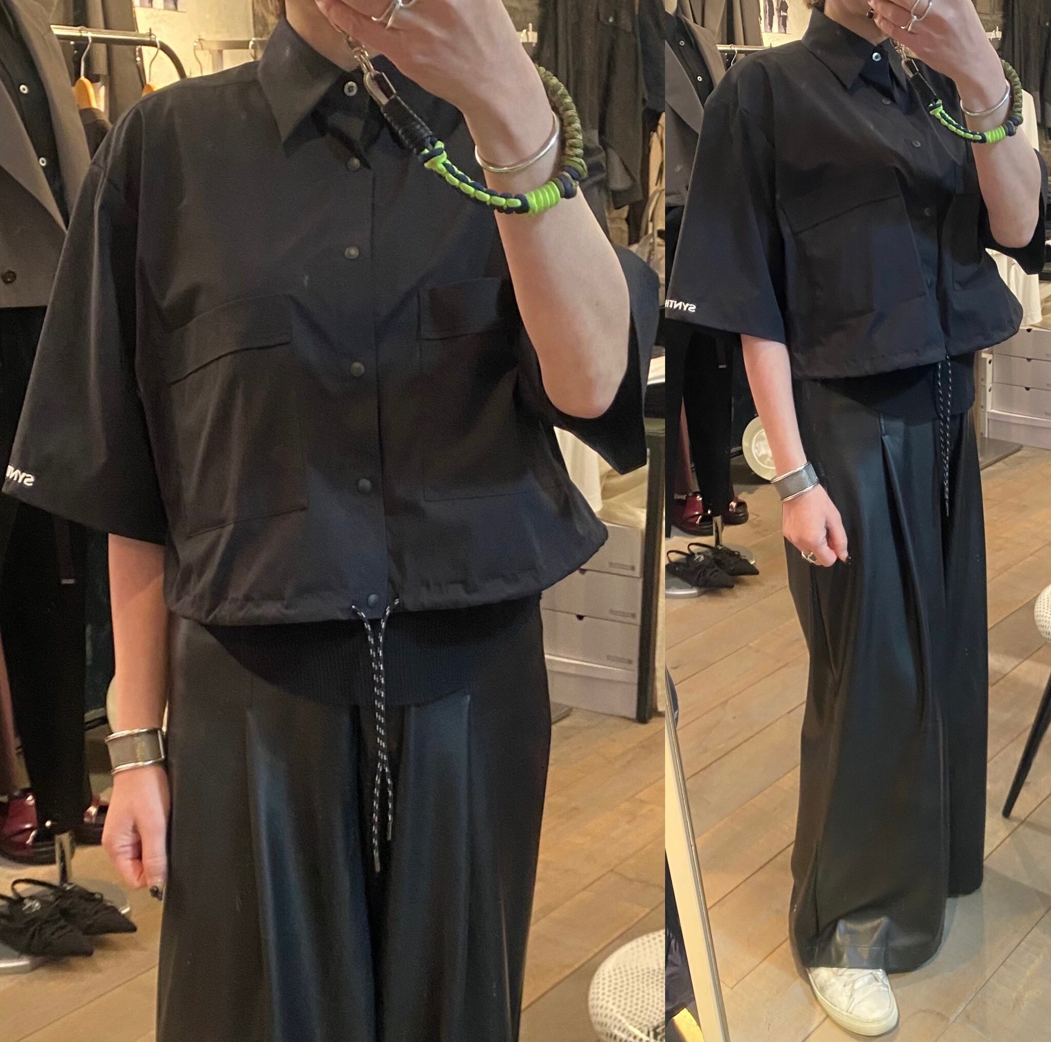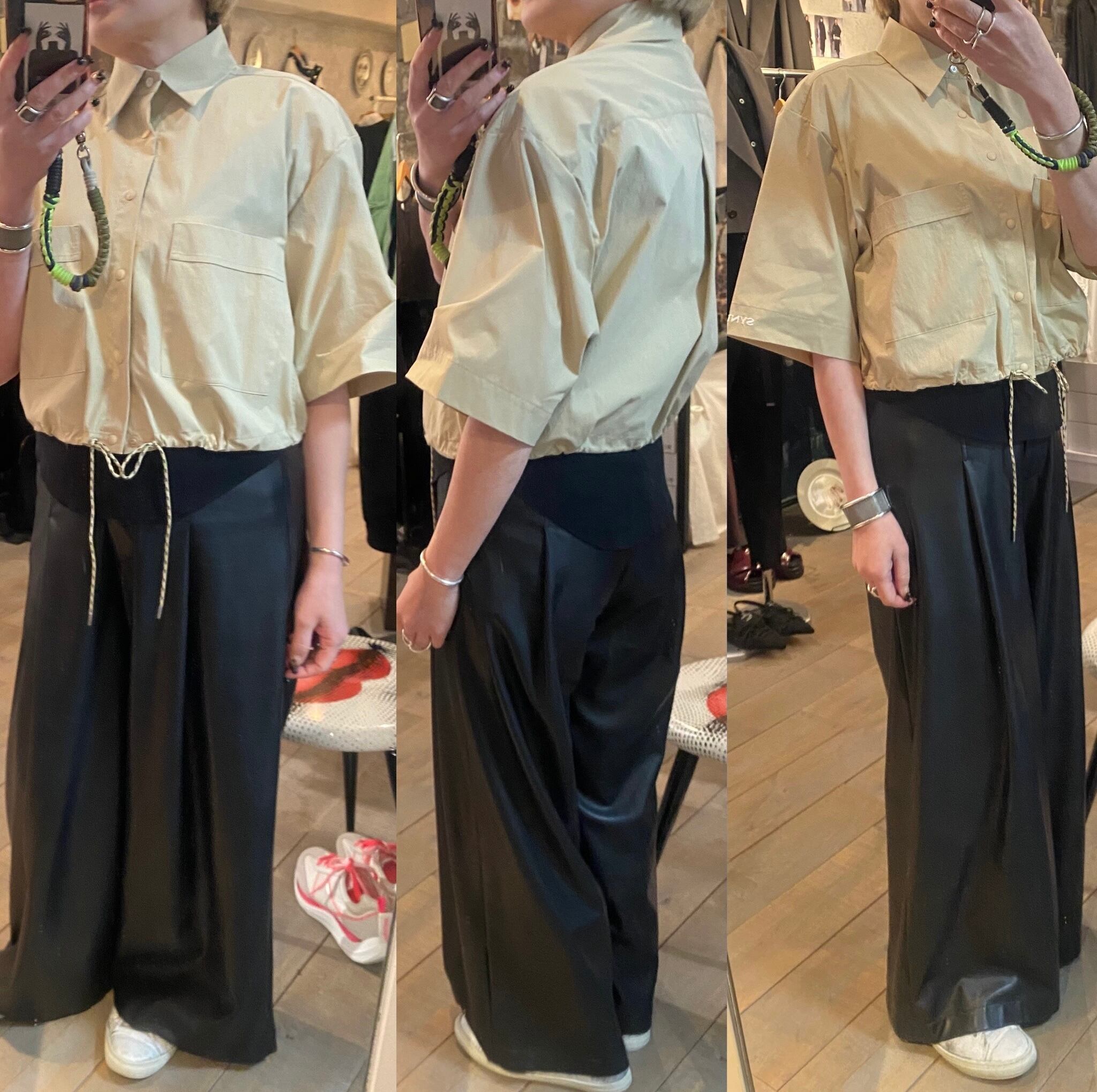 軽やかでしなやかなナチュラルタッチナイロンを使用したクロップドシャツ。ゆとりのあるボクシーなシルエットに、裾にはミックスカラーのドローコードをあしらい、スタイリングに遊び心とアクセントをプラスしています。マットな表示とコットンタッチのドライな風合いが、アクティブな日常に自然と馴染む1枚です。ヨコ方向に伸びる快適なストレッチ性により動きやすく、撥水性やシワになりにくい特性もあり、オン/オフ問わず活躍するアイテムです♪