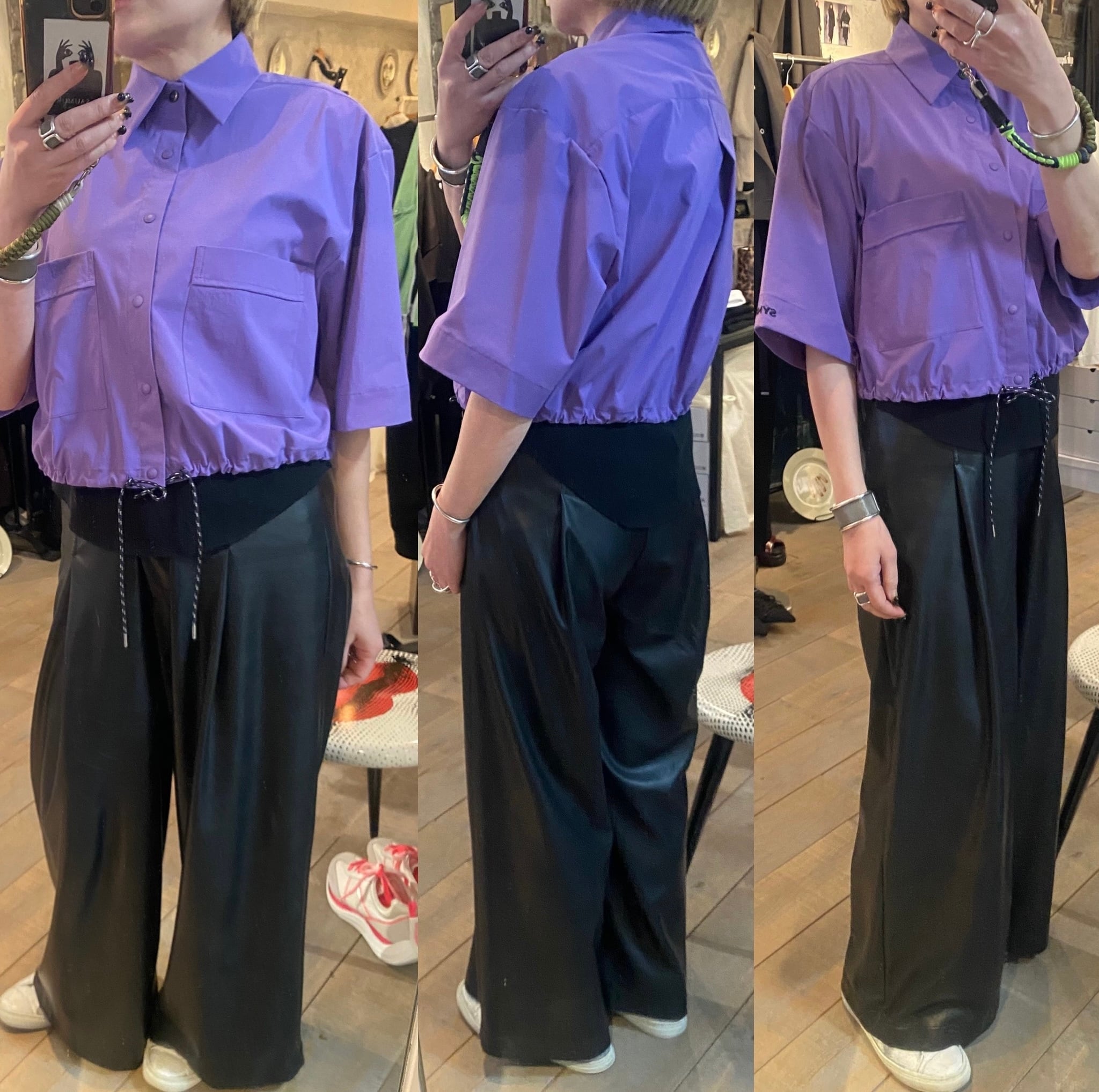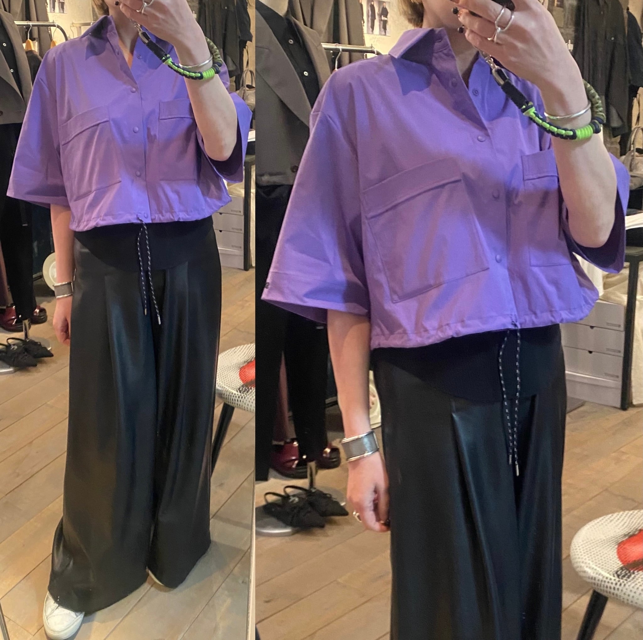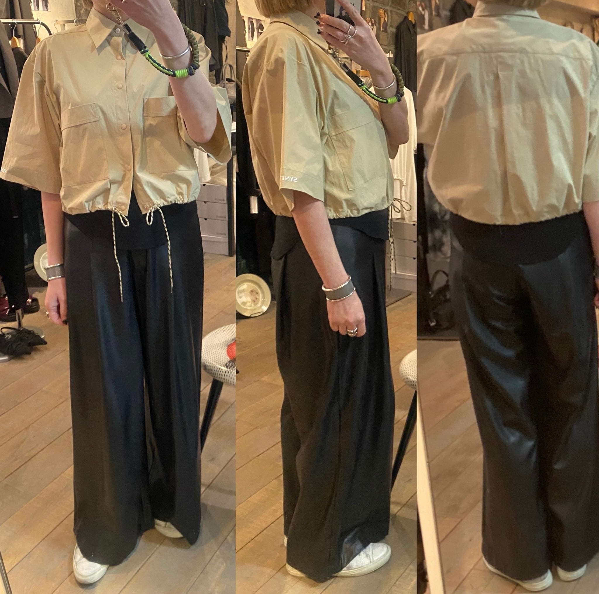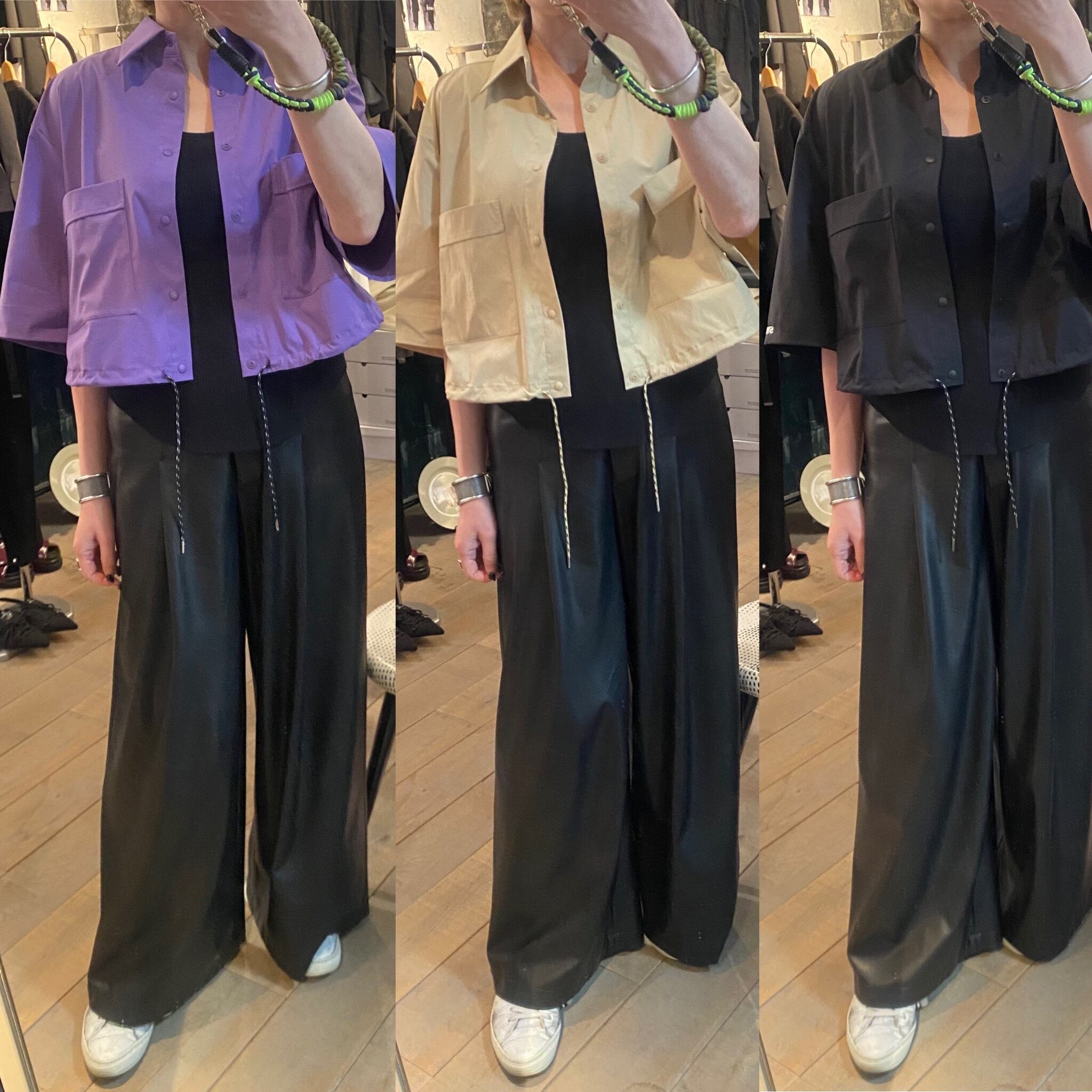 軽やかでしなやかなナチュラルタッチナイロンを使用したクロップドシャツ。ゆとりのあるボクシーなシルエットに、裾にはミックスカラーのドローコードをあしらい、スタイリングに遊び心とアクセントをプラスしています。マットな表示とコットンタッチのドライな風合いが、アクティブな日常に自然と馴染む1枚です。ヨコ方向に伸びる快適なストレッチ性により動きやすく、撥水性やシワになりにくい特性もあり、オン/オフ問わず活躍するアイテムです♪