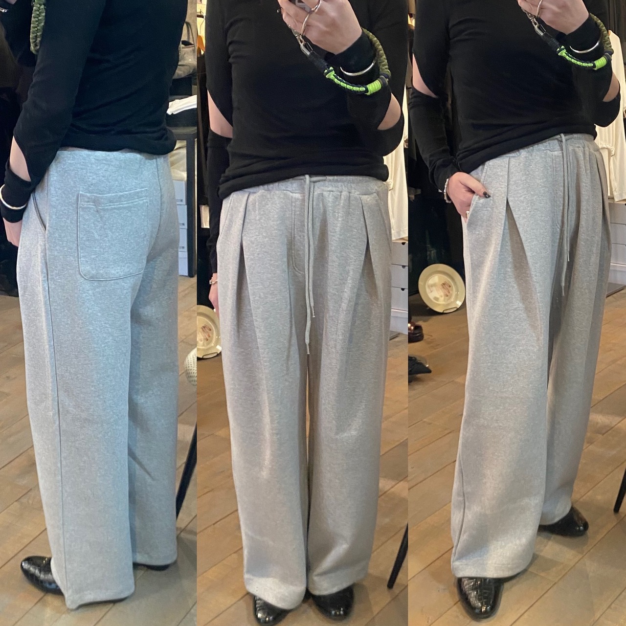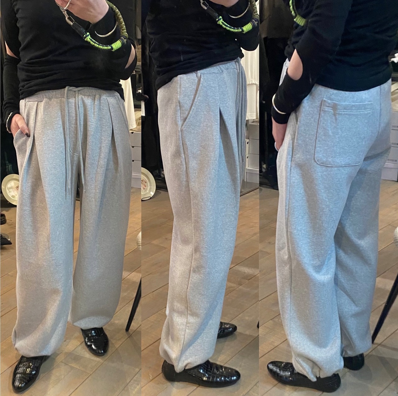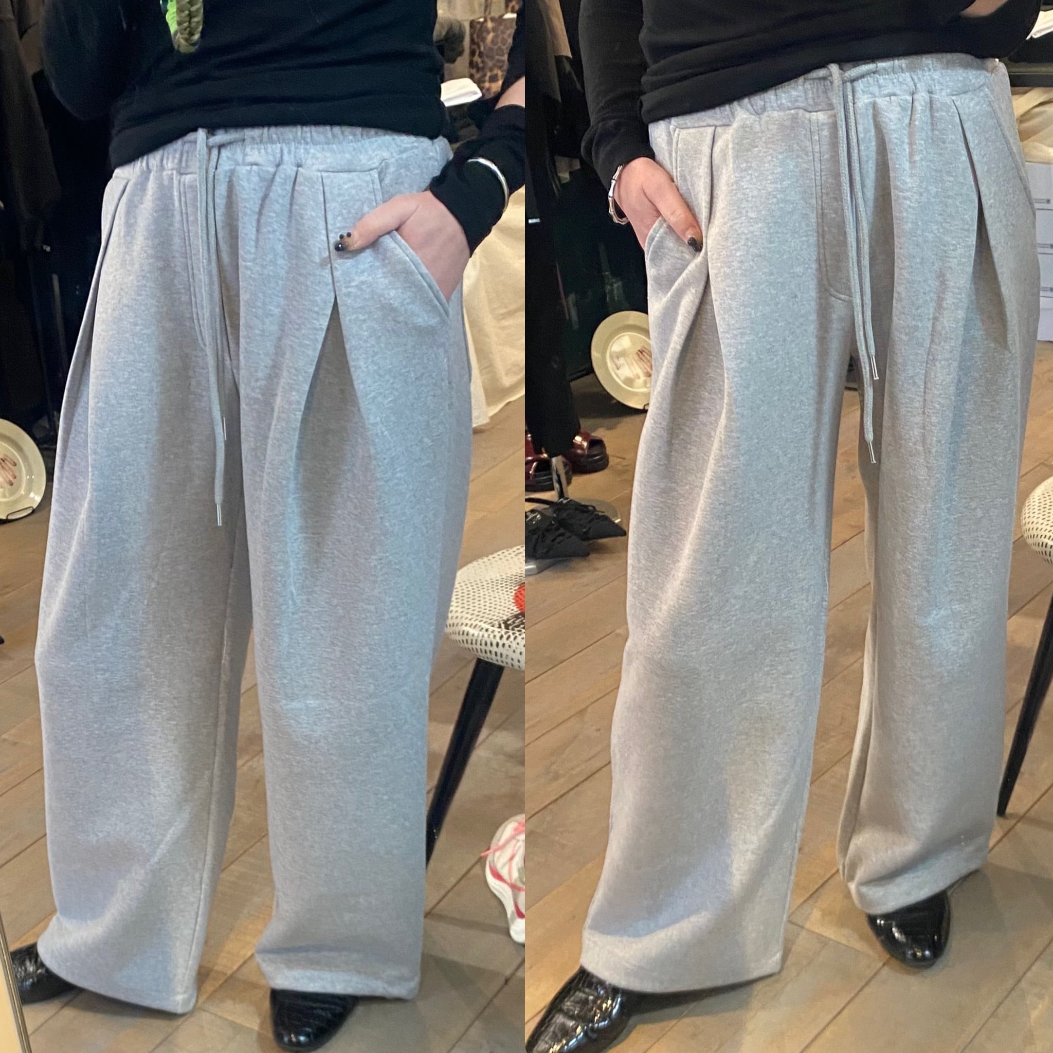 【ekat】front tuck wide sweat pants