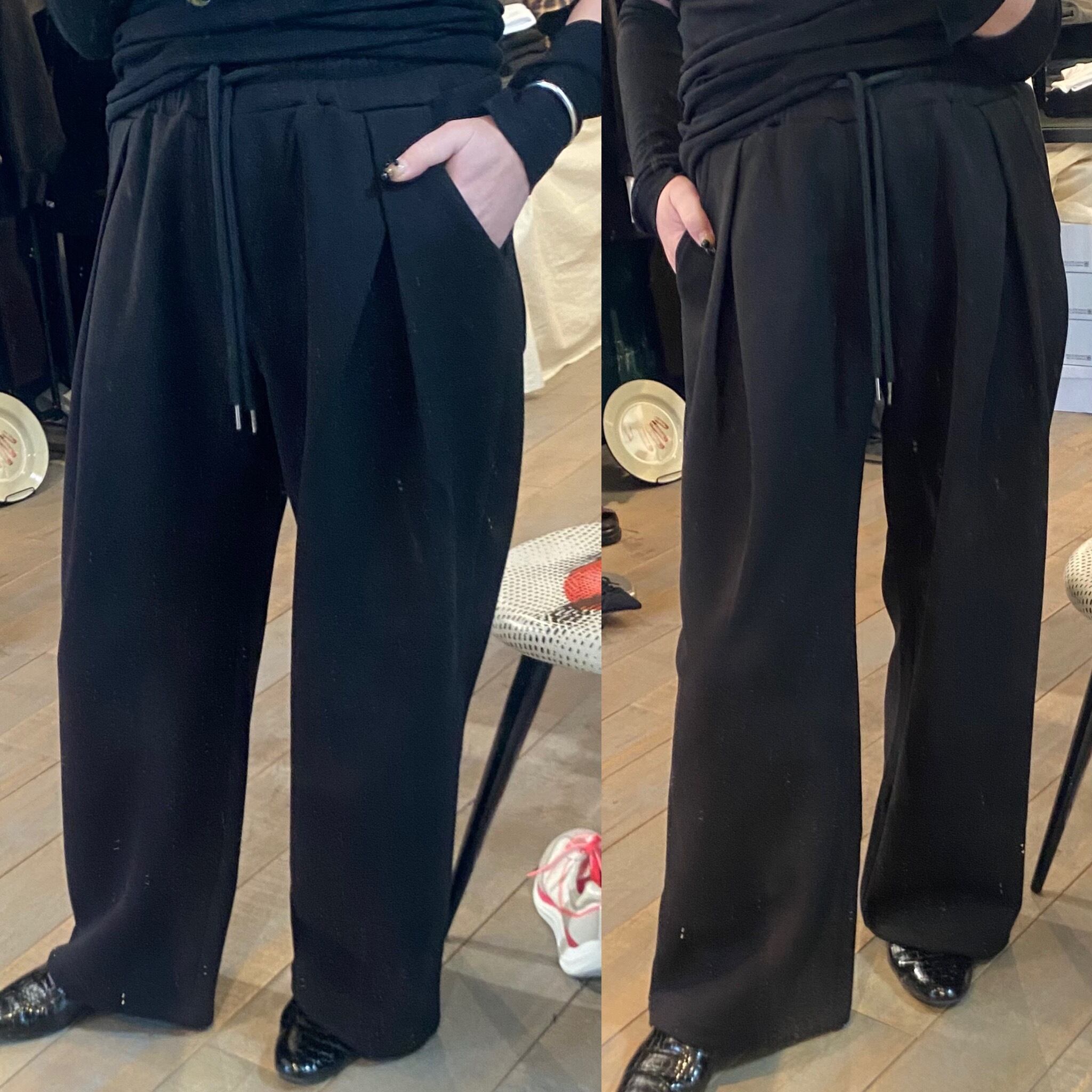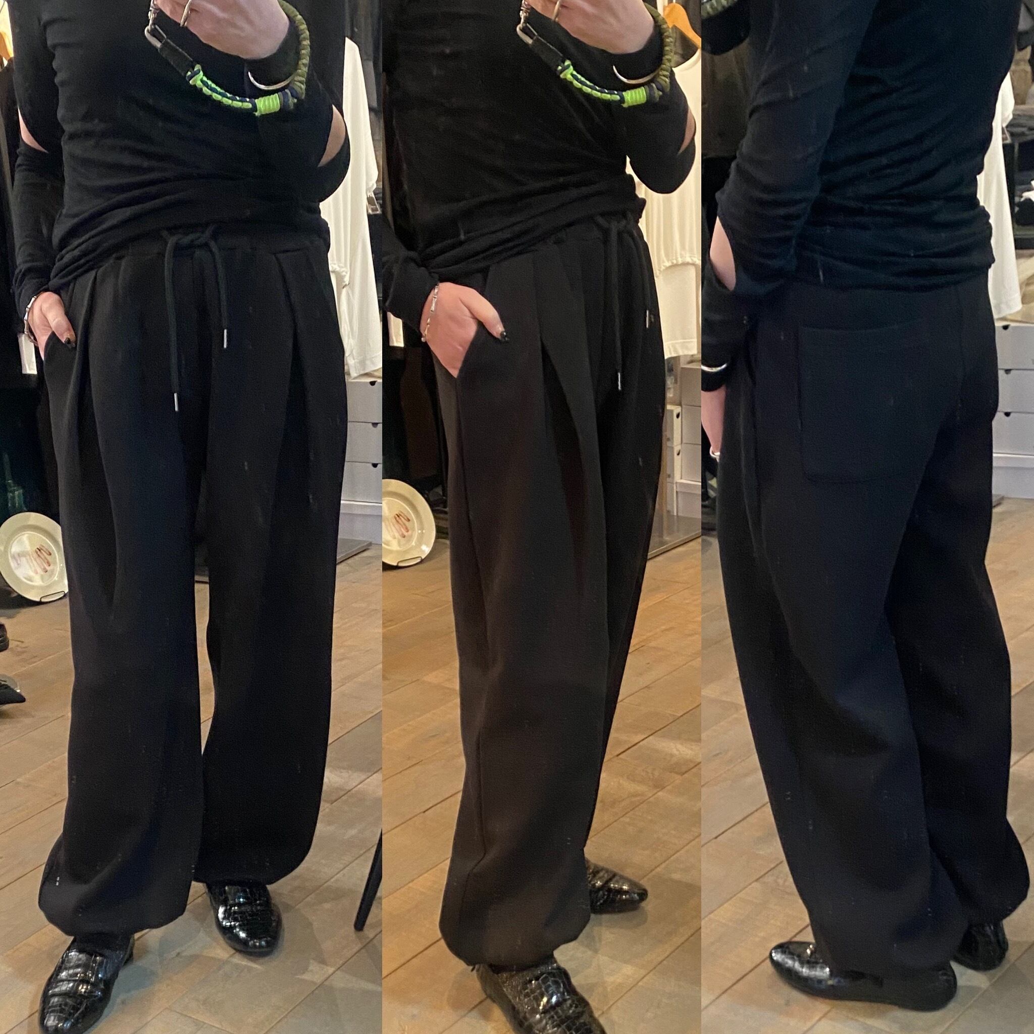 履き心地抜群のスウェットパンツ。ウエストは紐で調節可能。両サイドポケット有り。裾のドローコードでシルエットの変化をつけられます。フロントタックデザインで、スウェットですがモードさも兼ね備えコーディネートの幅を広げます。シーズンレスで着用可能。