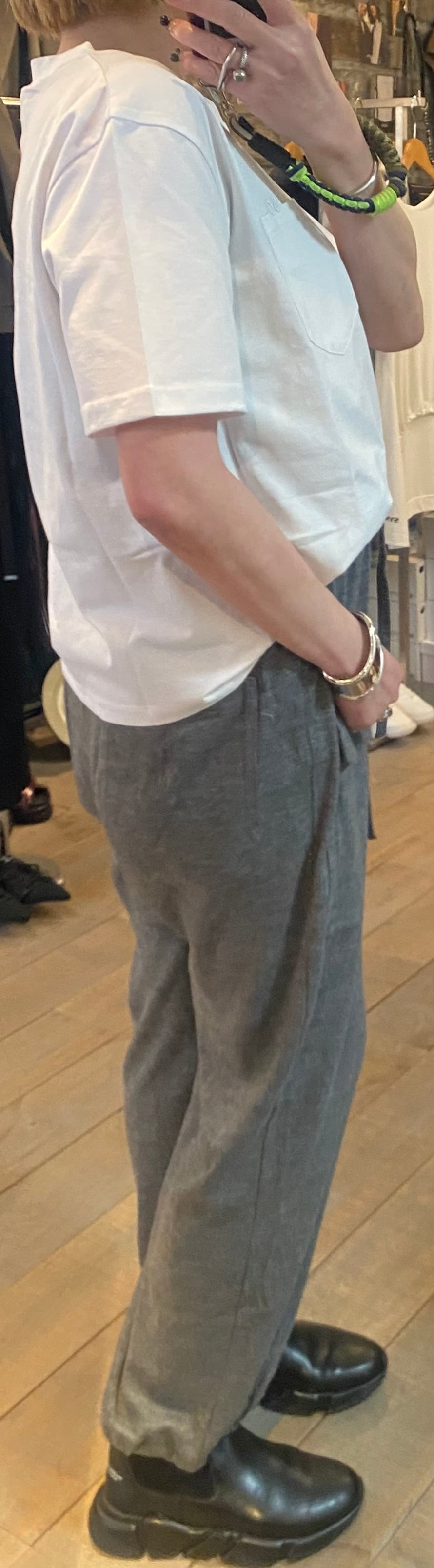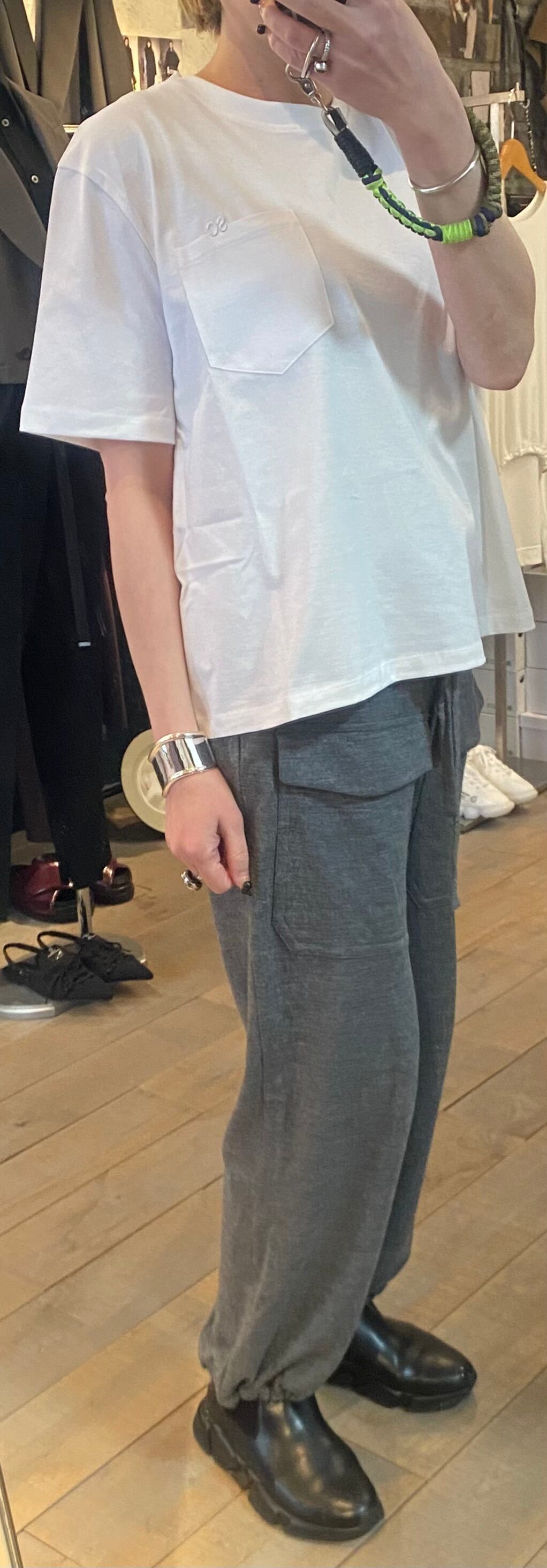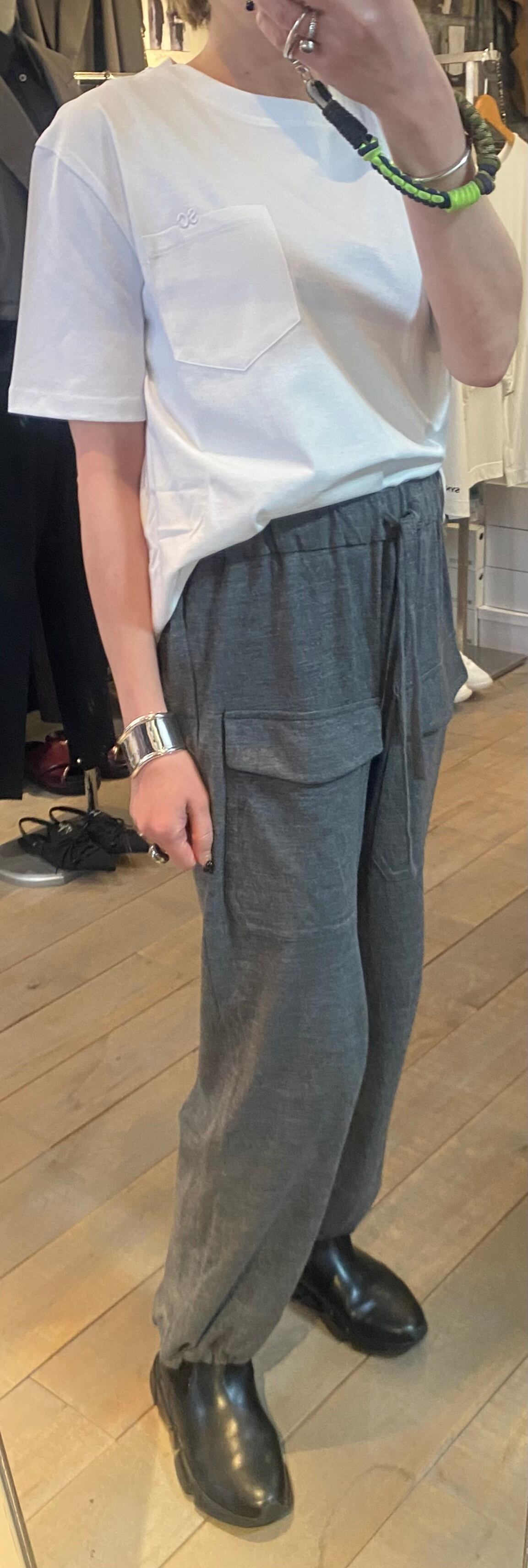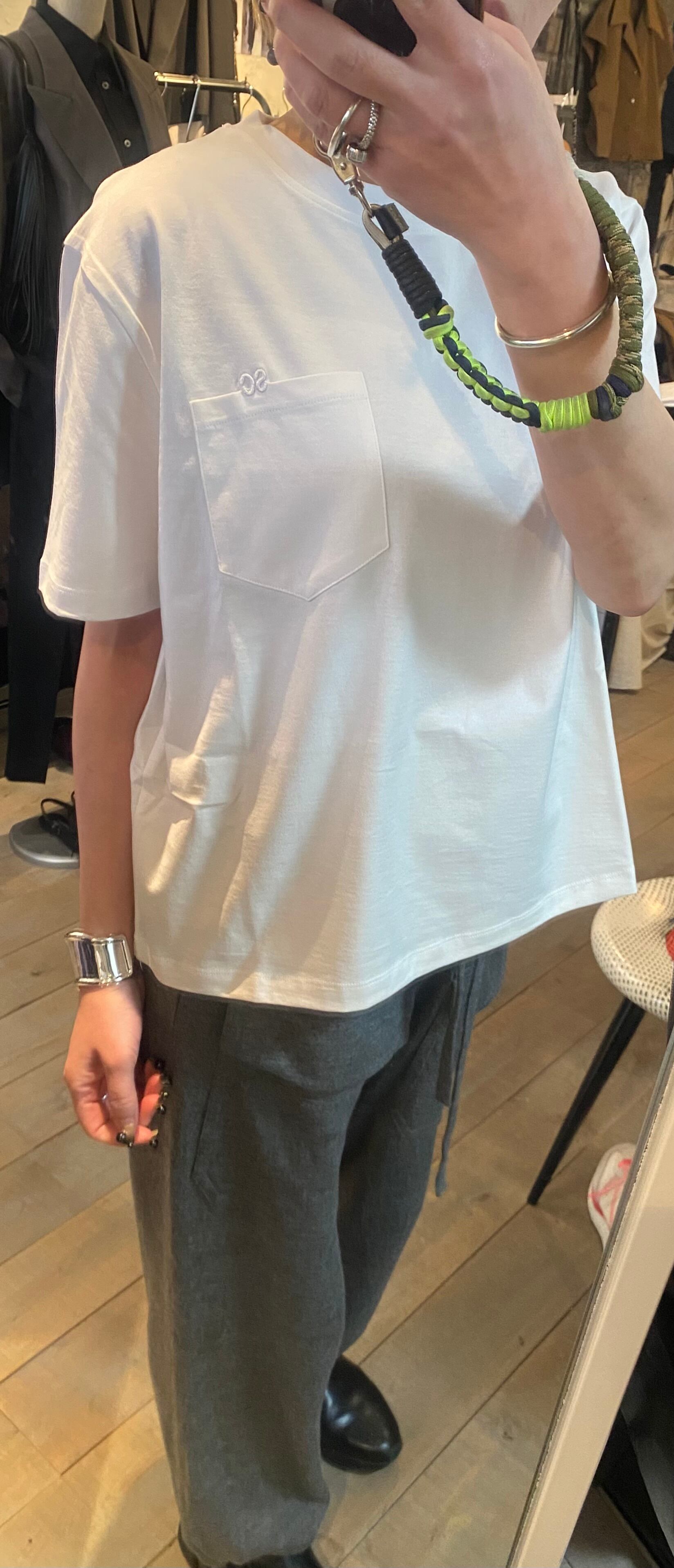胸元のポケット×刺繍がポイントのベーシックなカットソー。体のラインも拾わず、重ね着なしで1枚で着用できます。毎シーズンカットソーでは人気の素材感で着心地も◎