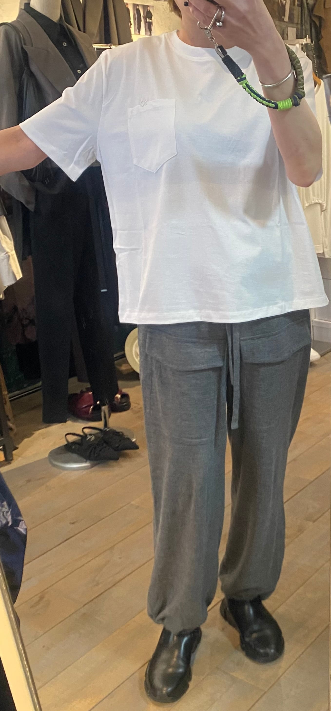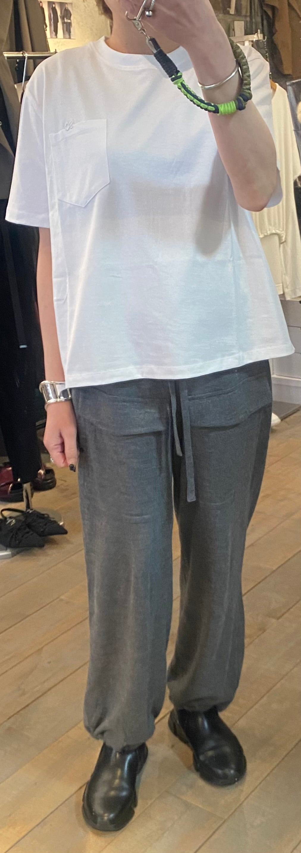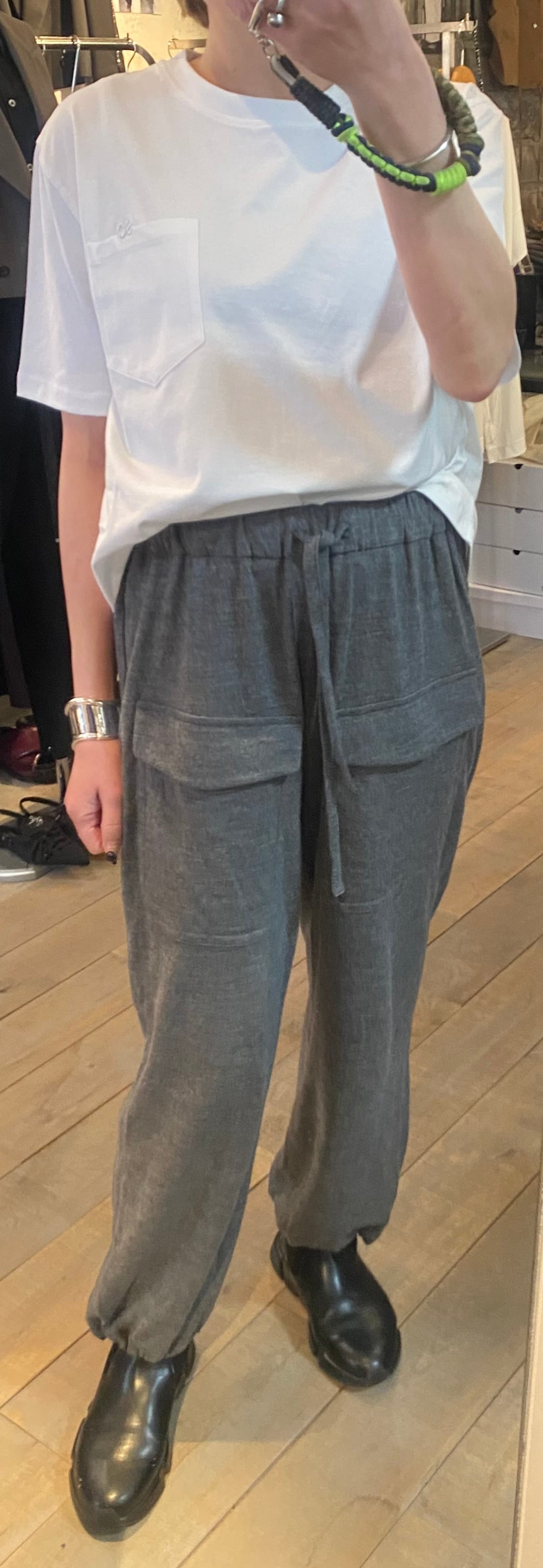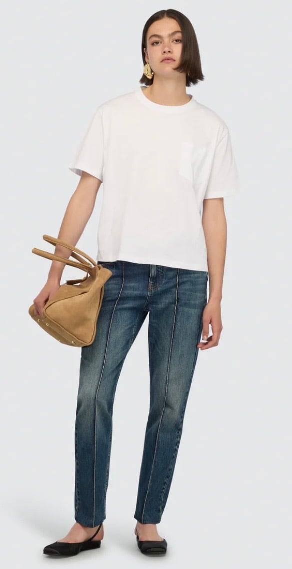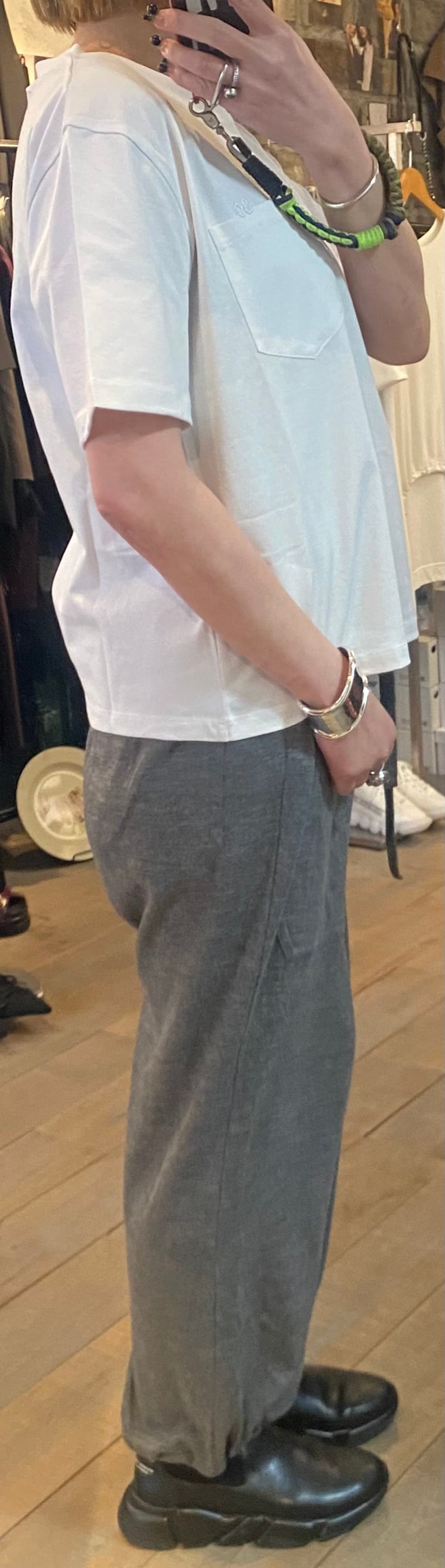 胸元のポケット×刺繍がポイントのベーシックなカットソー。体のラインも拾わず、重ね着なしで1枚で着用できます。毎シーズンカットソーでは人気の素材感で着心地も◎