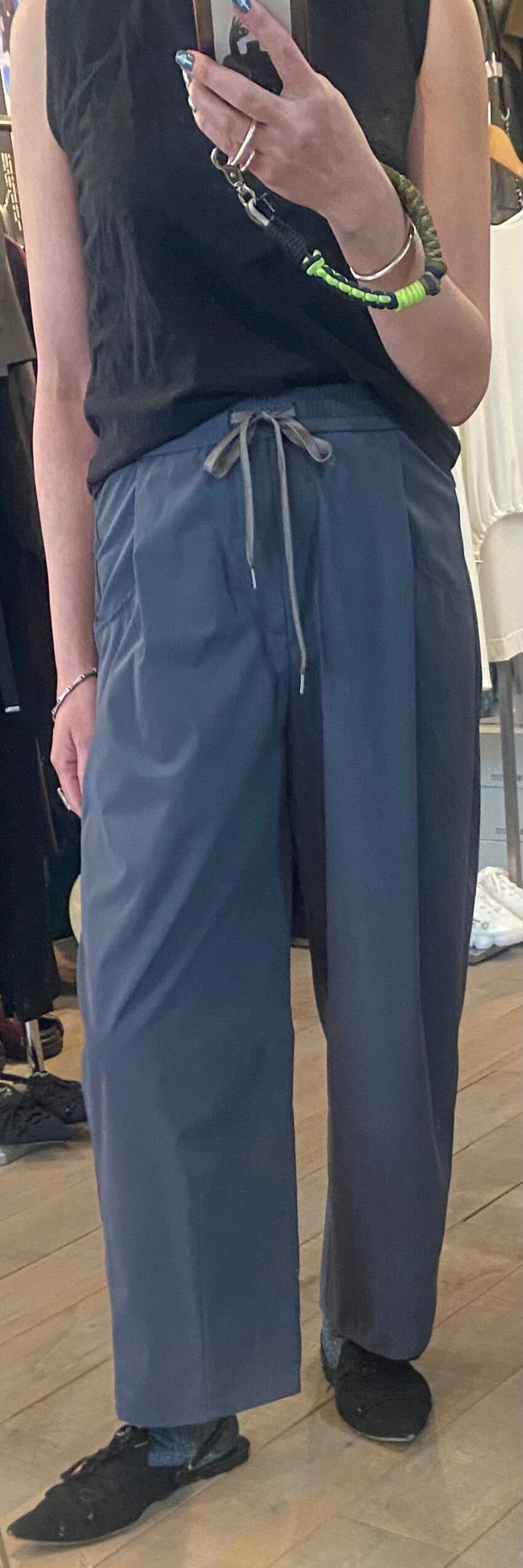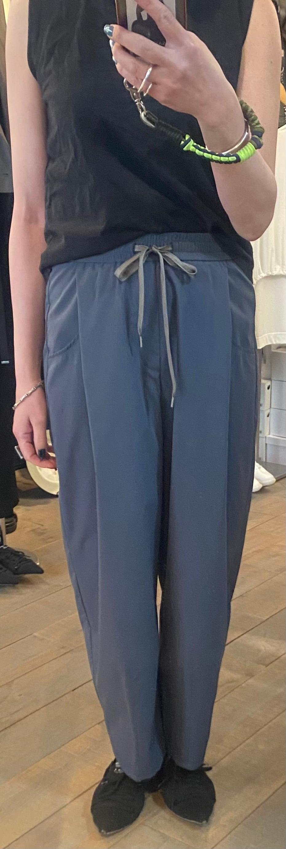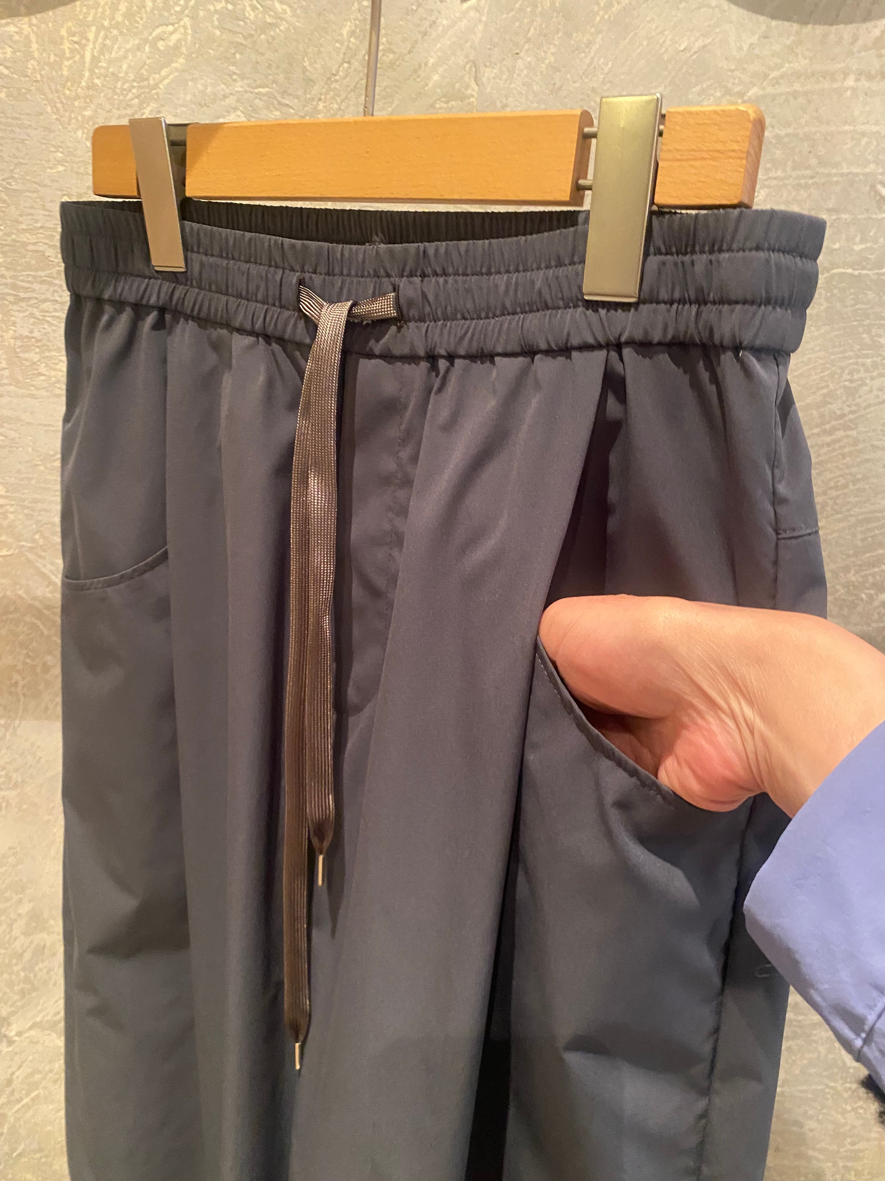 ポリエステルですがコットンのような肌触りで涼しい機能性素材。とても軽い素材で長い夏のヘビロテパンツです♪