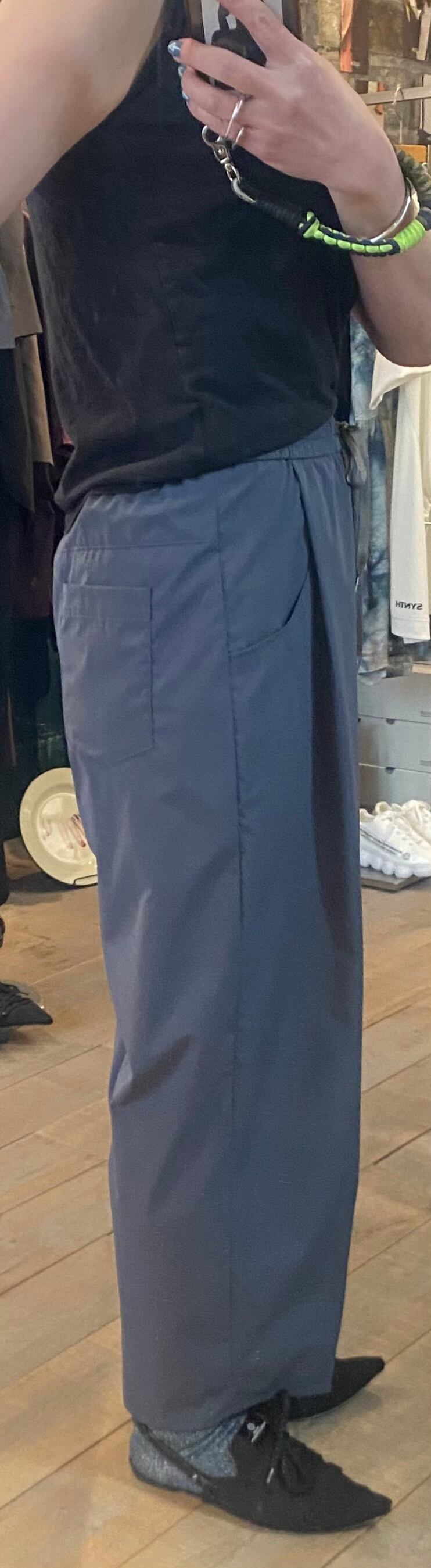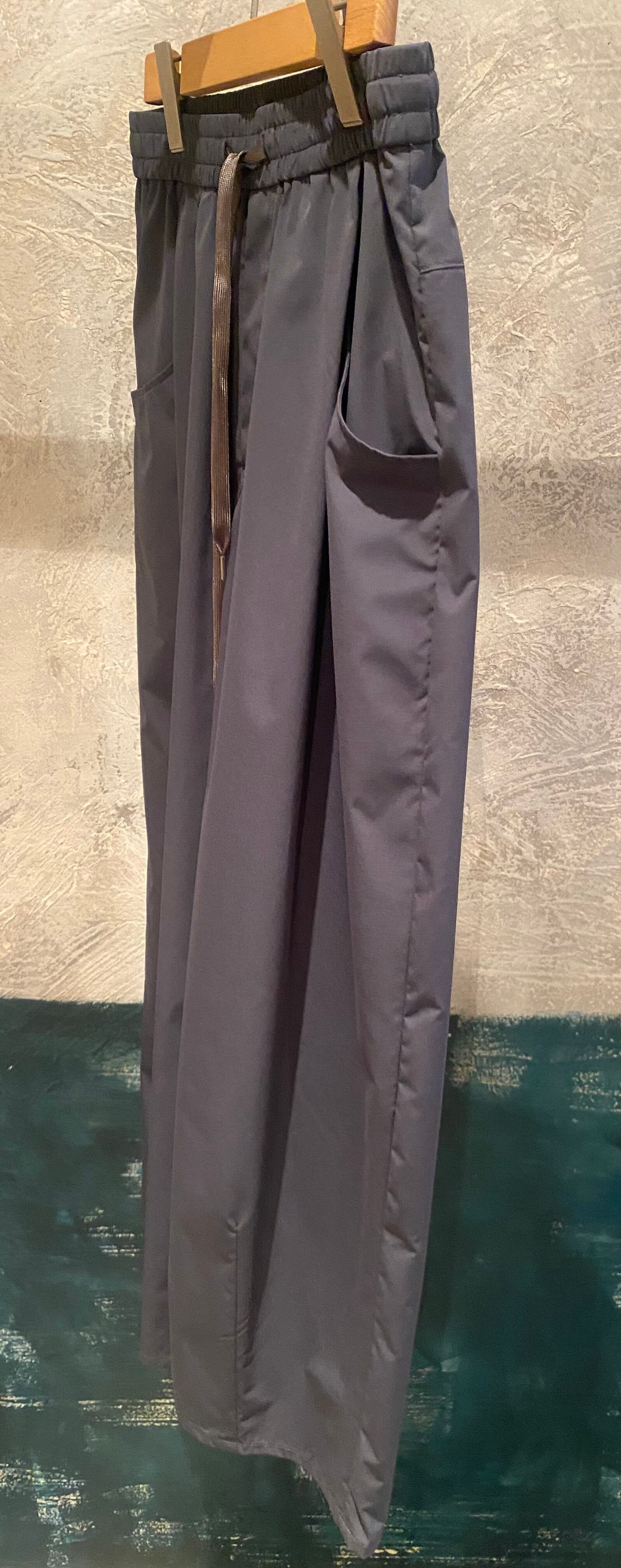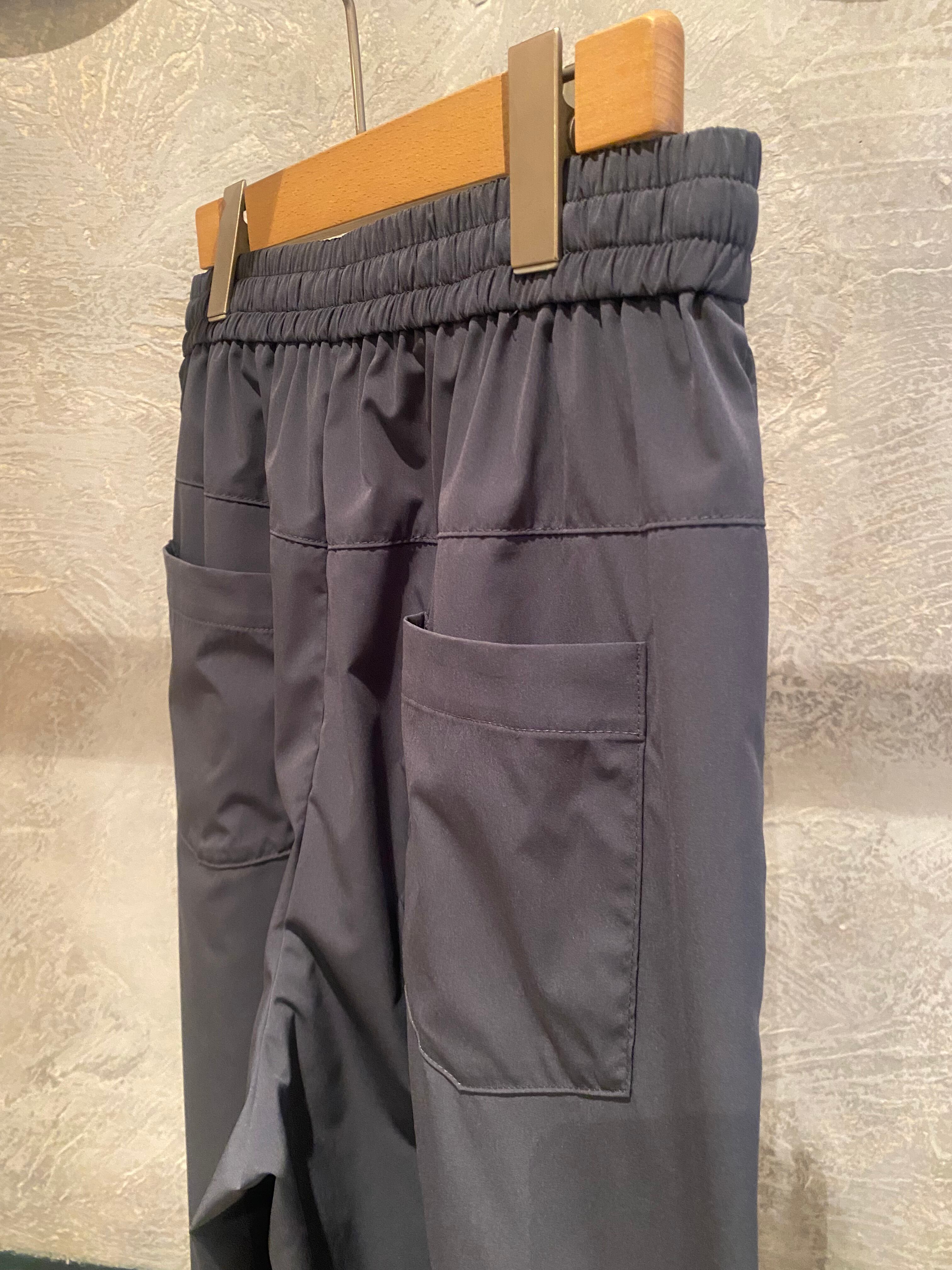 ゆったりとしたパターンですが、ウエストラインはスッキリさせて女性らしく着こなせるイージーパンツ。ポケットのバランスがポイントです。