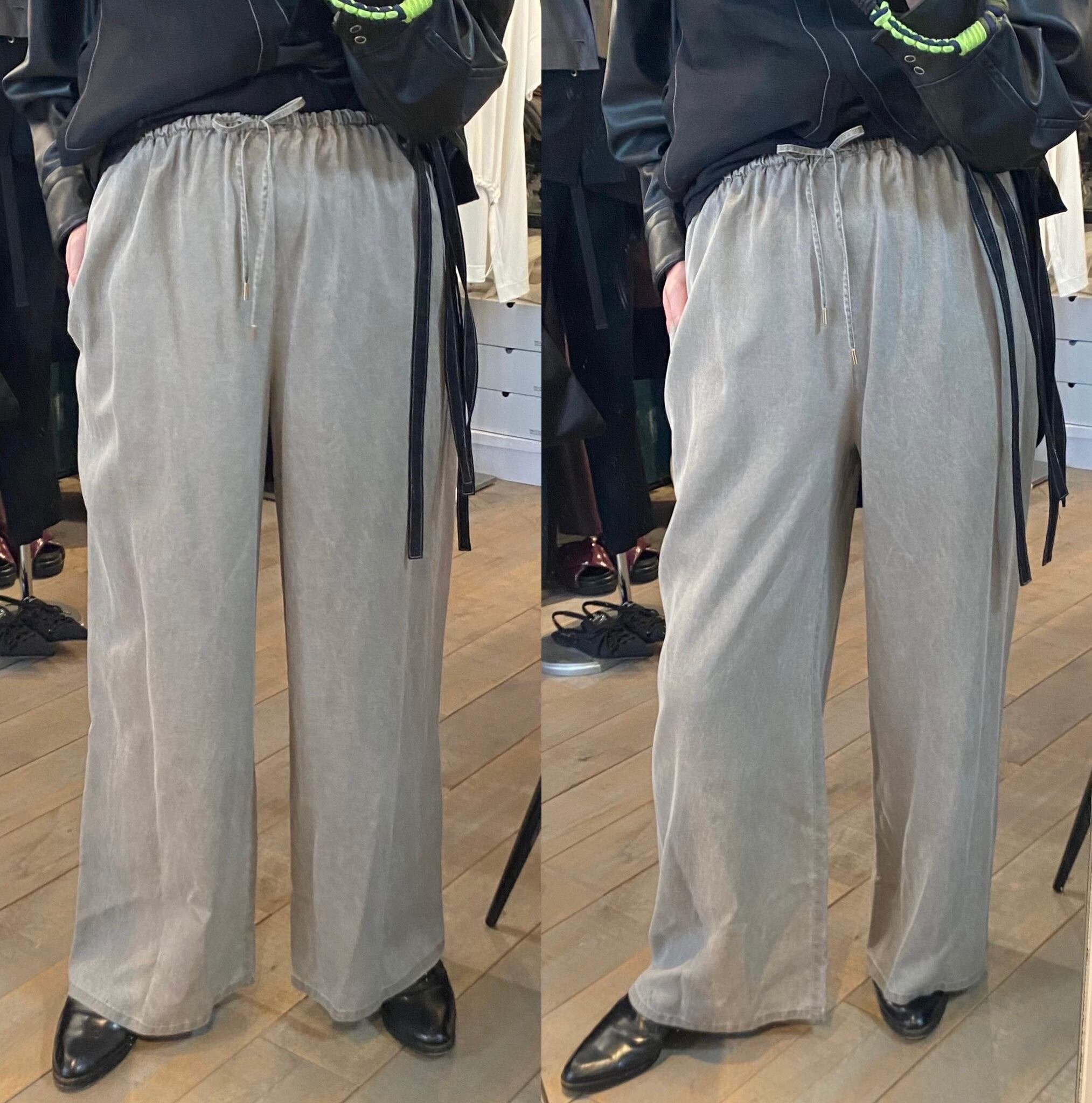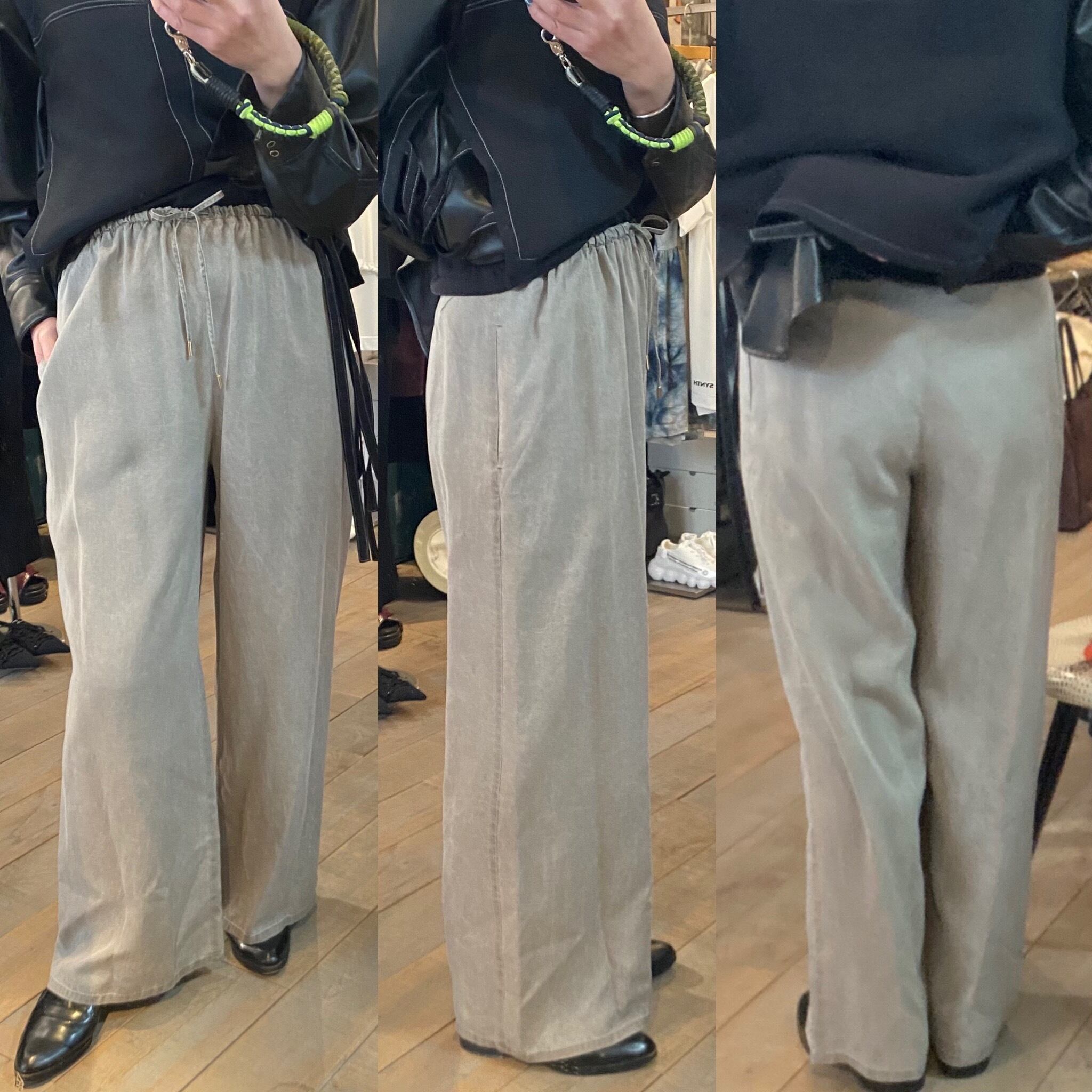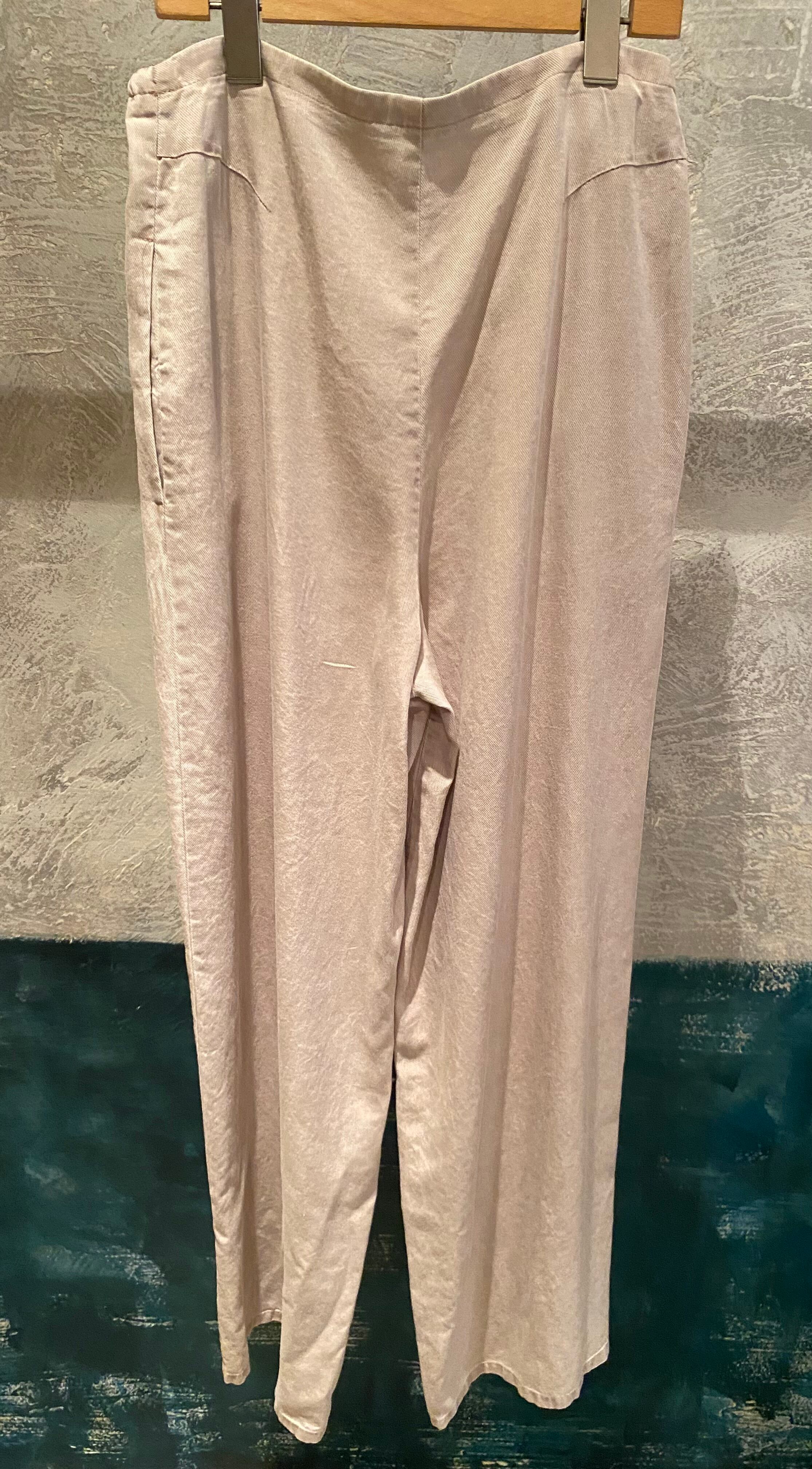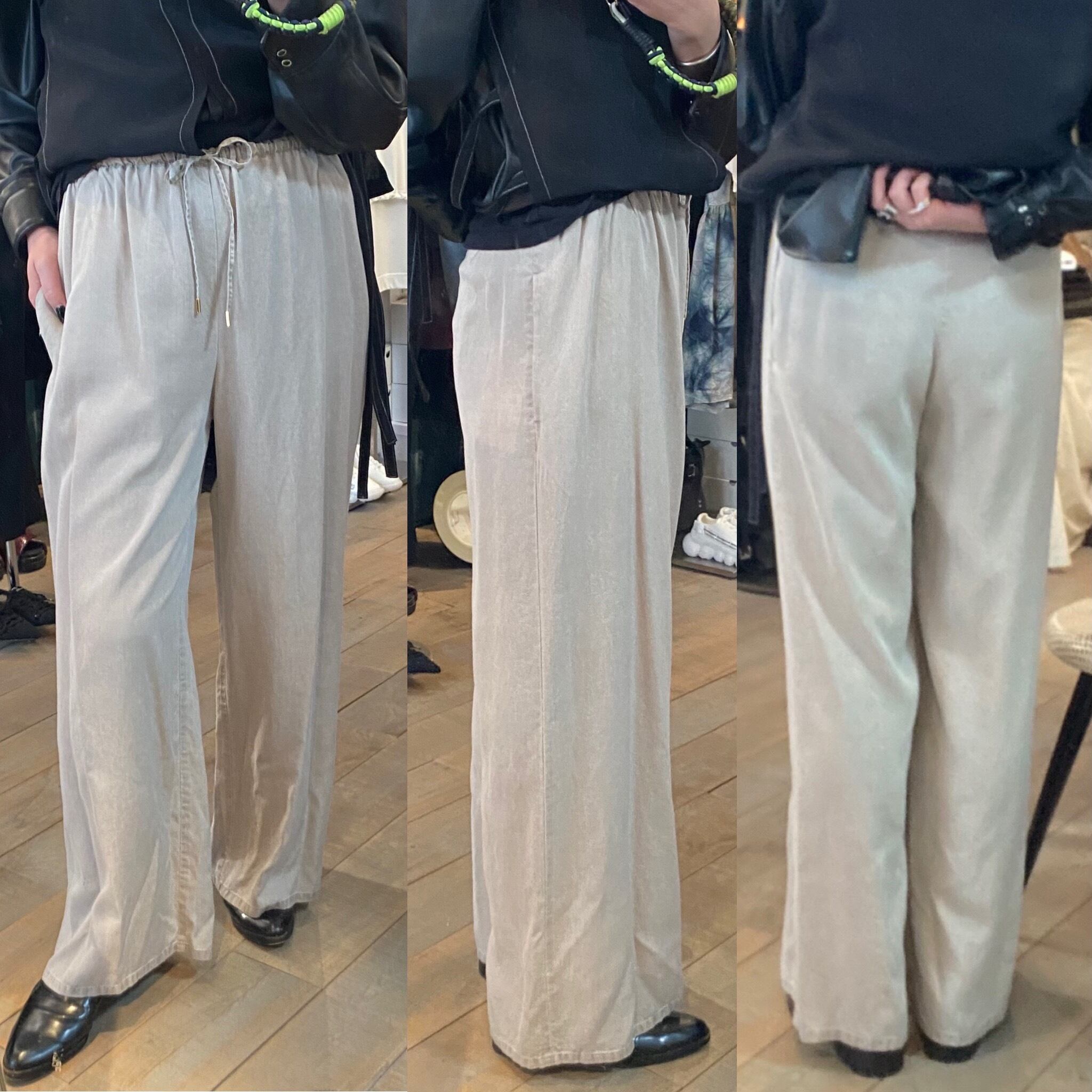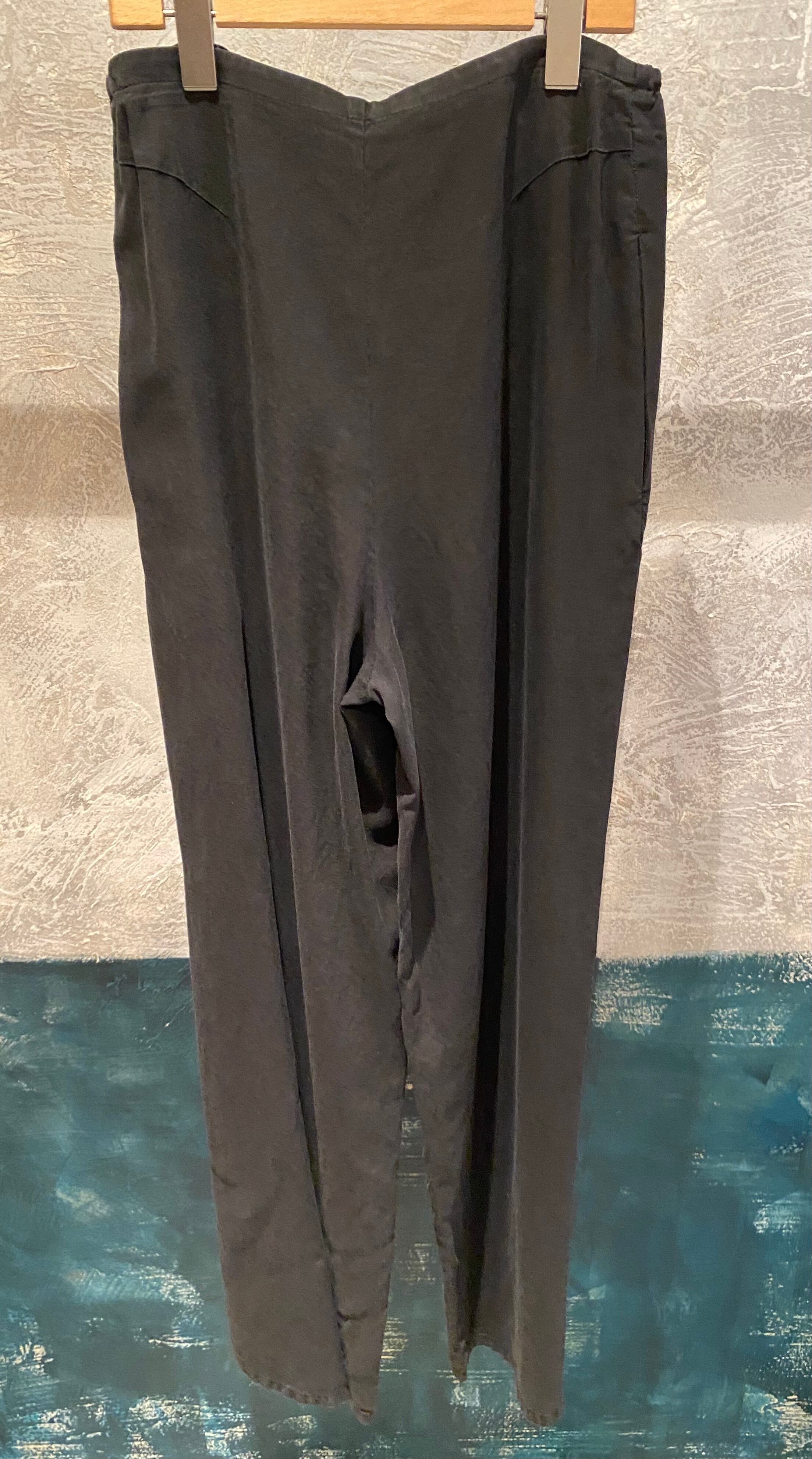 トロッとしたオチ感のあるストレートイージーパンツ。ウエストはゴム仕様でストレスフリーな履き心地。紐でサイズ調節ができるフリーサイズ。両サイドポケット有り。独特な色目、表情を出すため特殊な染料や縫製後の洗い加工をしています。他の製品では味わえない自然な色相をかもし出しているのが特徴的。サンダルやスニーカーとカジュアルなスタイルにも、ローファーやパンプスとキレイめなスタイルにも◎