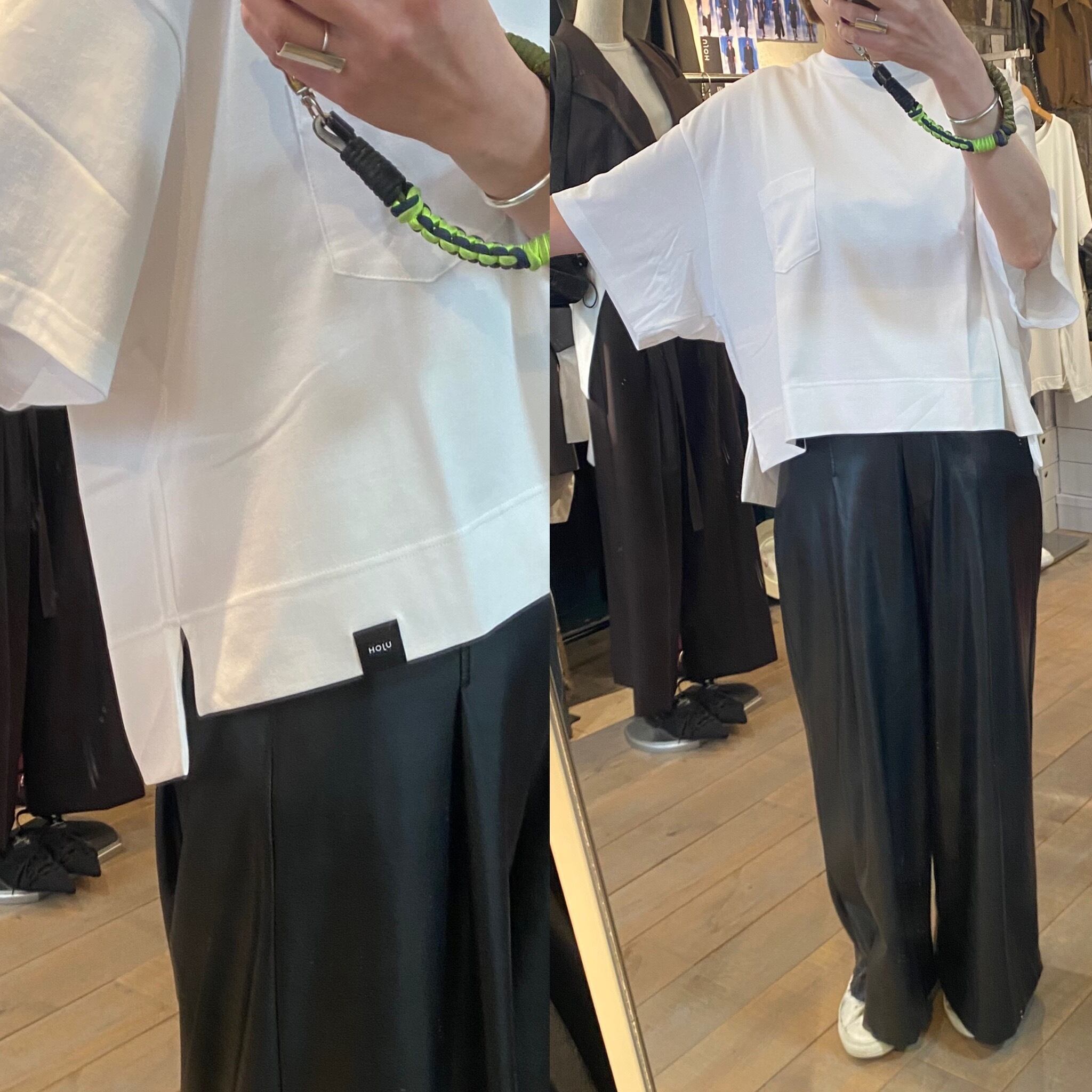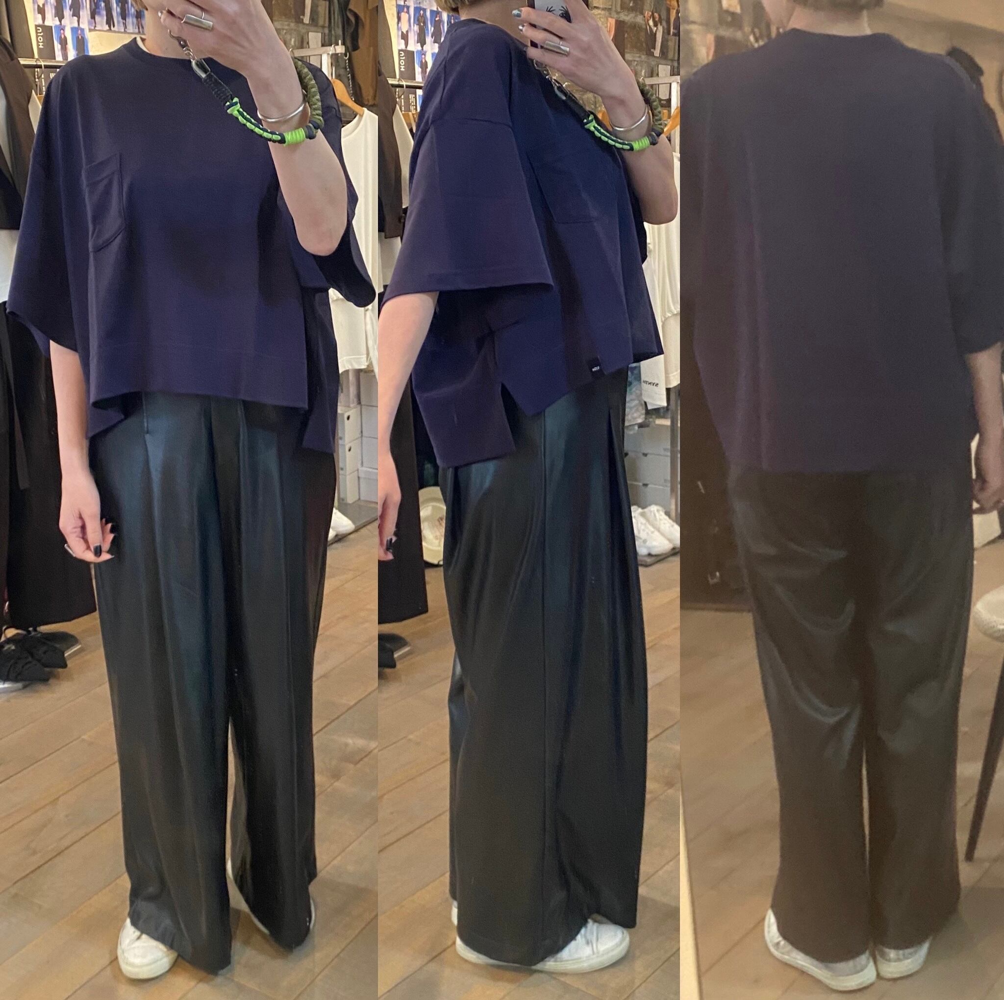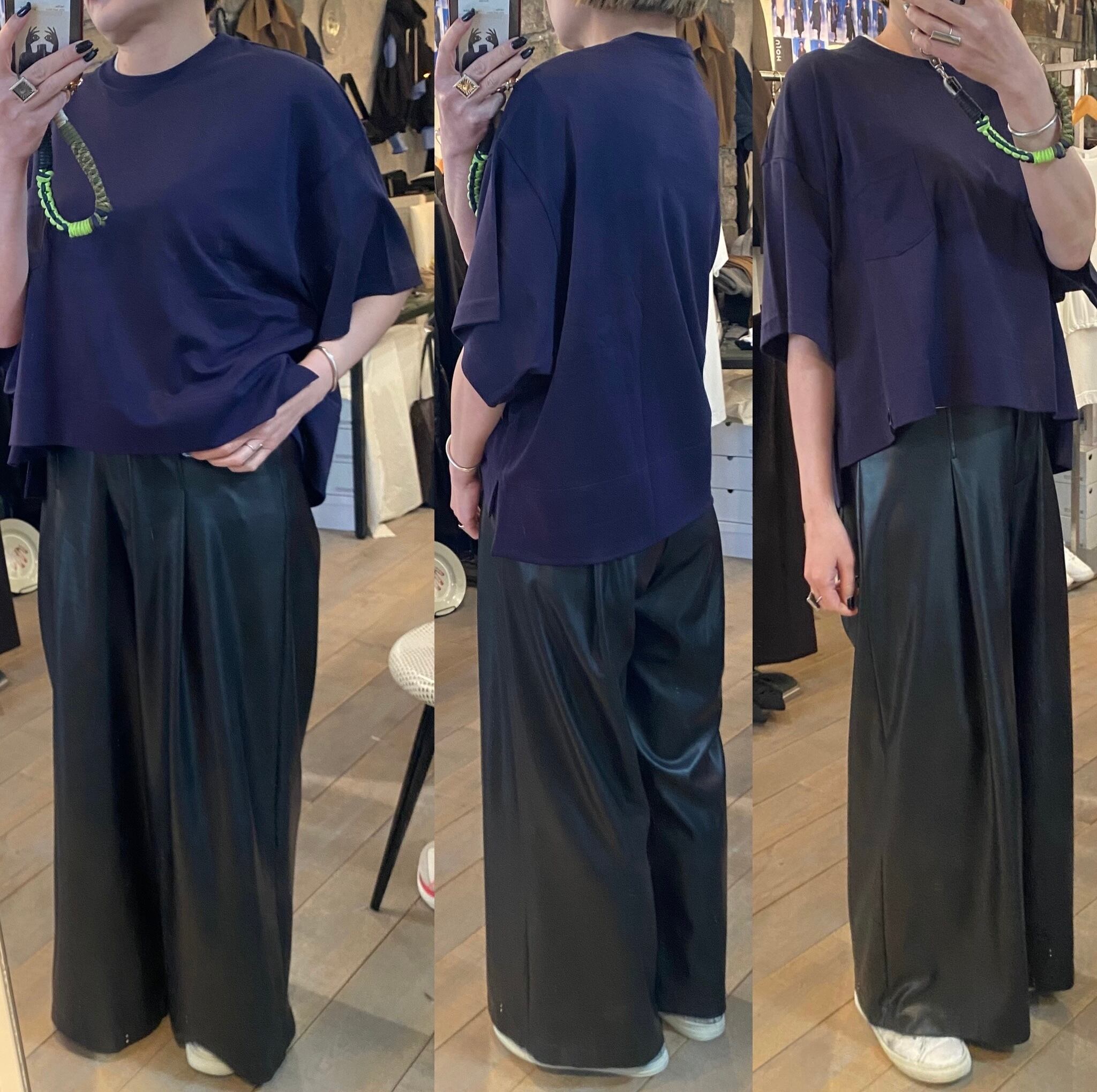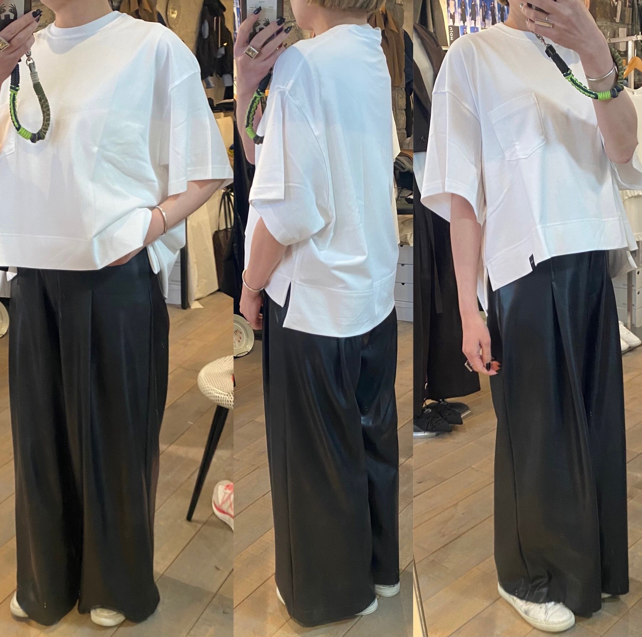 クロップド丈のゆとりのあるシルエット。カジュアルから上品なスタイルまで活躍するカットソー。ボトムのシルエットも選ばず、真夏1枚で着れるのも嬉しいところ。