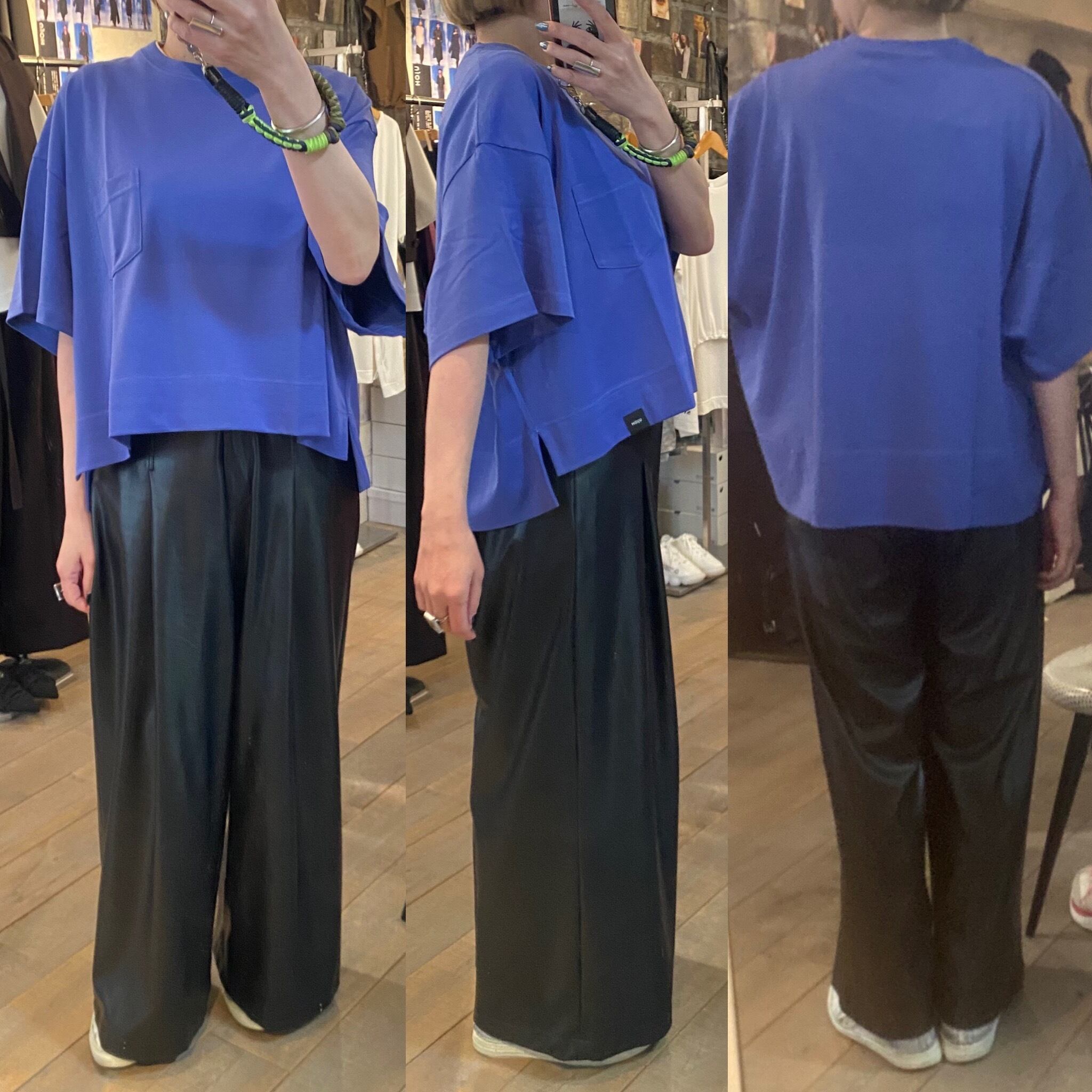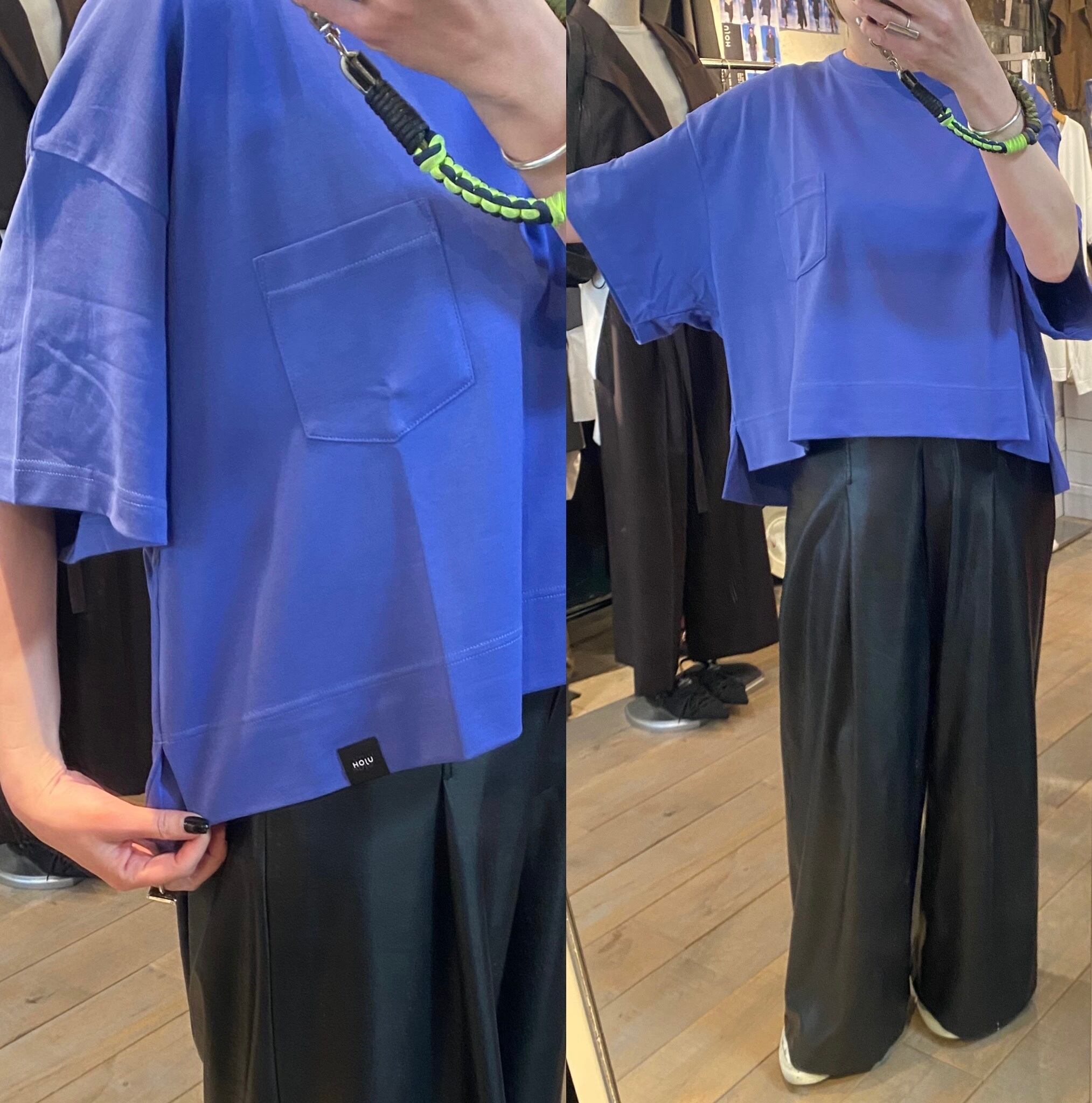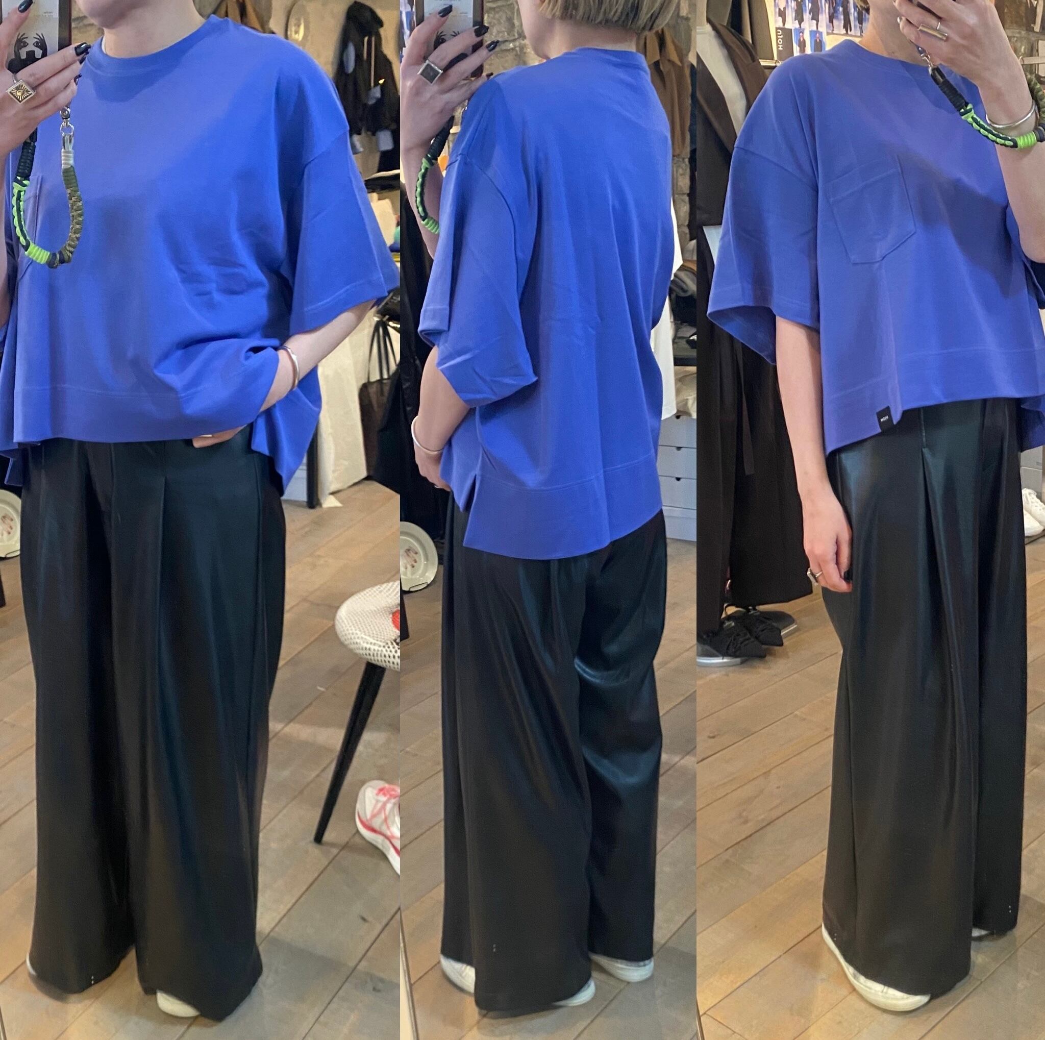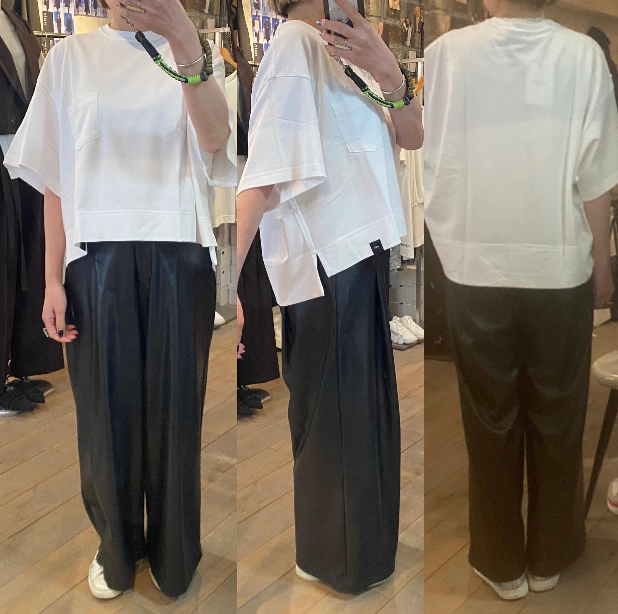 クロップド丈のゆとりのあるシルエット。カジュアルから上品なスタイルまで活躍するカットソー。ボトムのシルエットも選ばず、真夏1枚で着れるのも嬉しいところ。