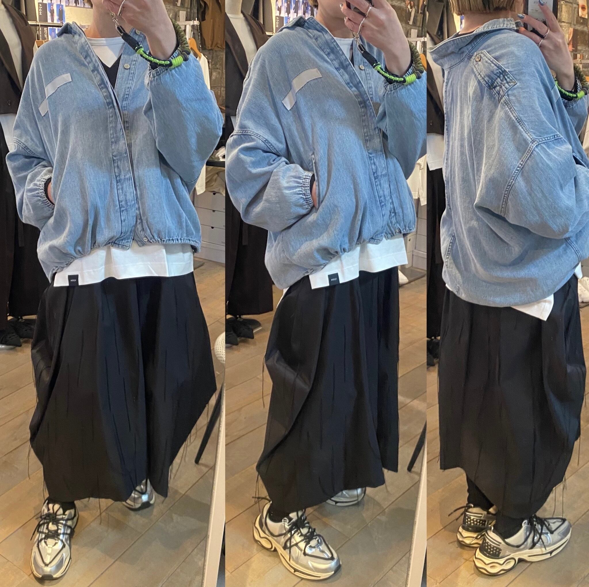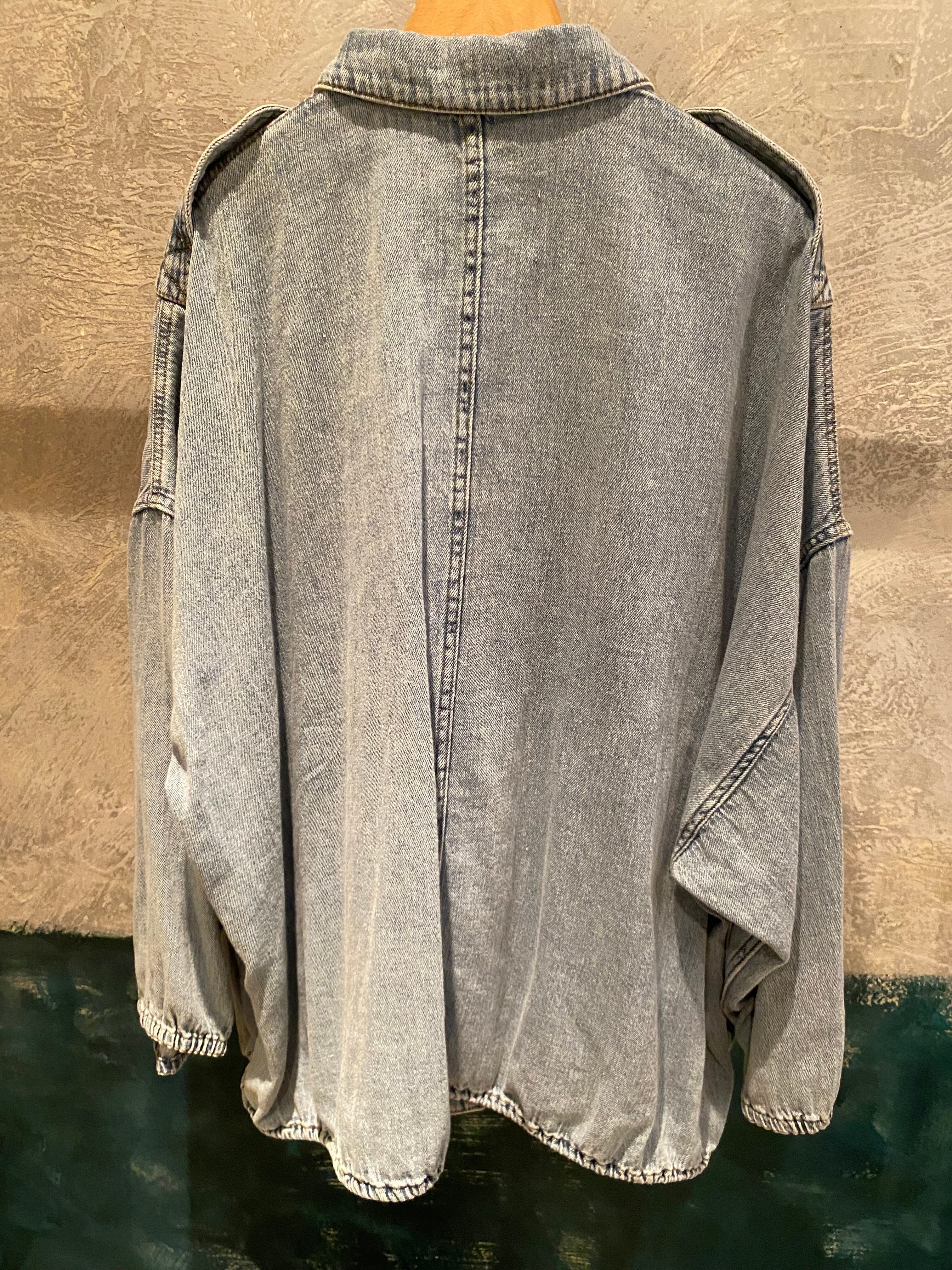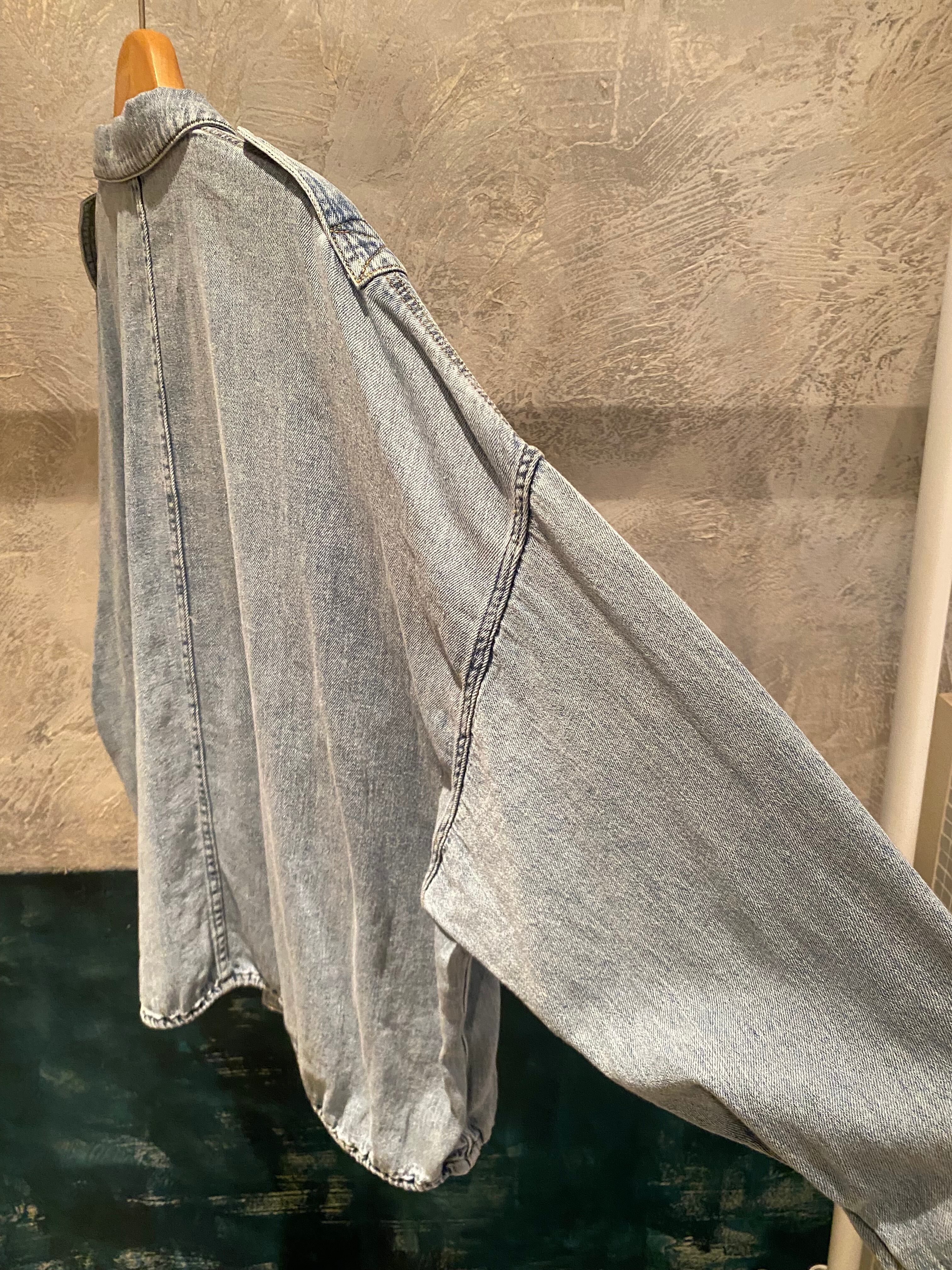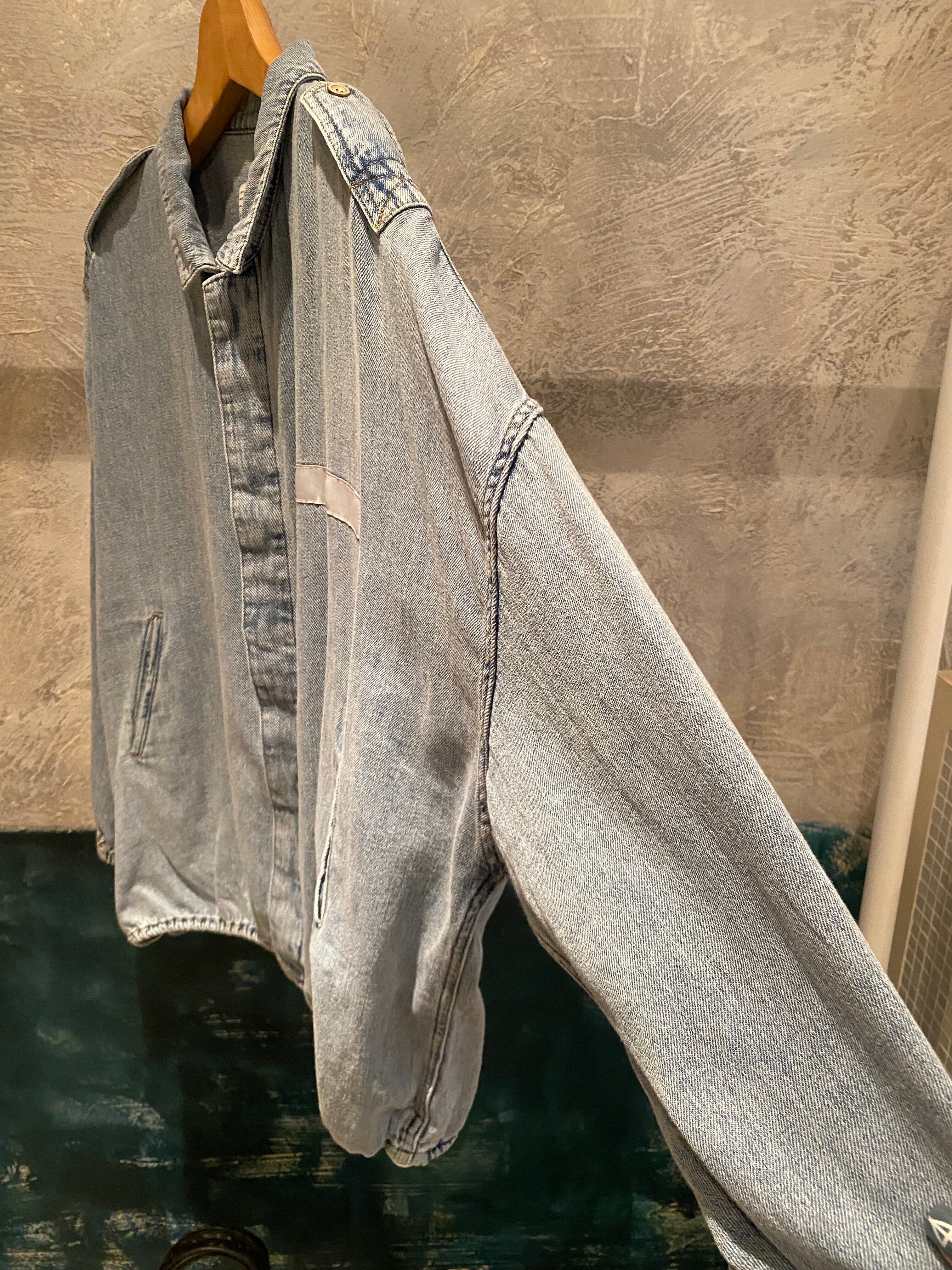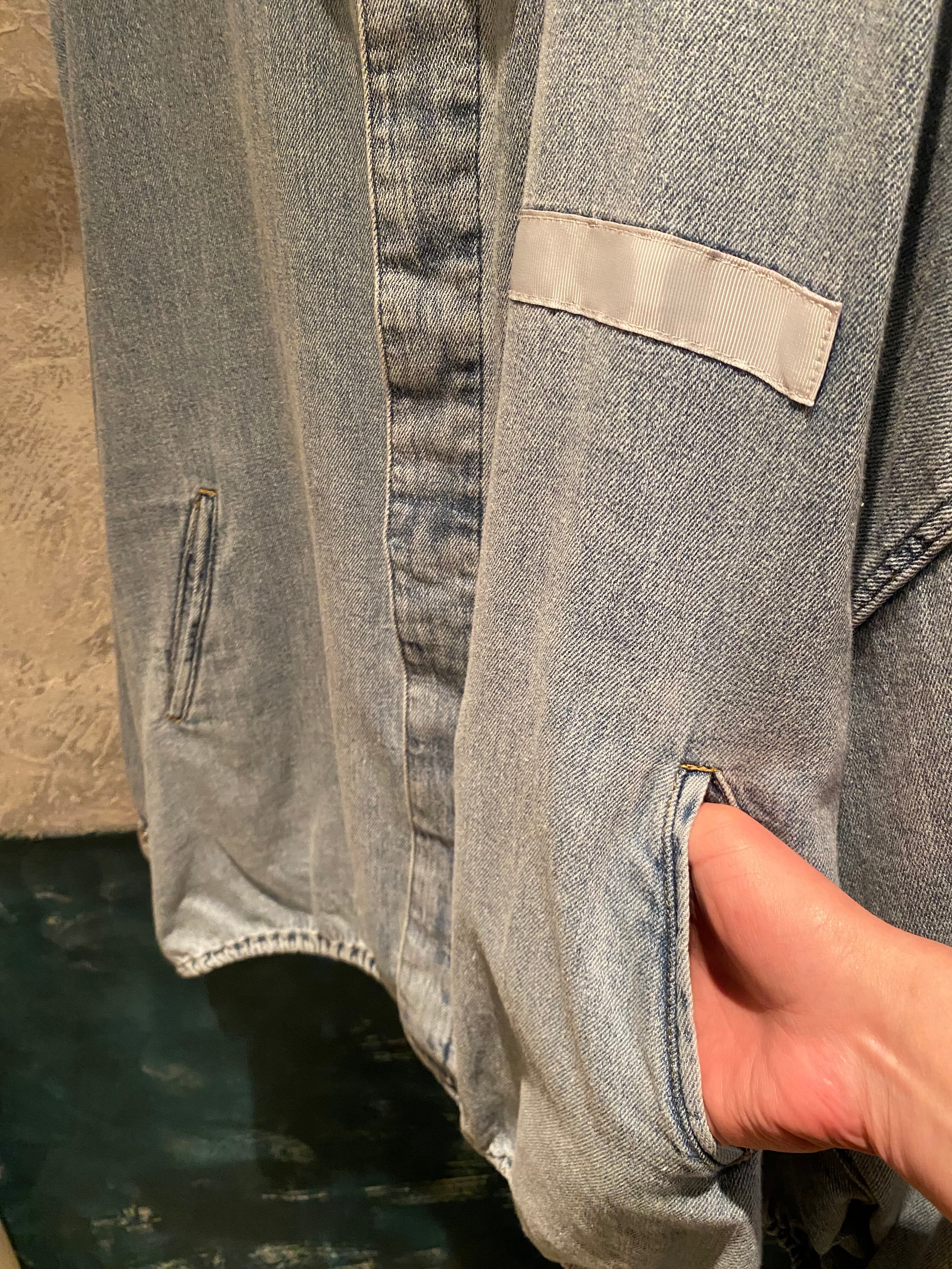 ライトブルーの硬さのない柔らかい着心地のデニムジャケット。デニム特有の硬い分厚さもなく軽く羽織って頂けます♪裾のドローコードでシルエットの変化を楽しめます。フロントジップボタンデザイン。キチッと着たり着崩す着方もオススメ。真夏以外のロングシーズン着回せるアイテム。