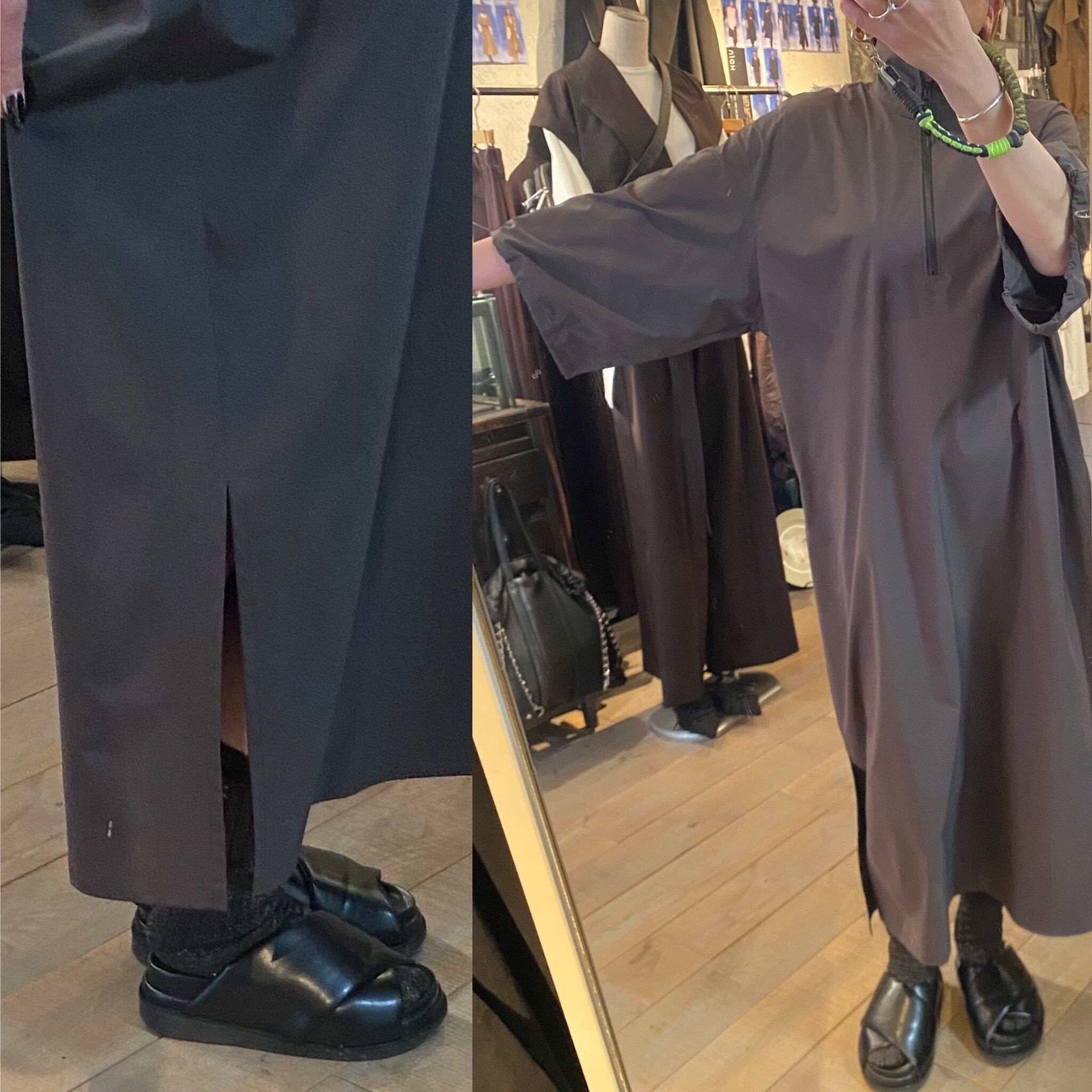 裾サイドにスリットが入ってるのでパンツとのレイヤードも◎