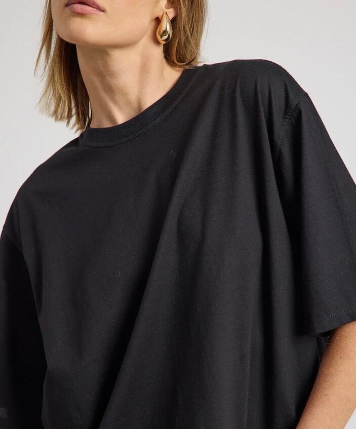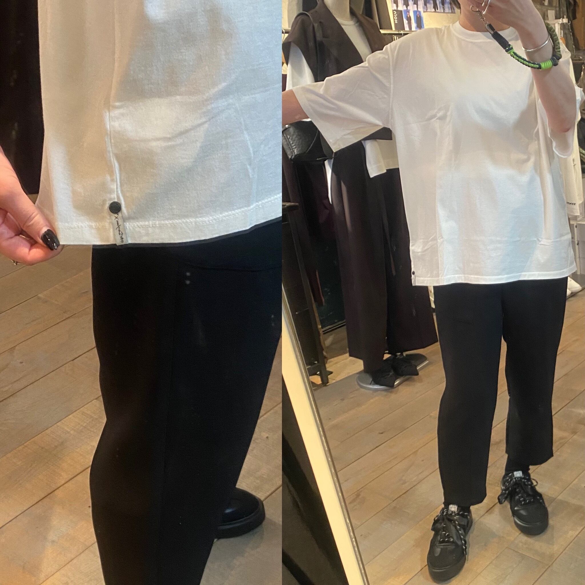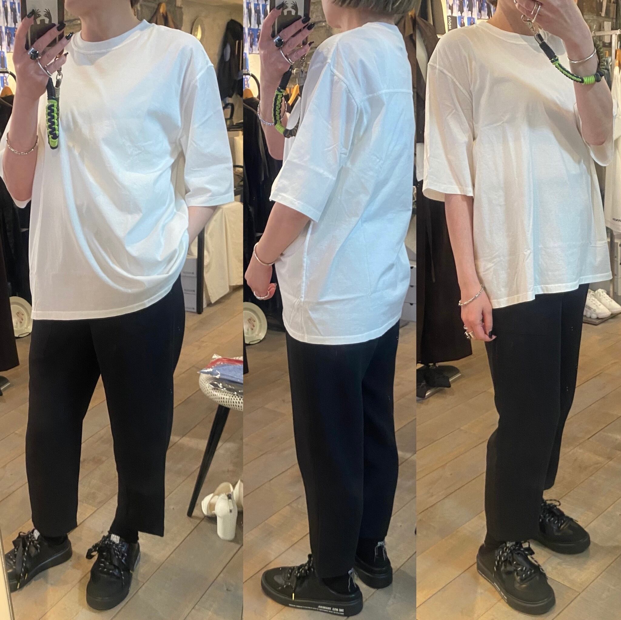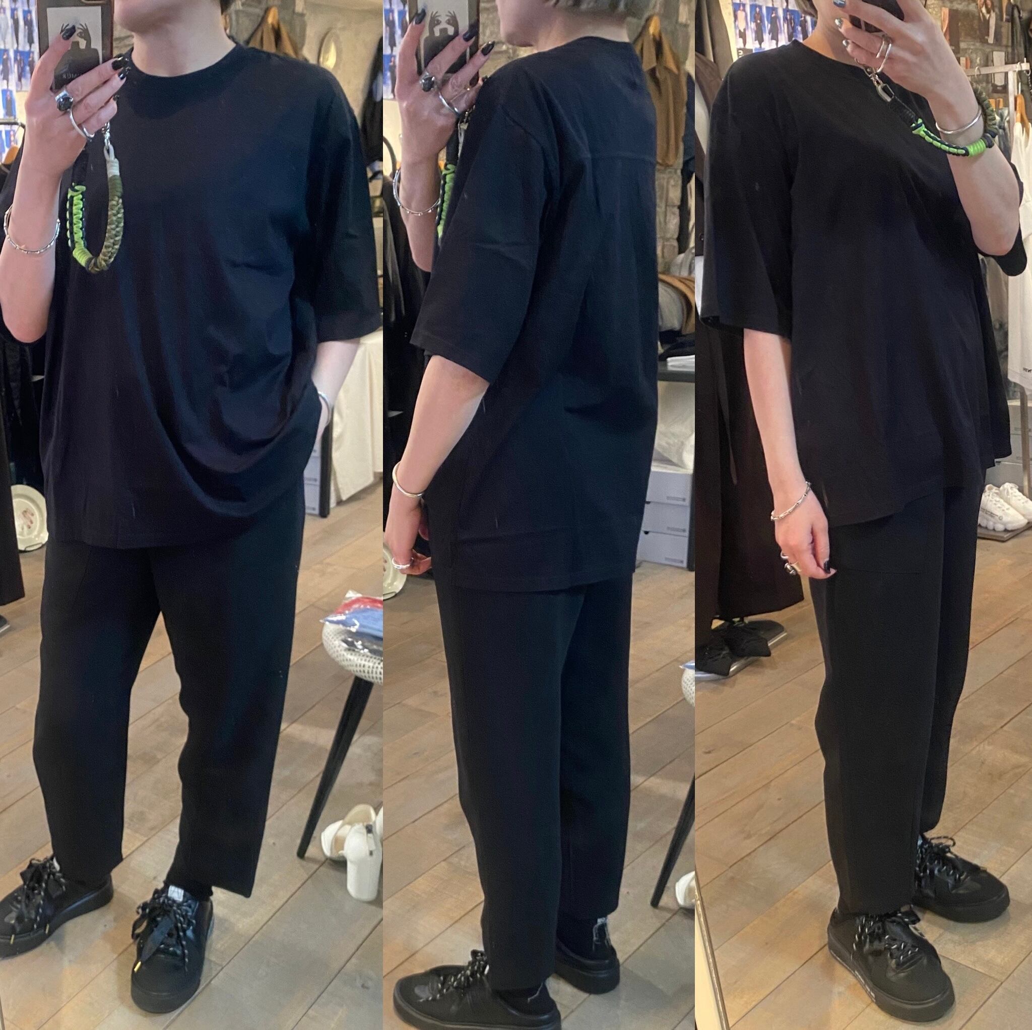 程よいオーバーサイズ感で、どなたでも取り入れやすく着回しのきくハーフスリーブのカットソー。コットン素材で着心地も良く真夏は1枚でサラッと着用できます。バックスタイルの切り替えやサイド裾のデザインなどがポイントに。