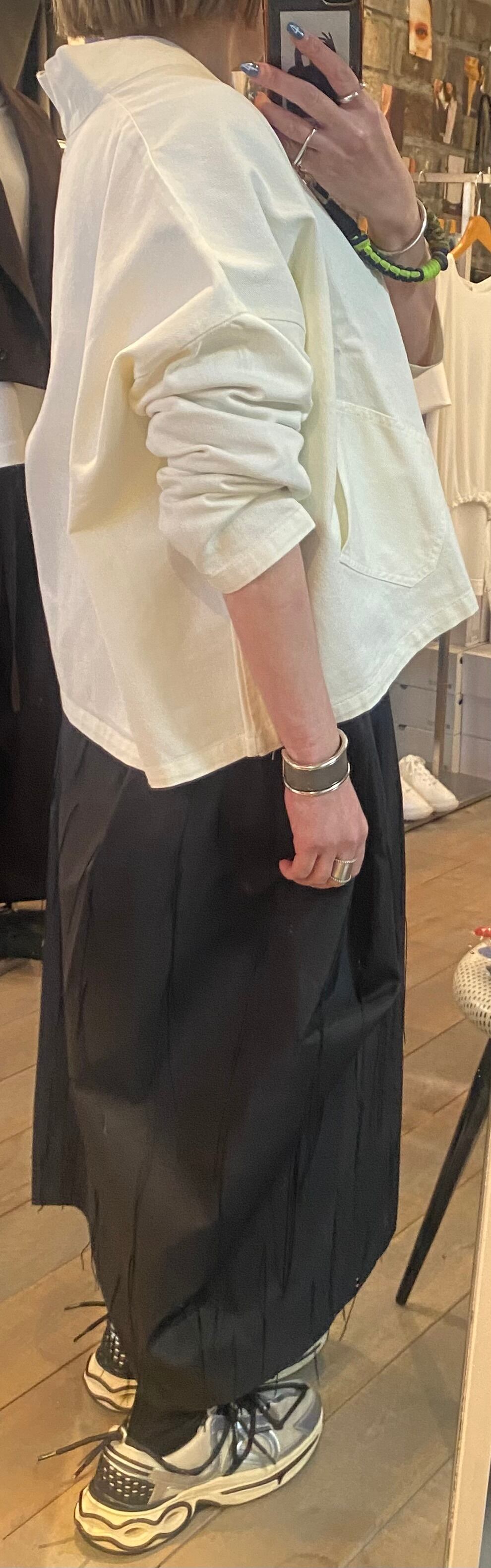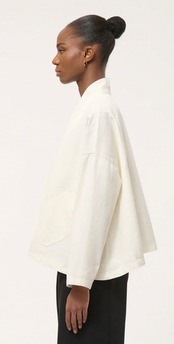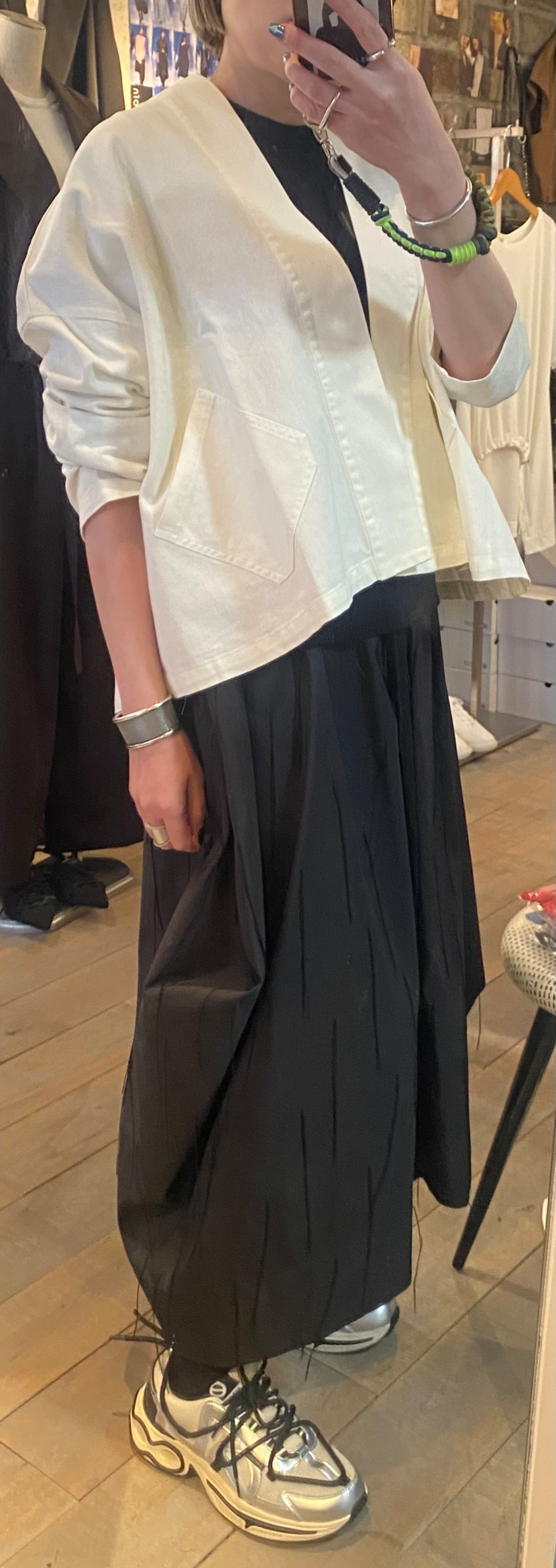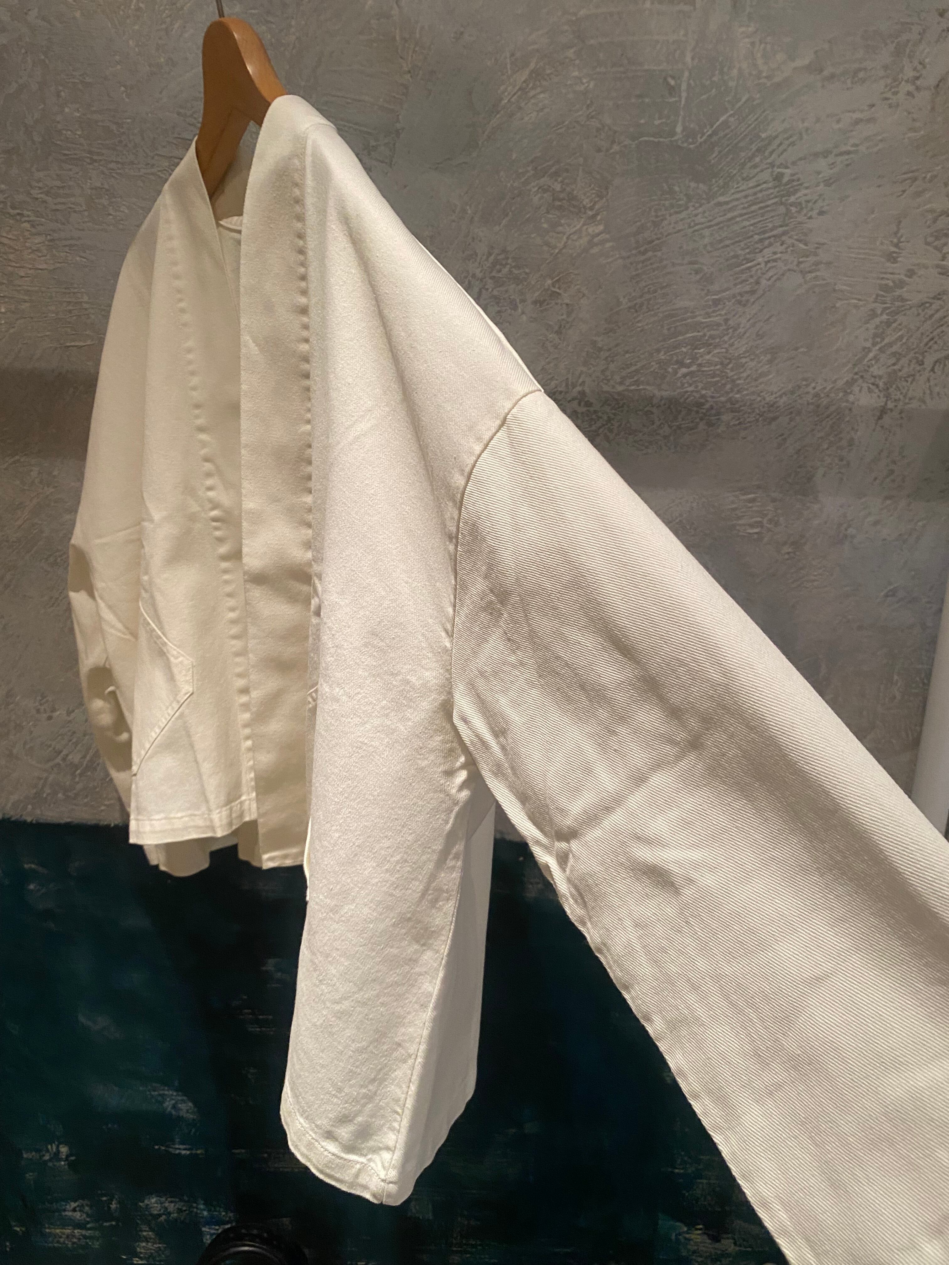 サラッと羽織るだけで雰囲気の出るシルエットのカーディガンジャケット。ポケットのデザインが特徴的。オーバーシルエットで、ノーボタン、長い期間軽めに羽織って頂けます。着心地も◎