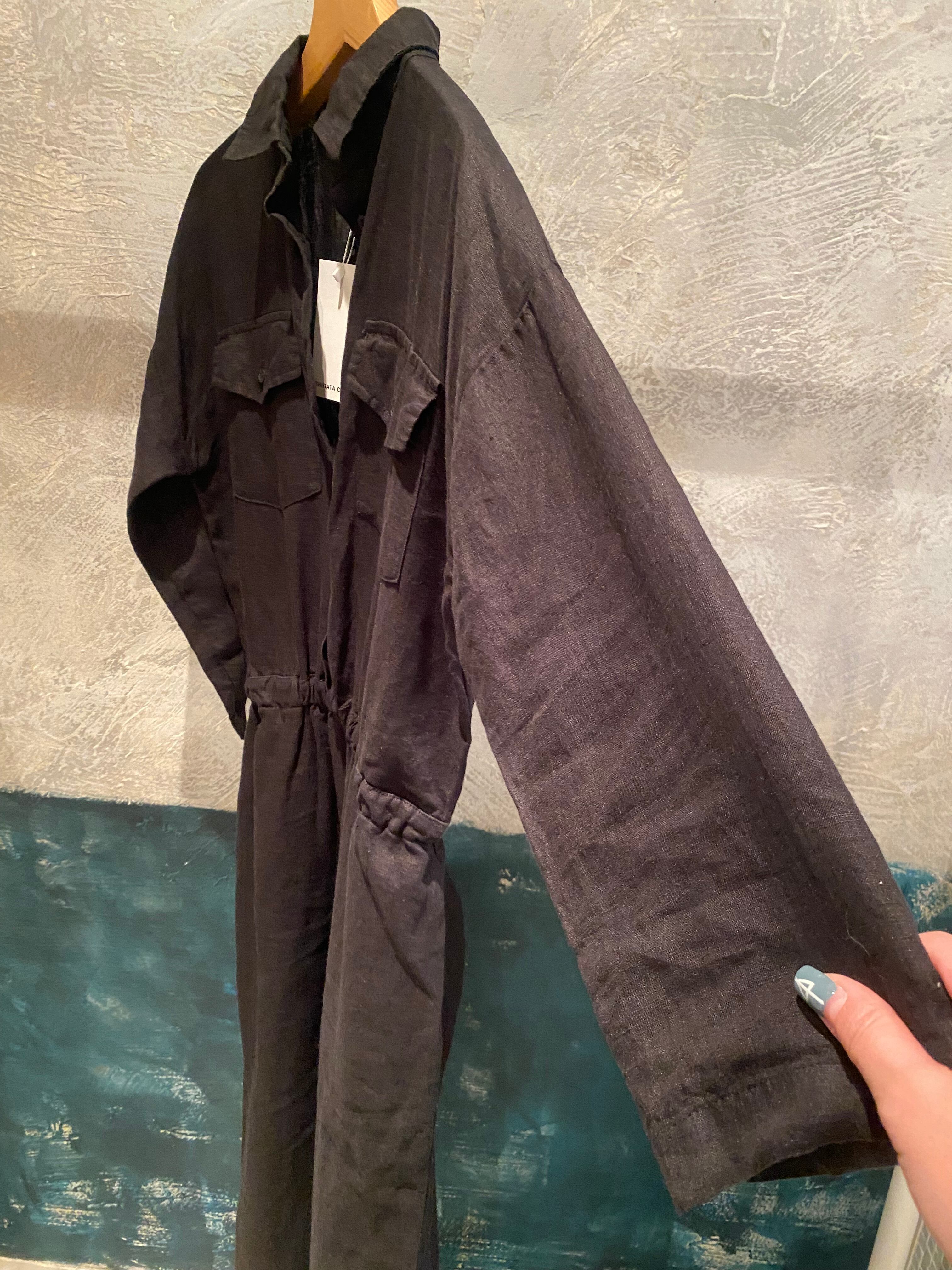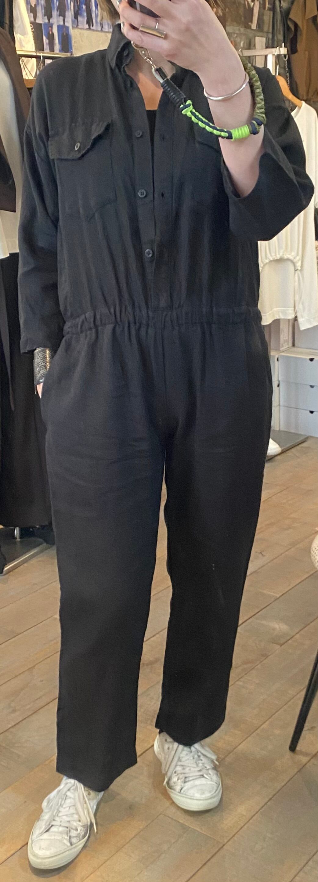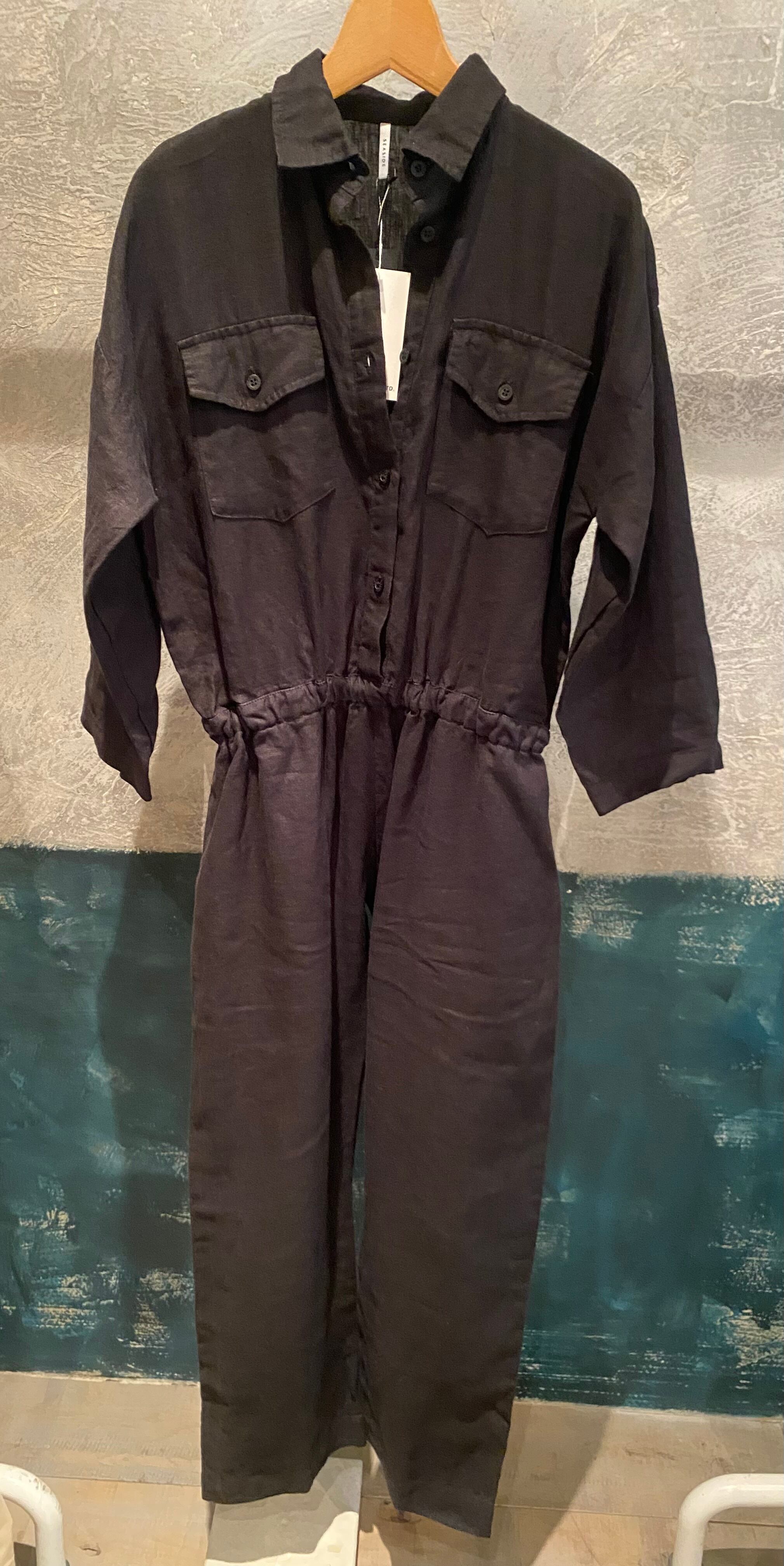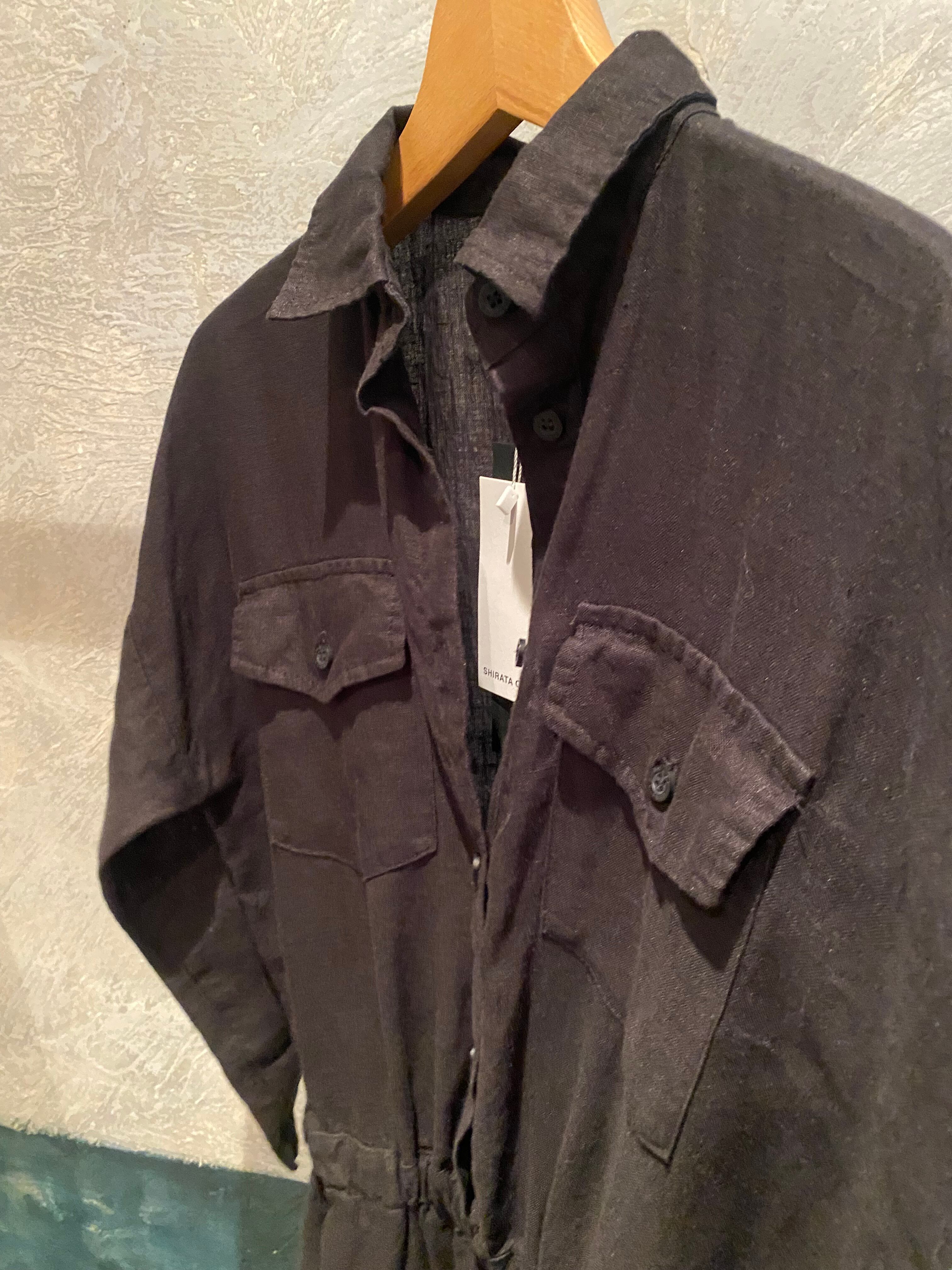 リネン素材のオールインワン。ウエスト部分はゴム仕様。1枚でスタイリングが完結する便利なオールインワン。リネン素材で夏場活躍するアイテムです♪