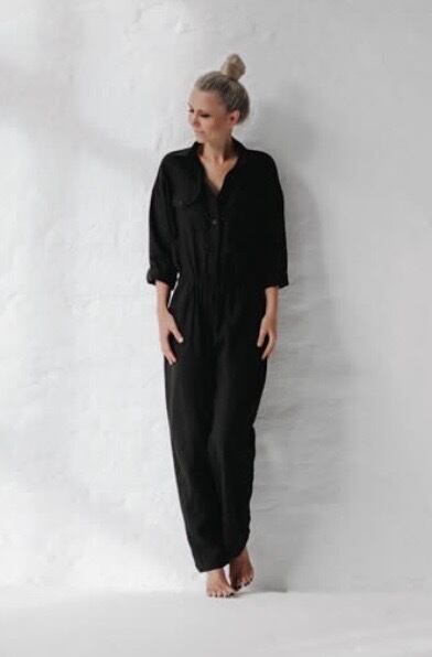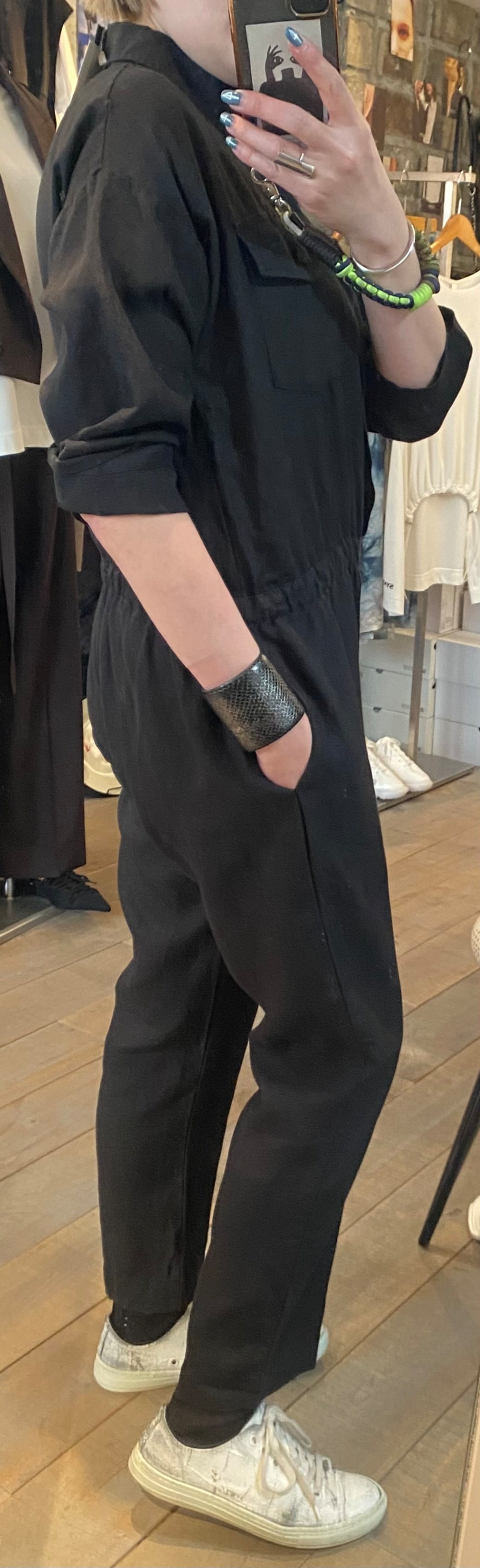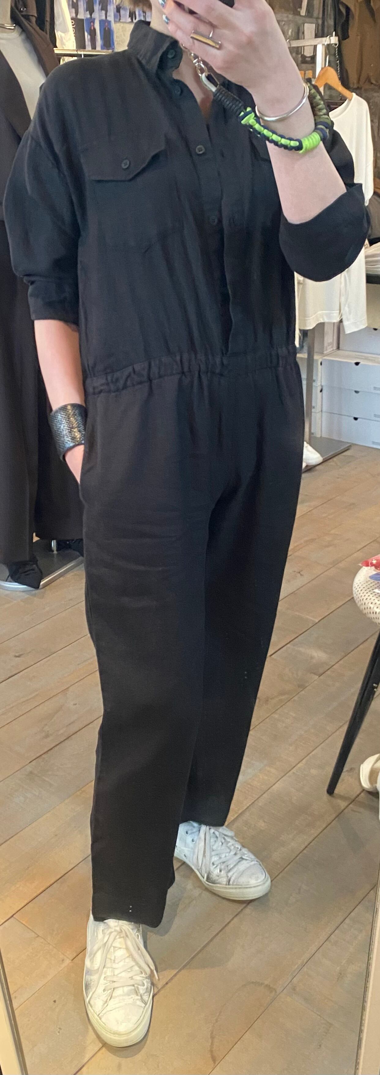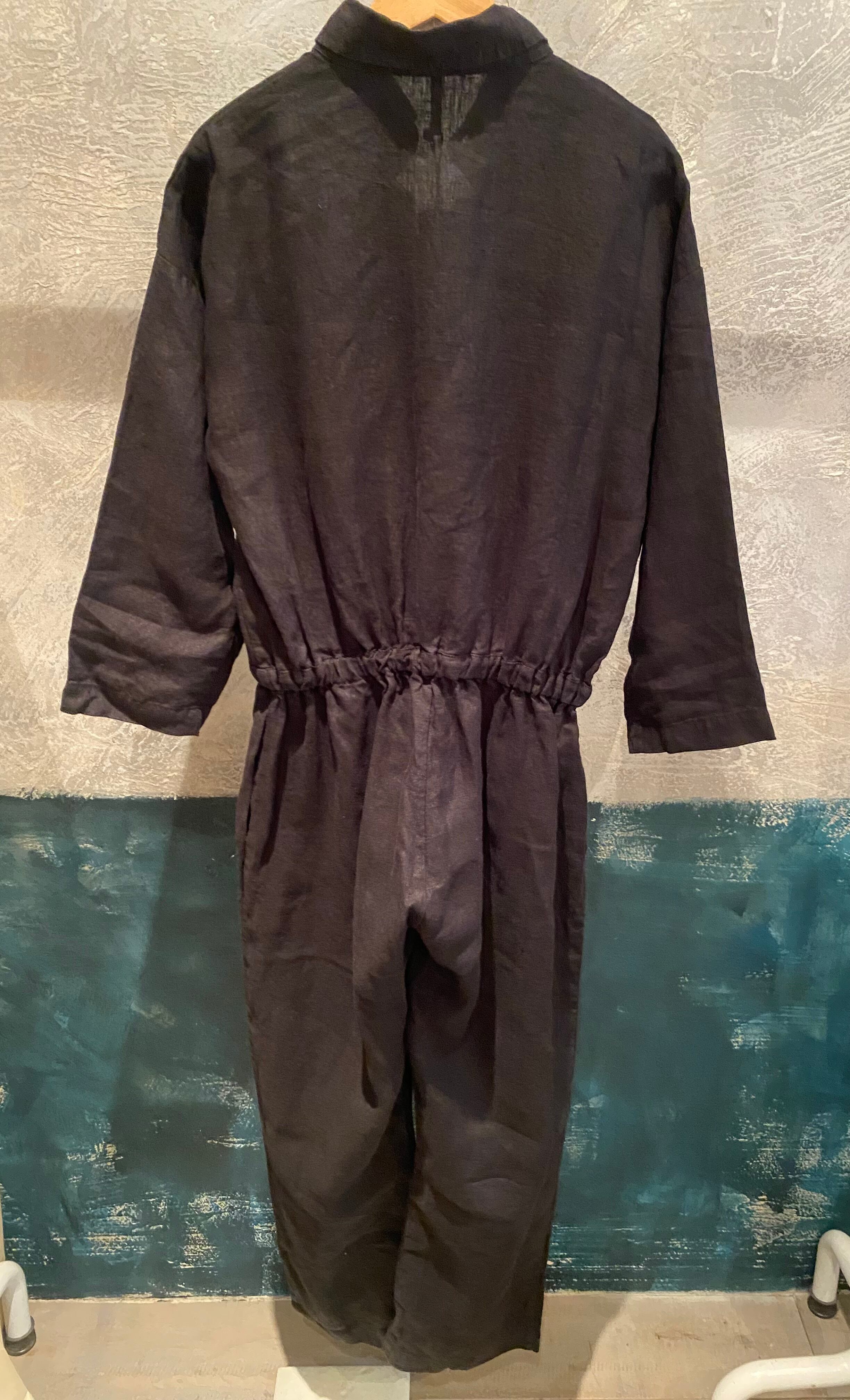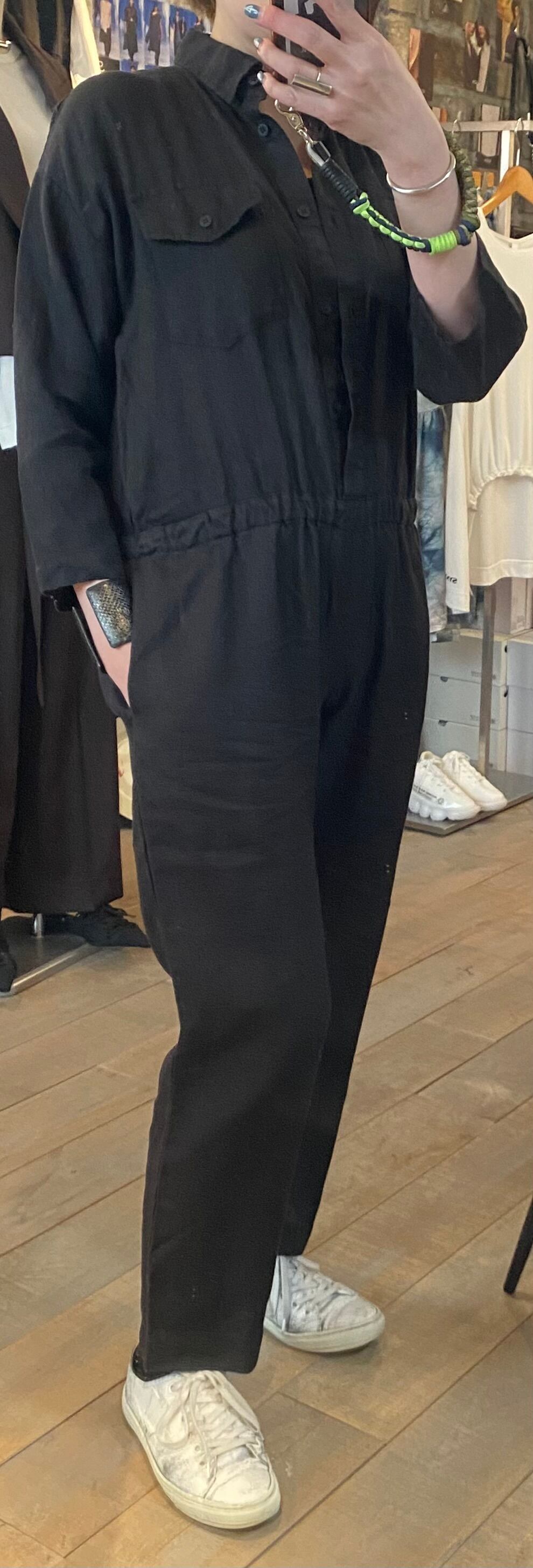 リネン素材のオールインワン。ウエスト部分はゴム仕様。1枚でスタイリングが完結する便利なオールインワン。リネン素材で夏場活躍するアイテムです♪