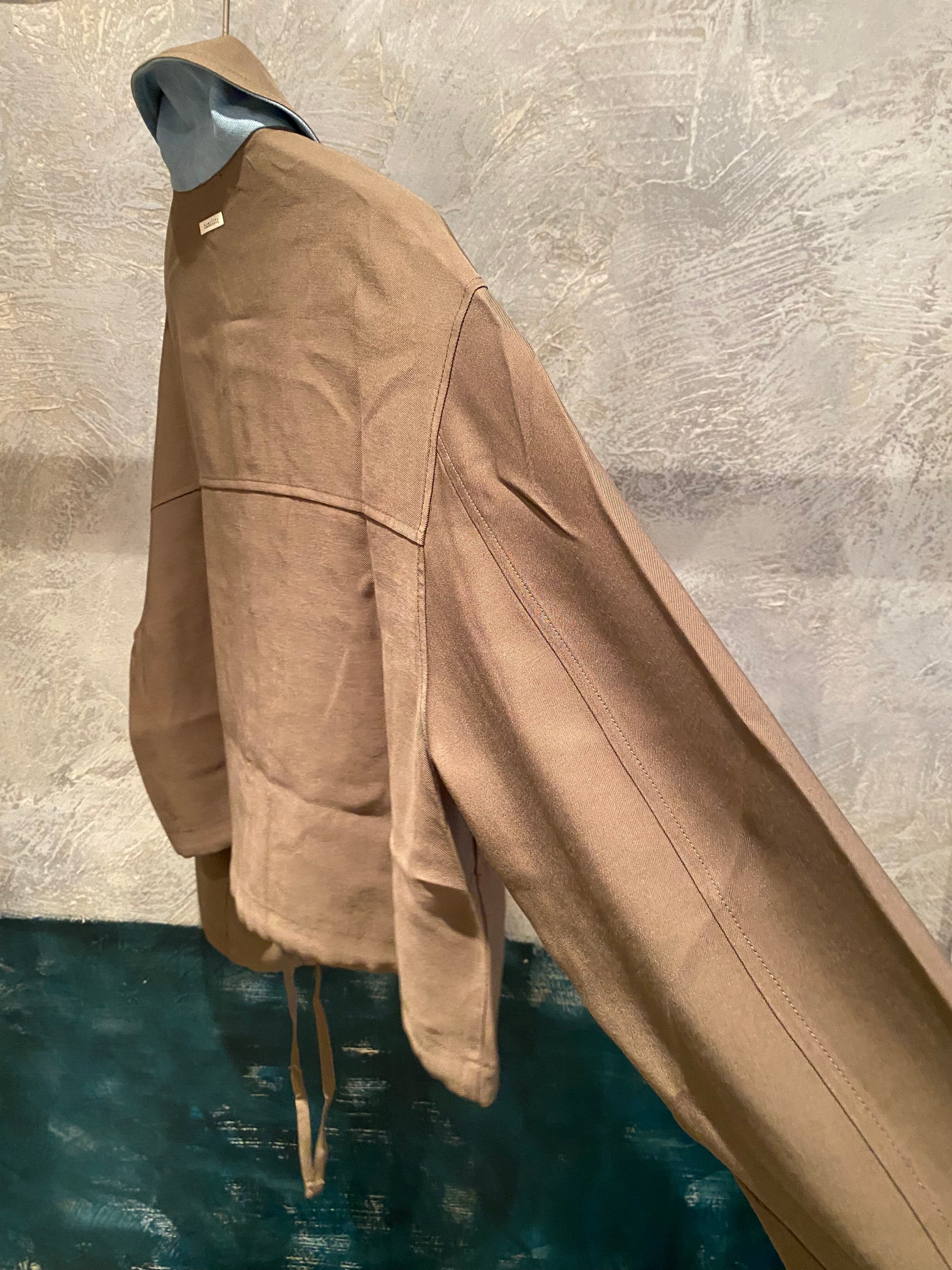 ベーシックなデザインながら程よいオーバーサイズでサラッと着るだけで雰囲気の出るジャケット。裾の紐でシルエットの変化を楽しめます。とても柔らかく軽く着心地も良くこれからの季節や季節の変わり目に便利なジャケット。襟の裏側がデニム生地でそちらもポイントに♪