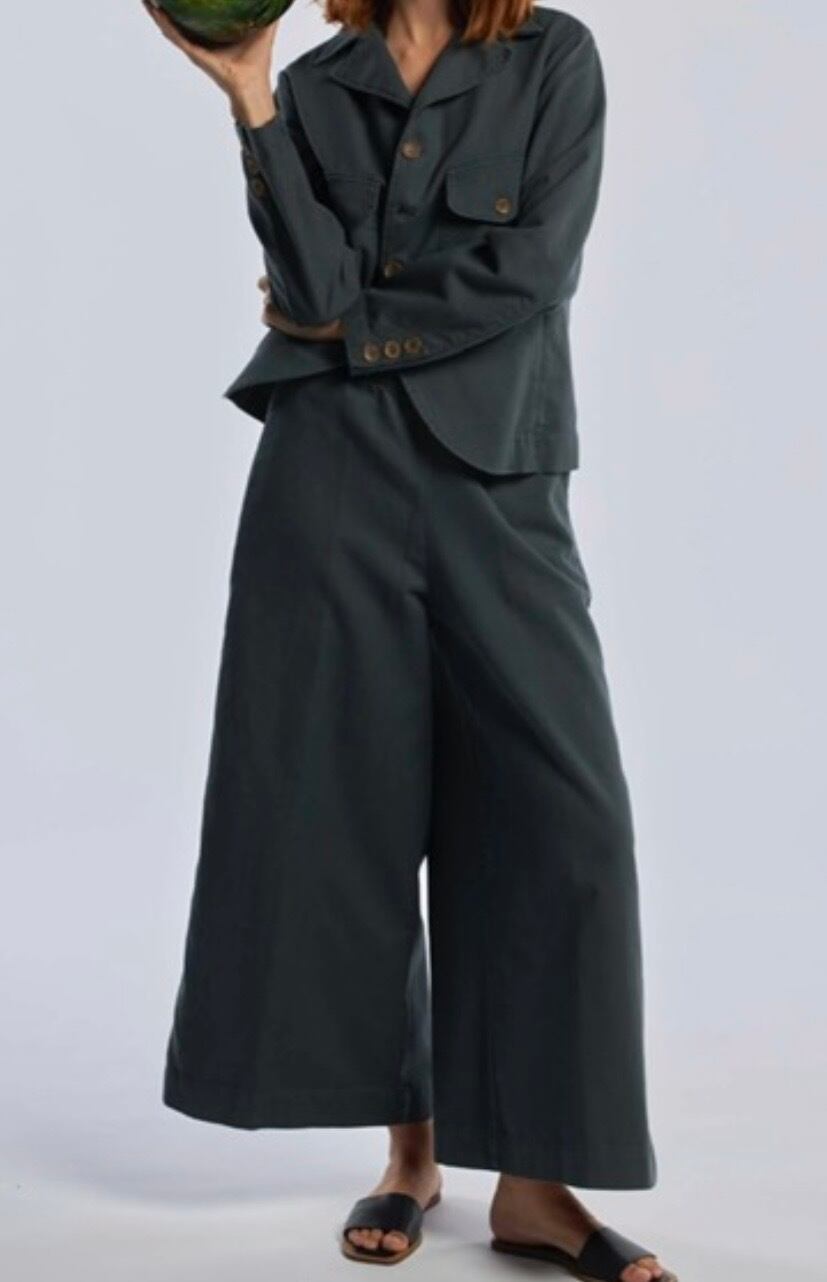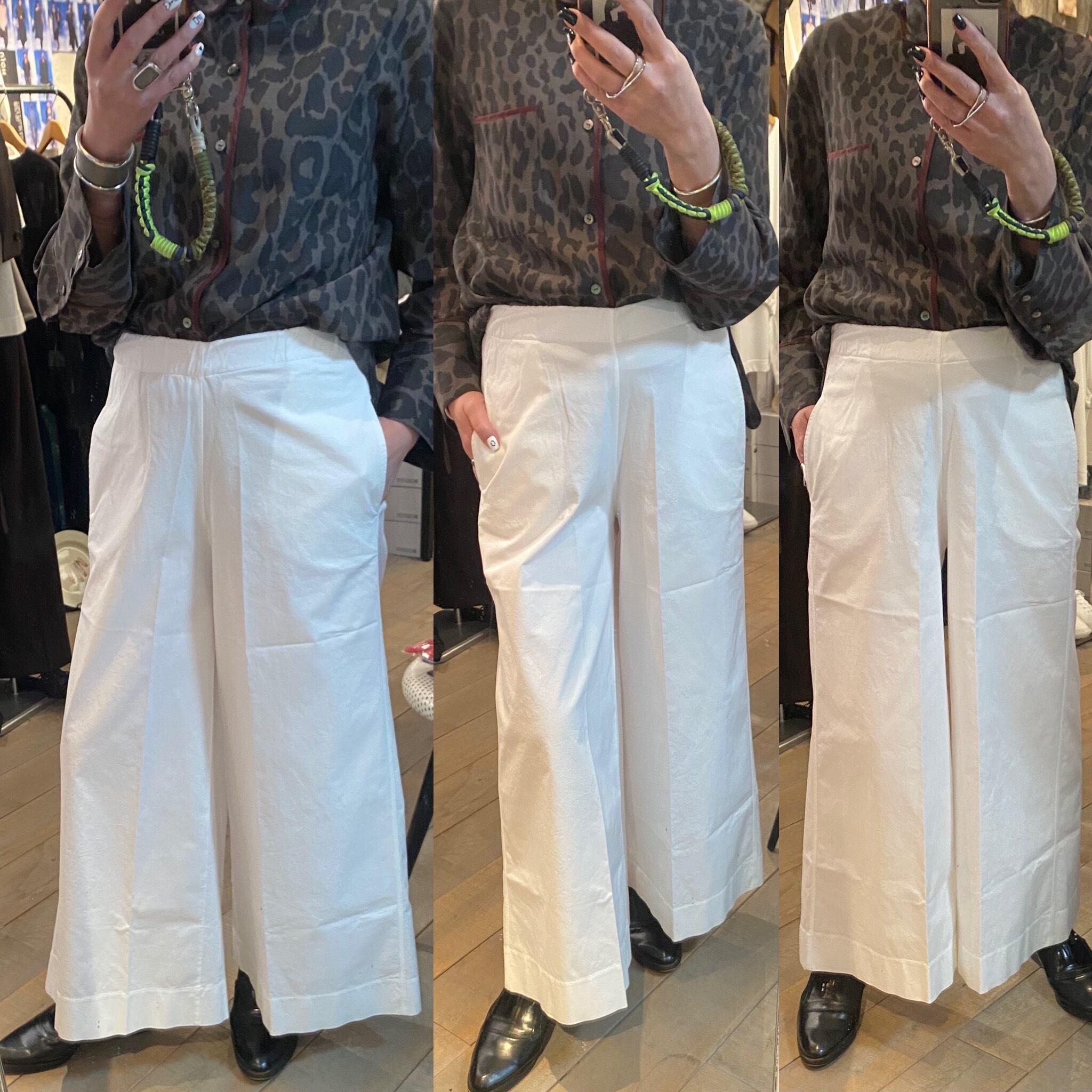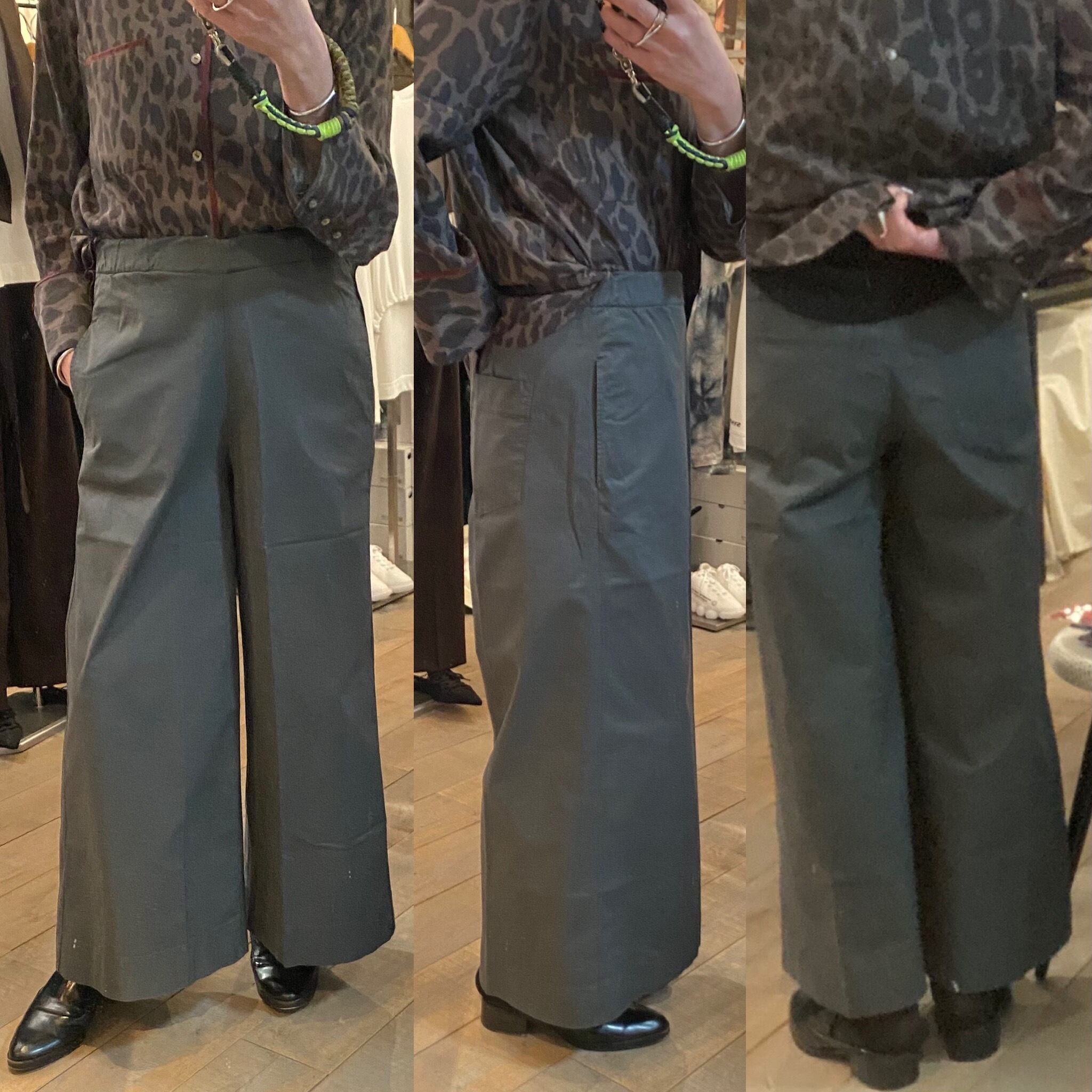 コットンツイル素材で軽くて履き心地の良いバギーパンツ。腰回りはスッキリで、裾に行くほど広がるバギーパンツは脚長効果◎ウエストは総ゴムでストレッチも効いている楽チンパンツ。これからの季節のヘビロテパンツです。摩擦に強く耐久性も良くシワになりにくく日常使いに適してるのが特徴的な素材。適度なハリと光沢感があり、カジュアルながらキレイめな印象を与えてくれます。