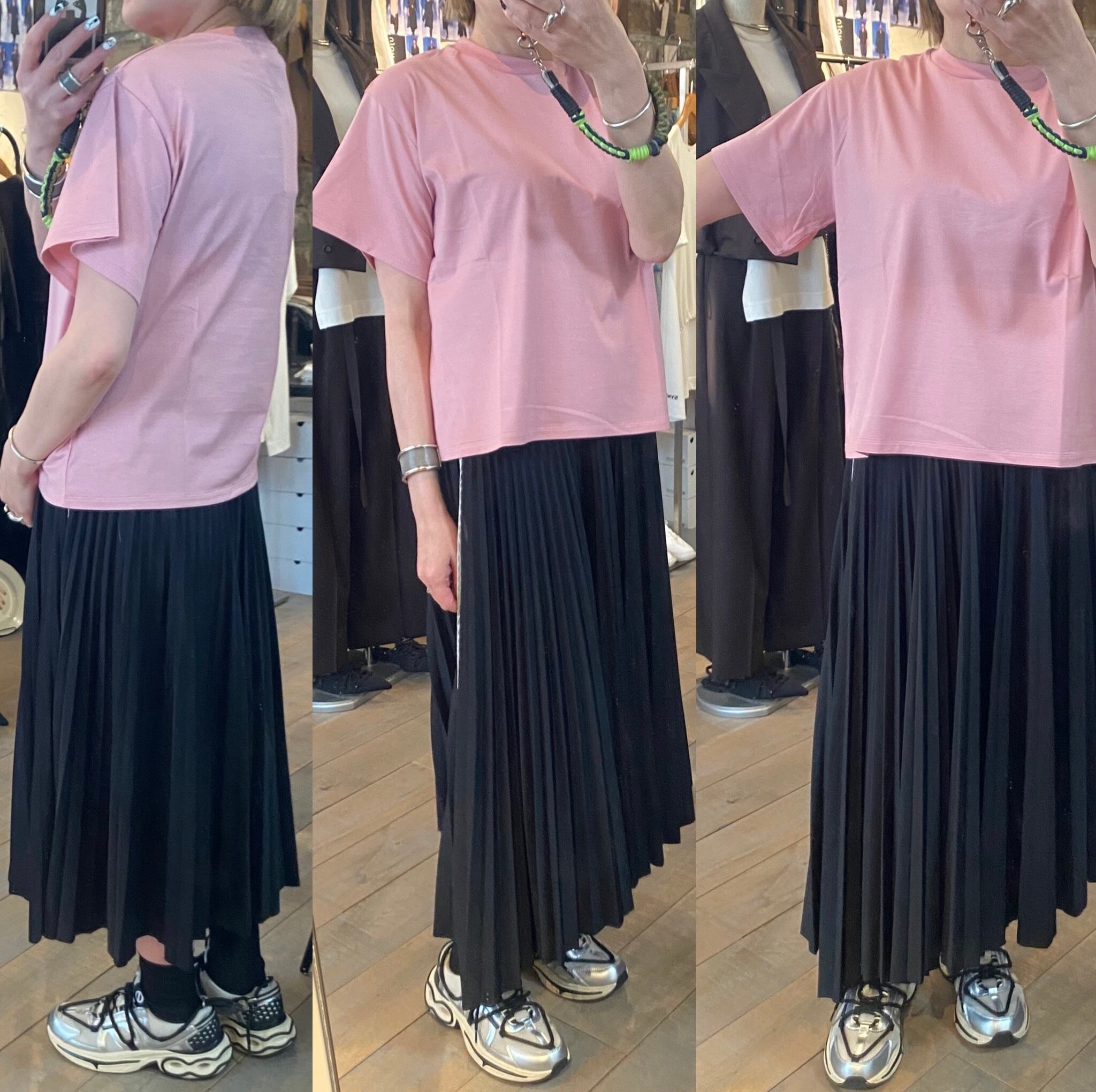 袖は控えめなフレアシルエットで、カジュアルな中にも上品さをプラス。ボックスシルエットで、身体のラインを拾わずどなたでも取り入れやすい着回しのきくカットソー。希少価値の高いスペインピマコットン100%を使用。超長綿ならではのシルキーな光沢と滑らかな肌触りです。細番手の糸を高密度に編み上げることで上品な光沢を表現した素材です。
