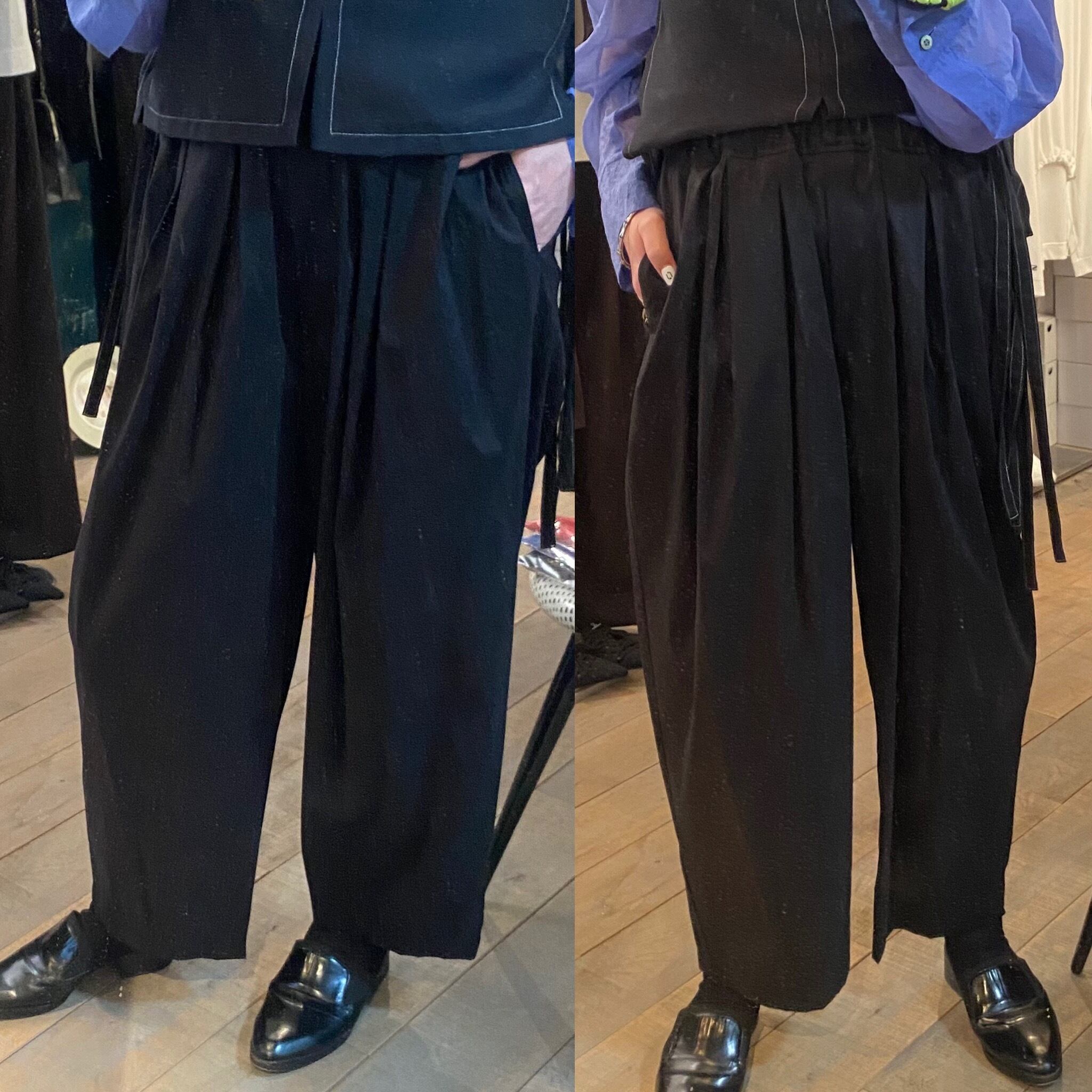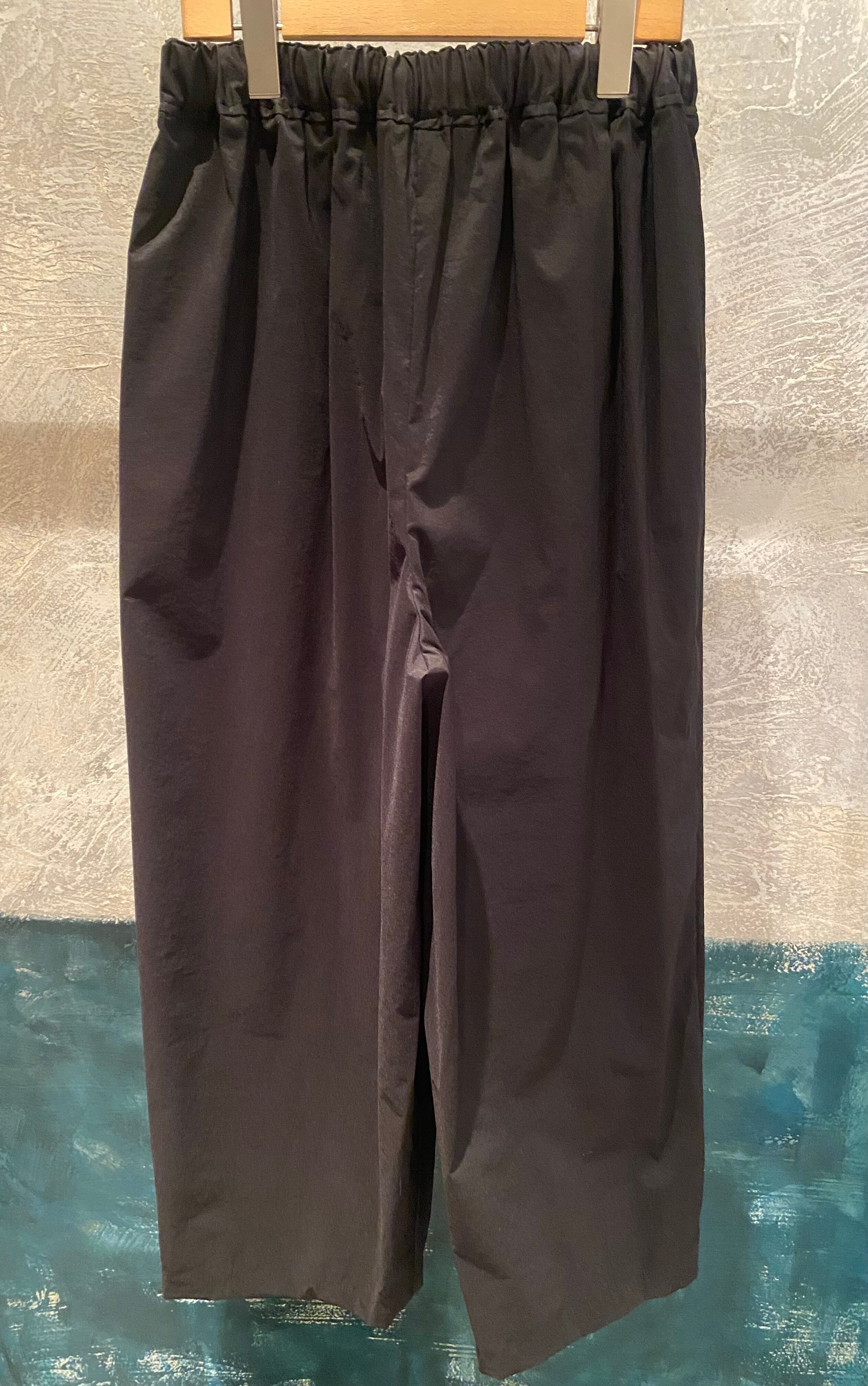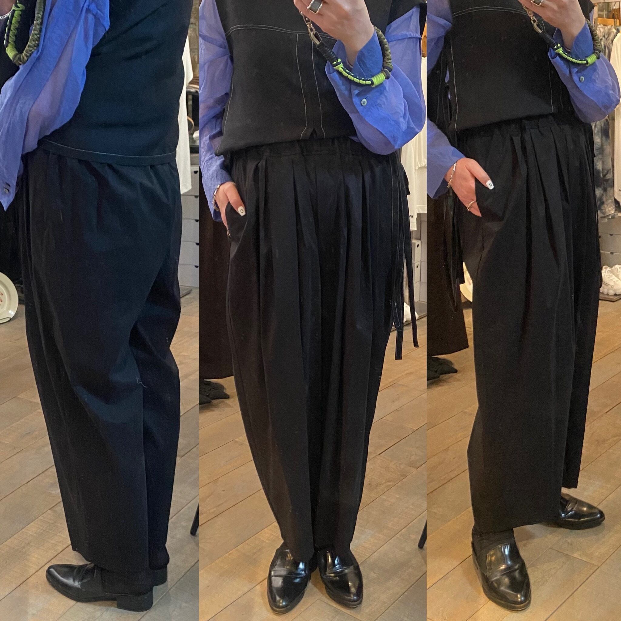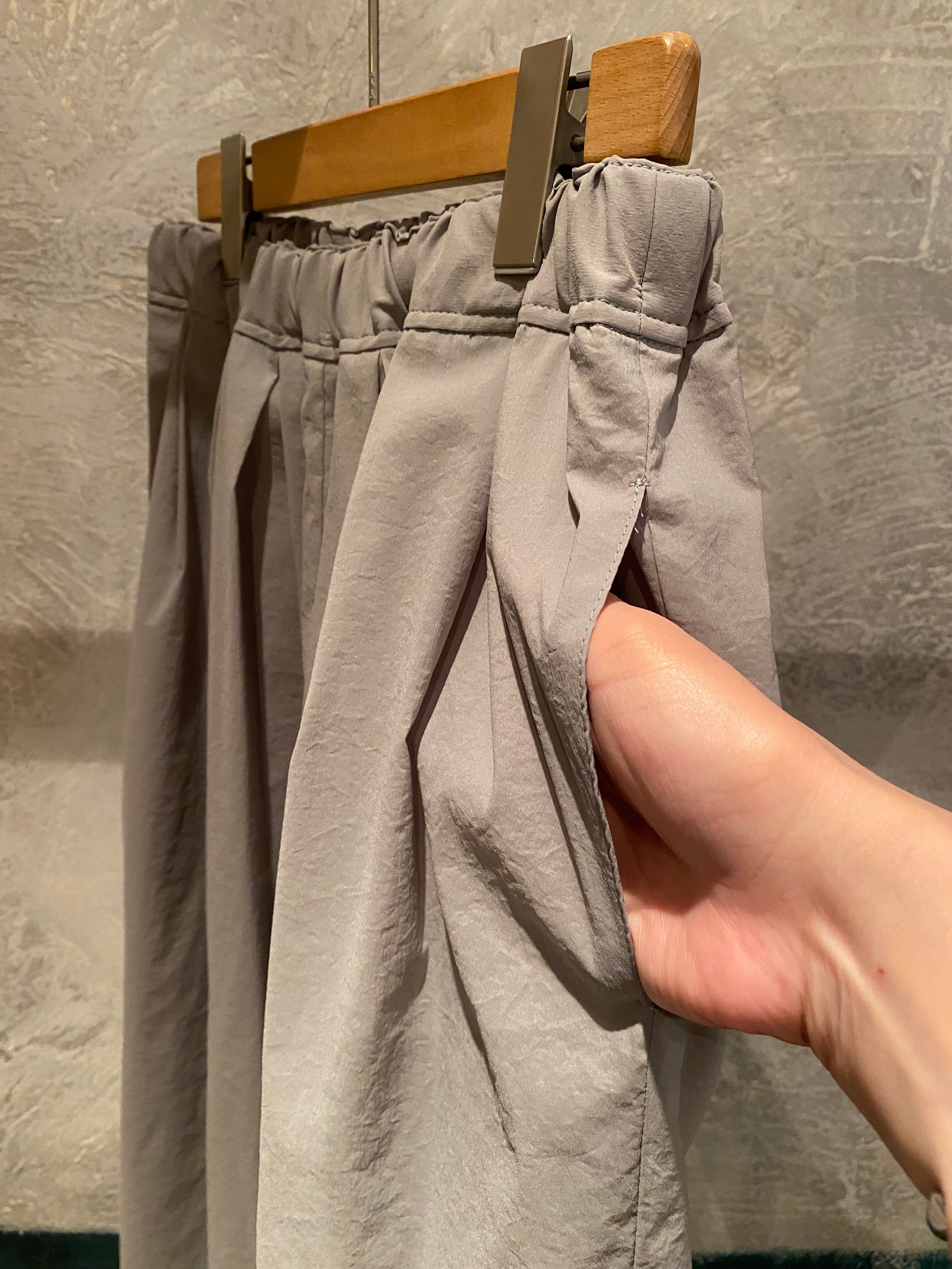 トレンド感のあるペーパーライクナイロン素材のタックギャザーパンツ。ボリュームのあるコクーンシルエットが特徴的で、とても軽く軽快な印象。カジュアルにもモードにも振れるデザインで、着回し力抜群アイテム。幅広い体型に対応できるフリーサイズです。