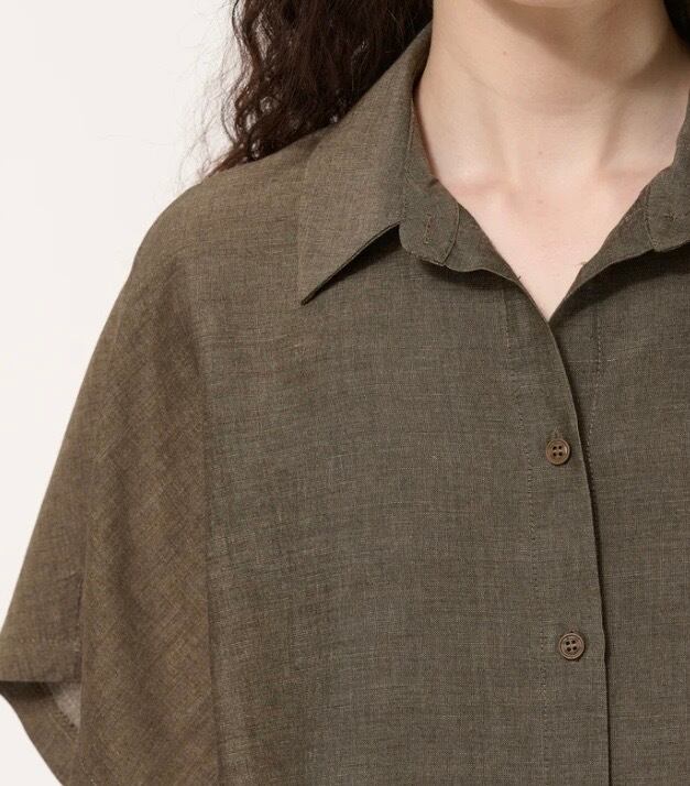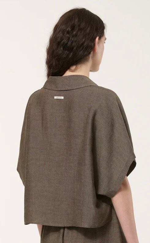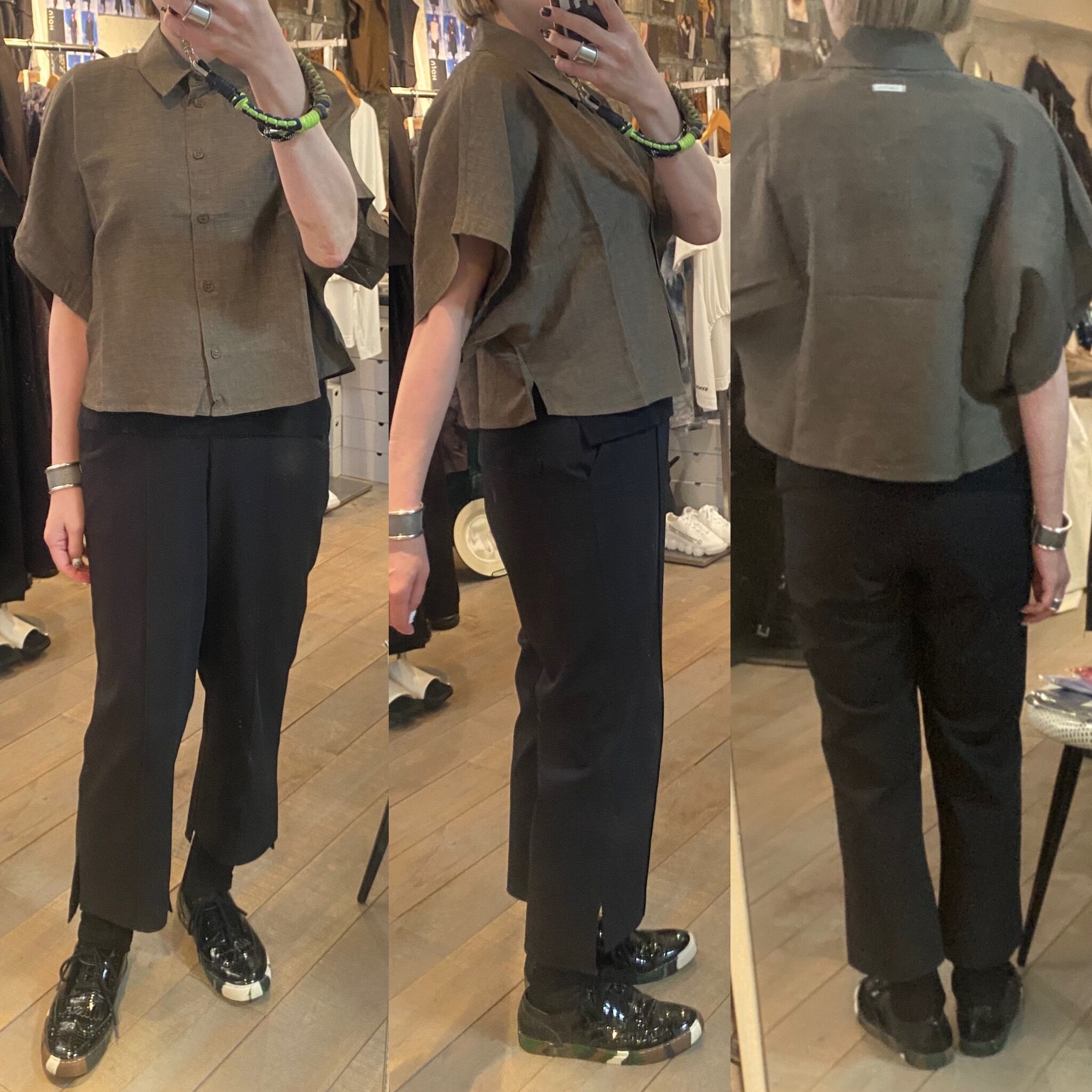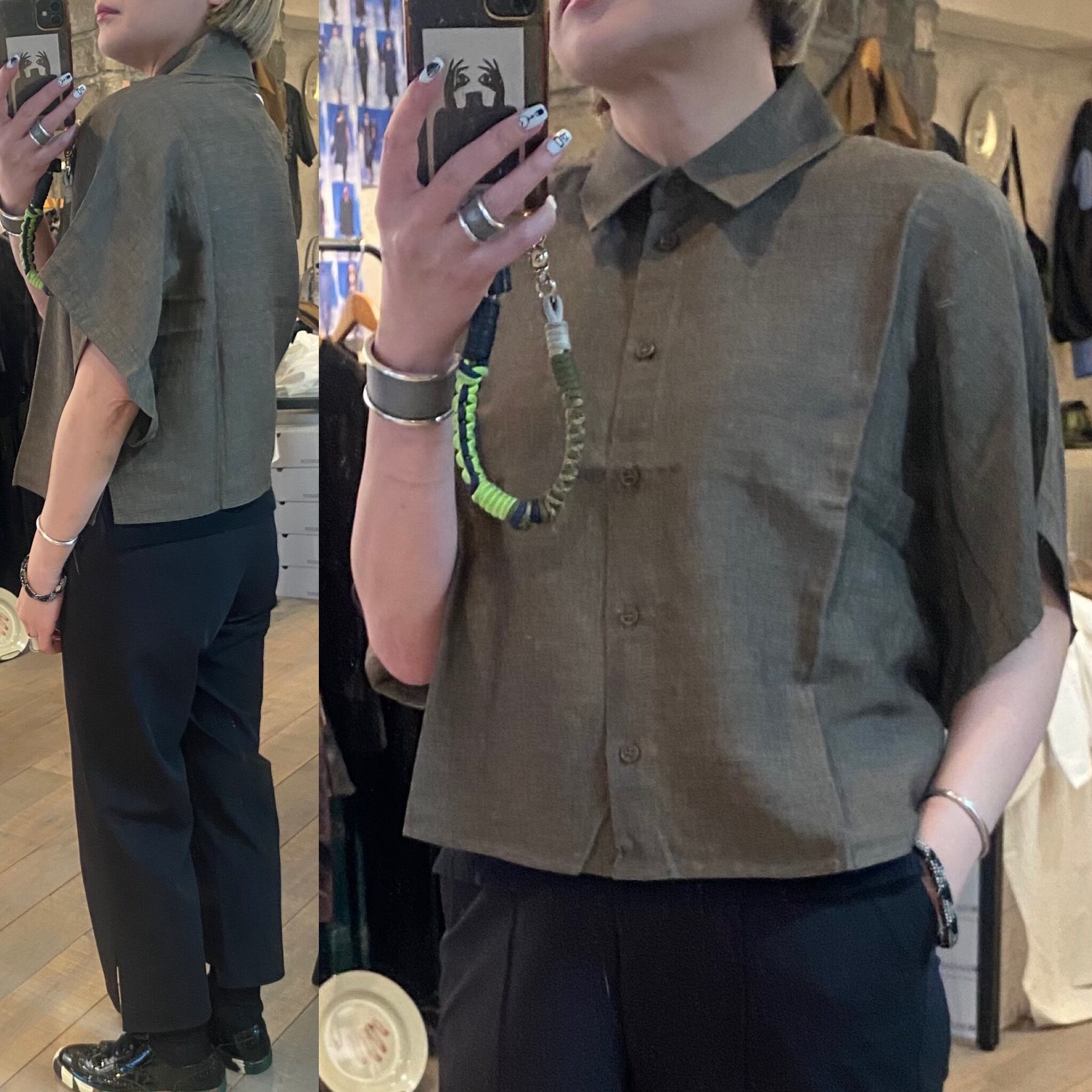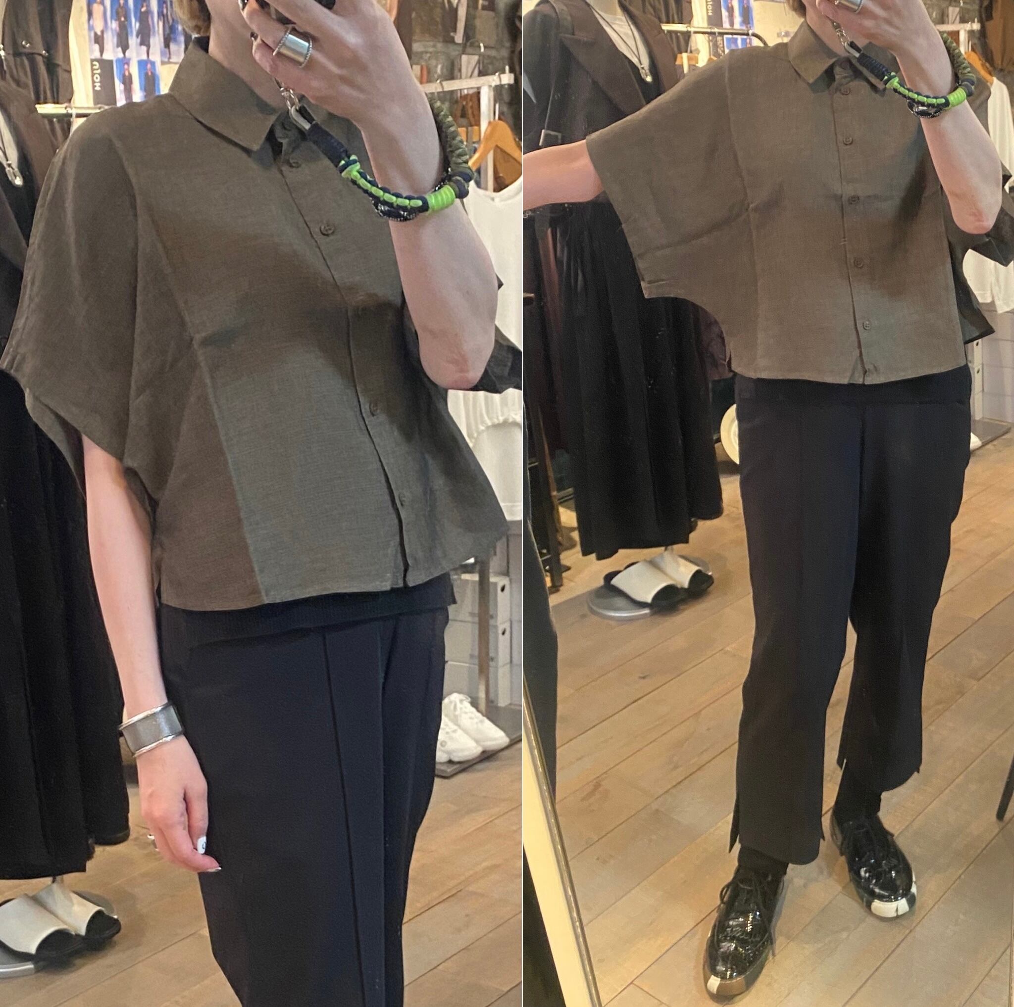 サラッと着て雰囲気の出るオーバーシルエットのブラウス。クロップド丈で合わせるボトムも選ばす、単品でもセットアップでも素敵です♪薄手でサラッとした素材感で真夏のヘビロテアイテムです。