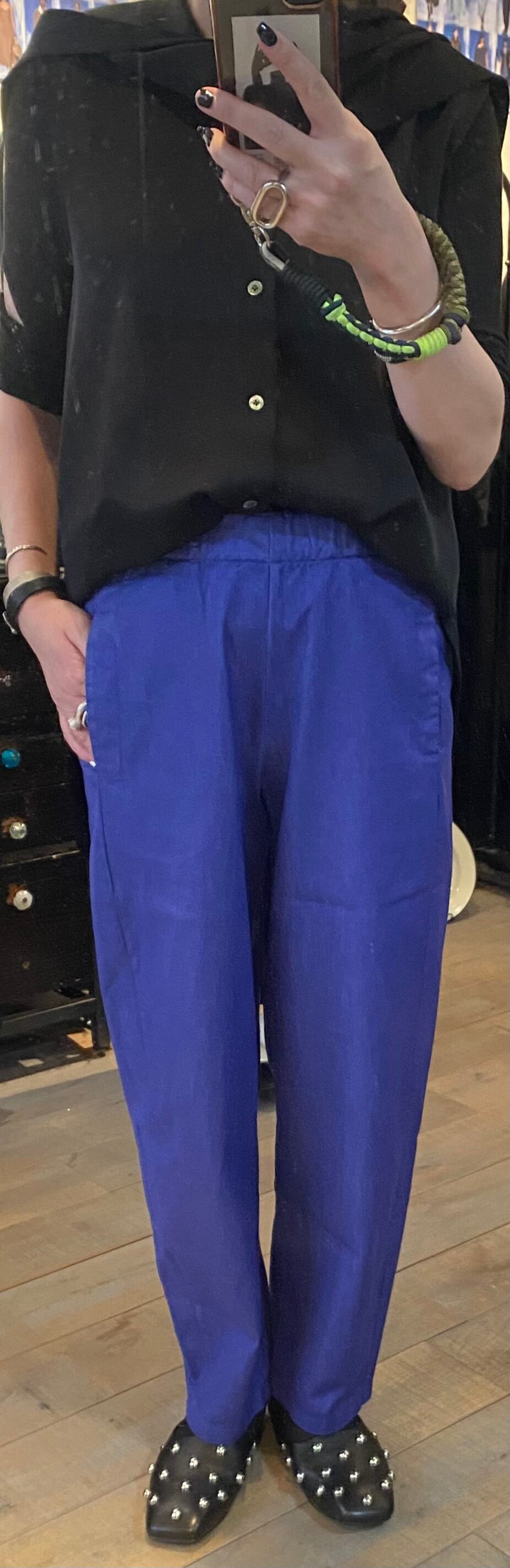 カーブシルエットで、スッキリとした印象のパンツ。伸縮性もあり、軽く履き心地も抜群です。合わせるものも選ばず、オールシーズン活躍するパンツです♪