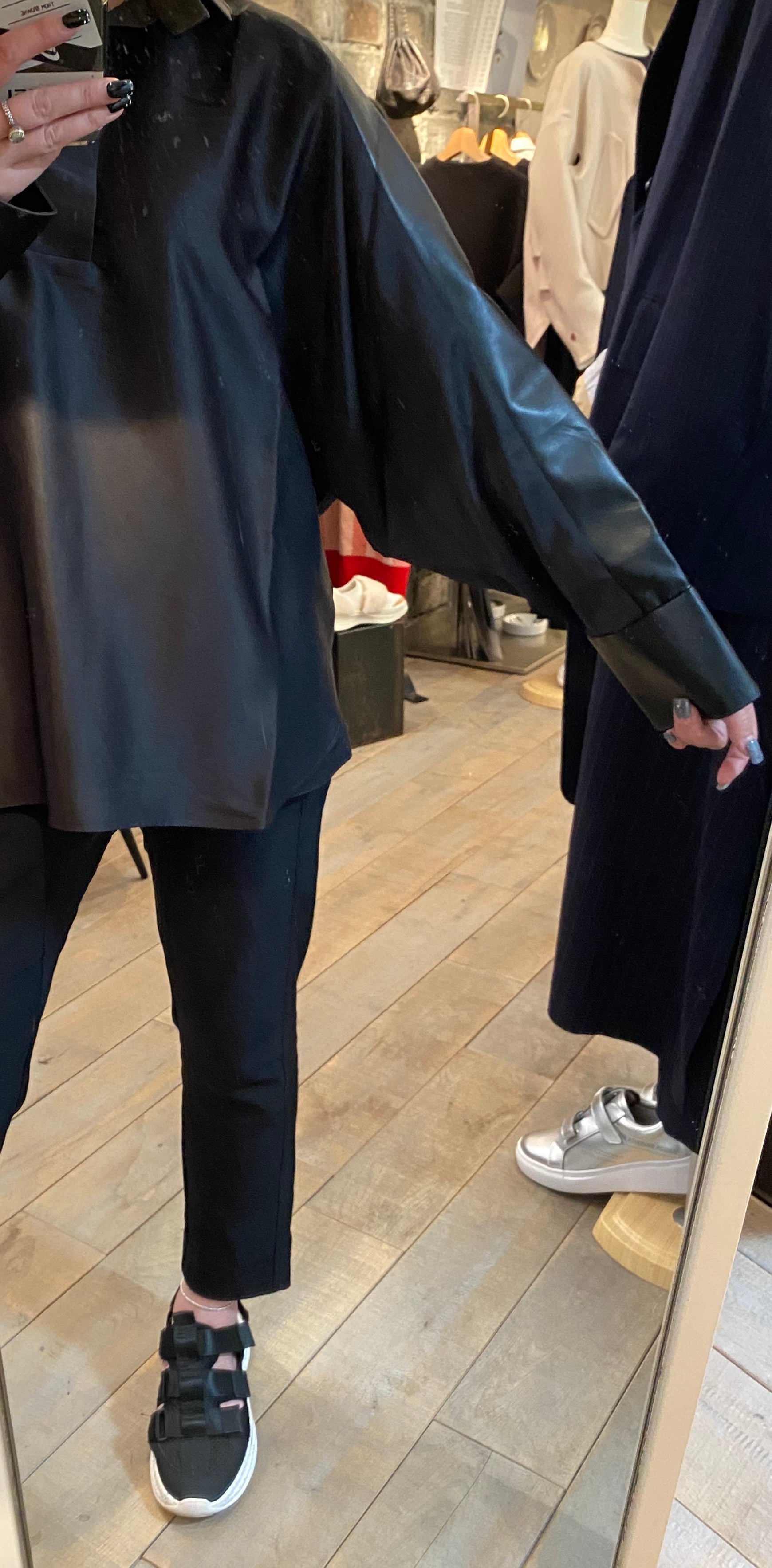 異素材の組み合わせがポイントのトップス。さらっと着用して頂くだけでスタイリッシュな1枚❗️