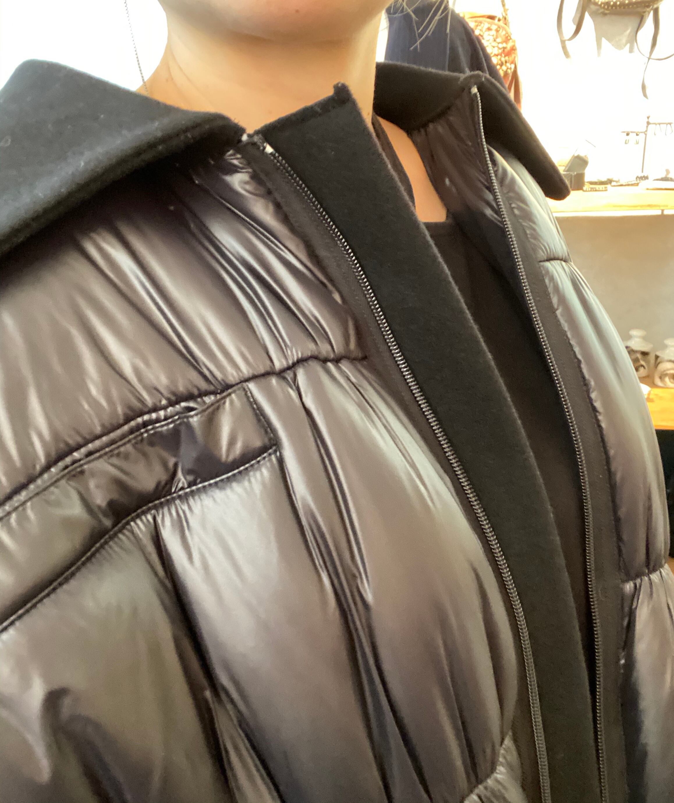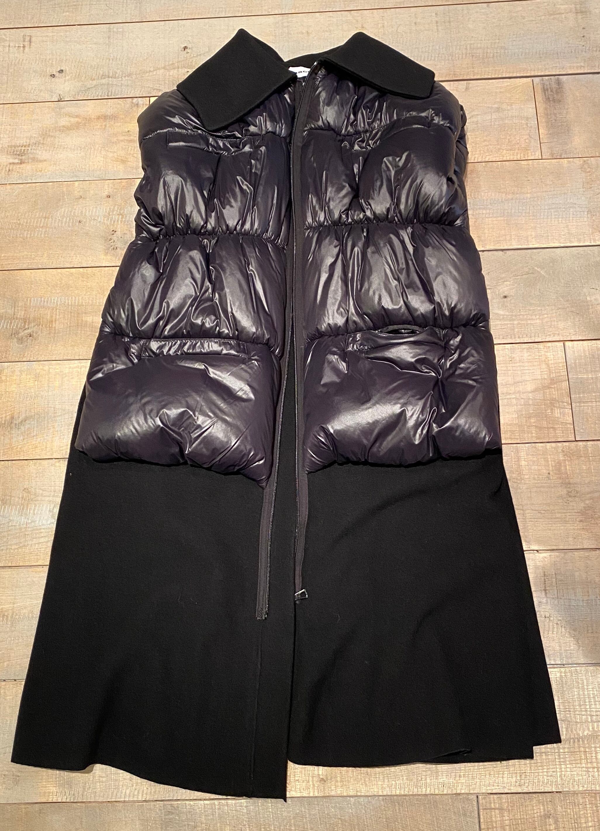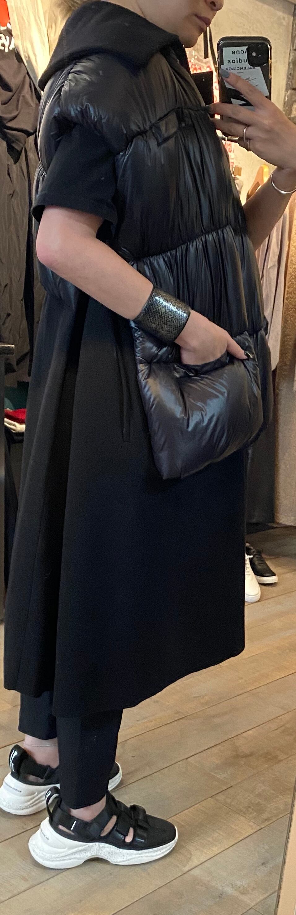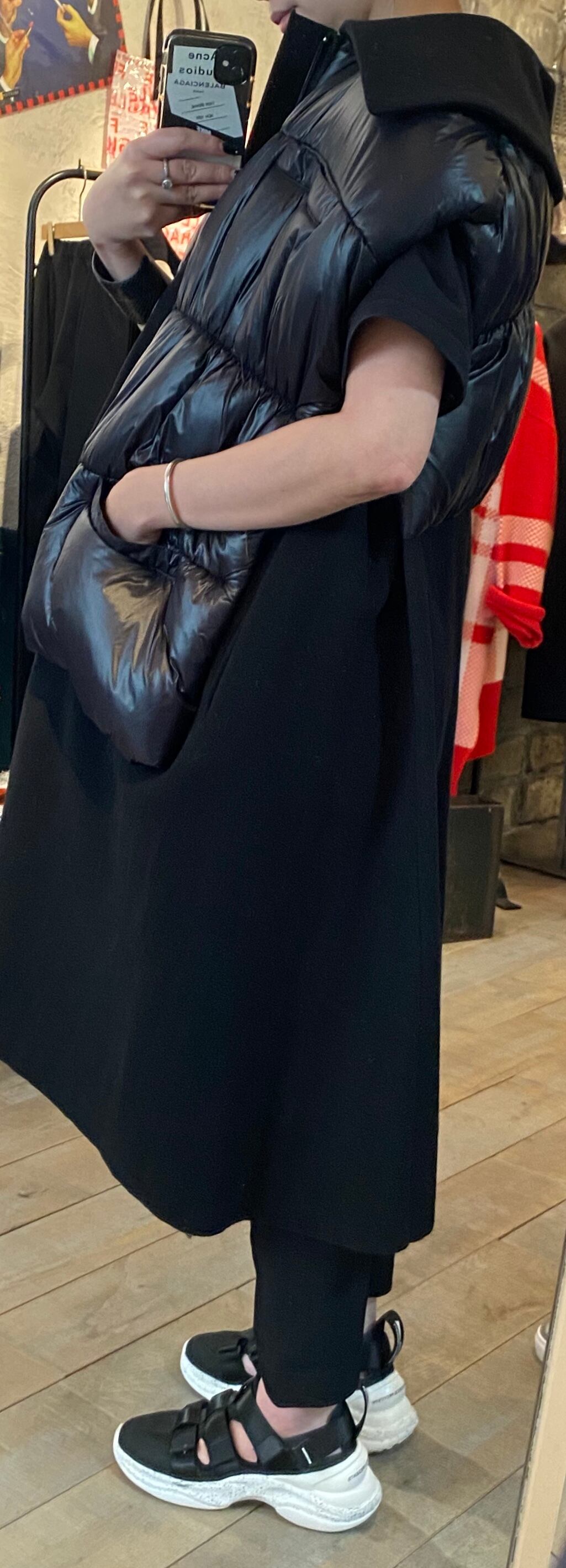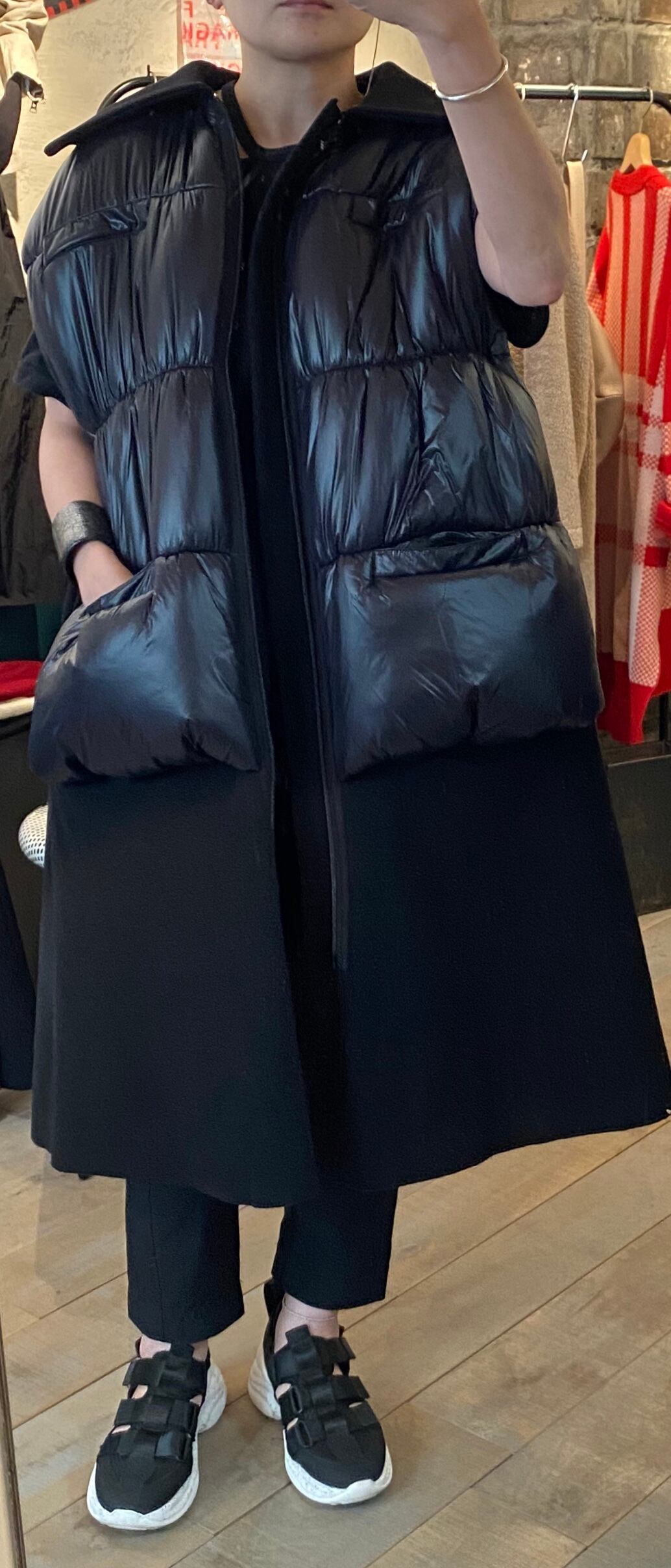上半身に中綿が入っており、異素材の組み合わせがポイントの中綿ベストコート‼︎
