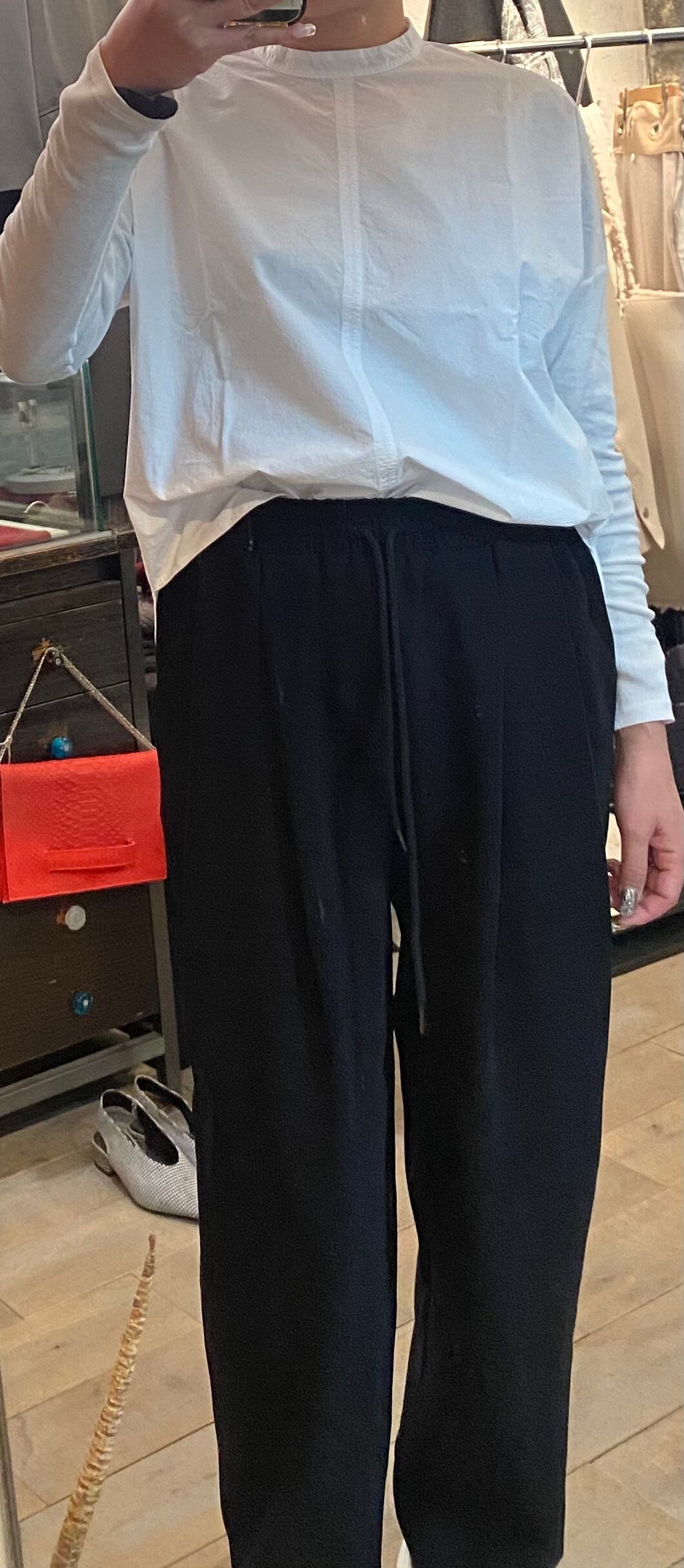 ウエストは紐で調節可能。イージーケアではき心地も抜群。オールシーズン着まわせます❗️