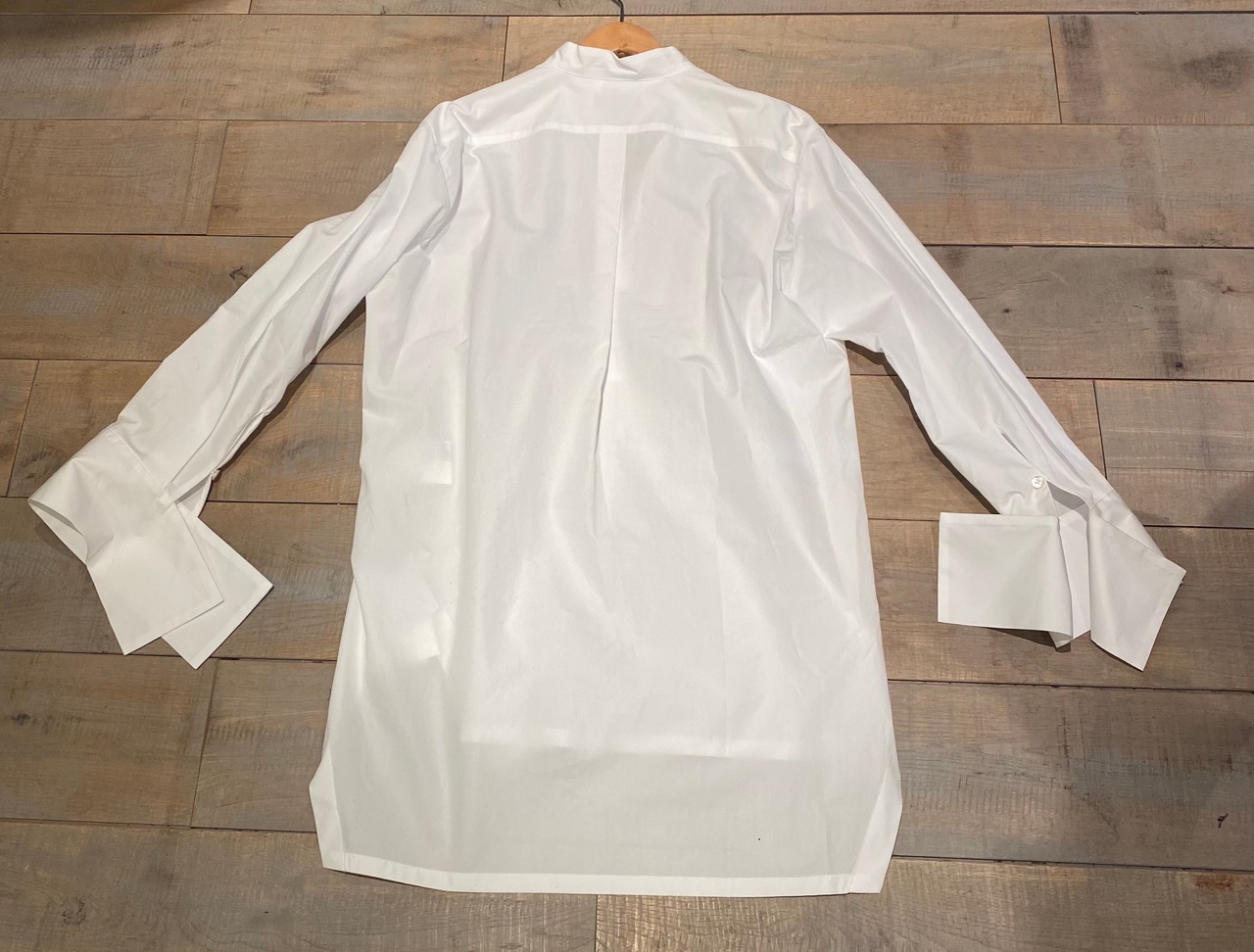 お袖口、胸元の飾りがポイントのスッキリしたシルエットのシャツ
