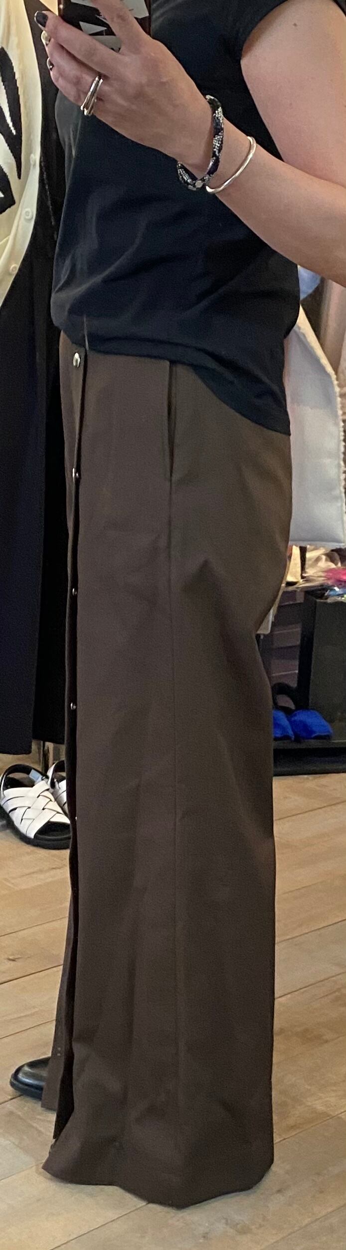オチ感があるワイドシルエット。片側のスナップボタンがポイント!!