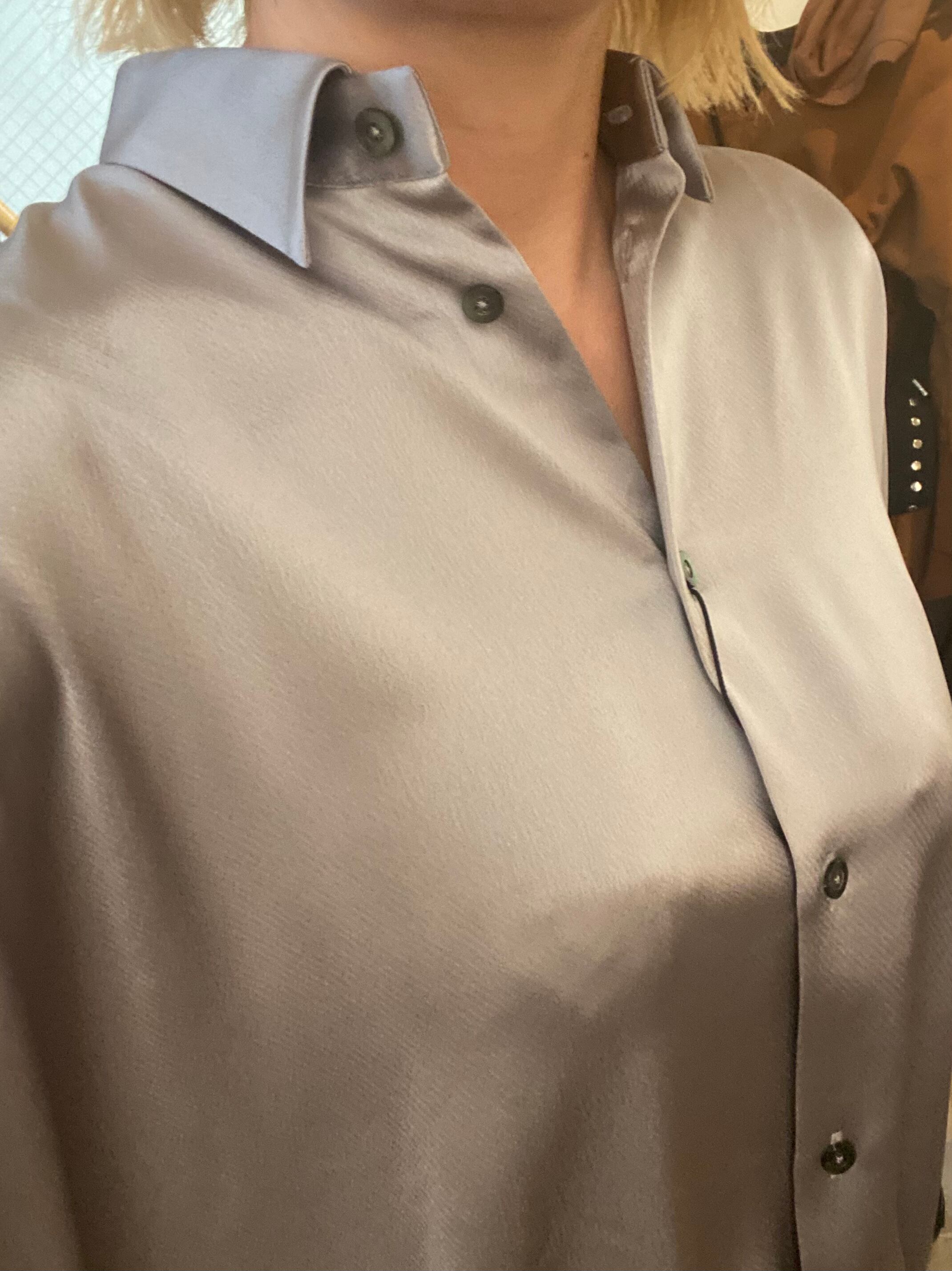 上品な艶感のブラウス。オーバーサイズでサラッと着て頂けます⭐️