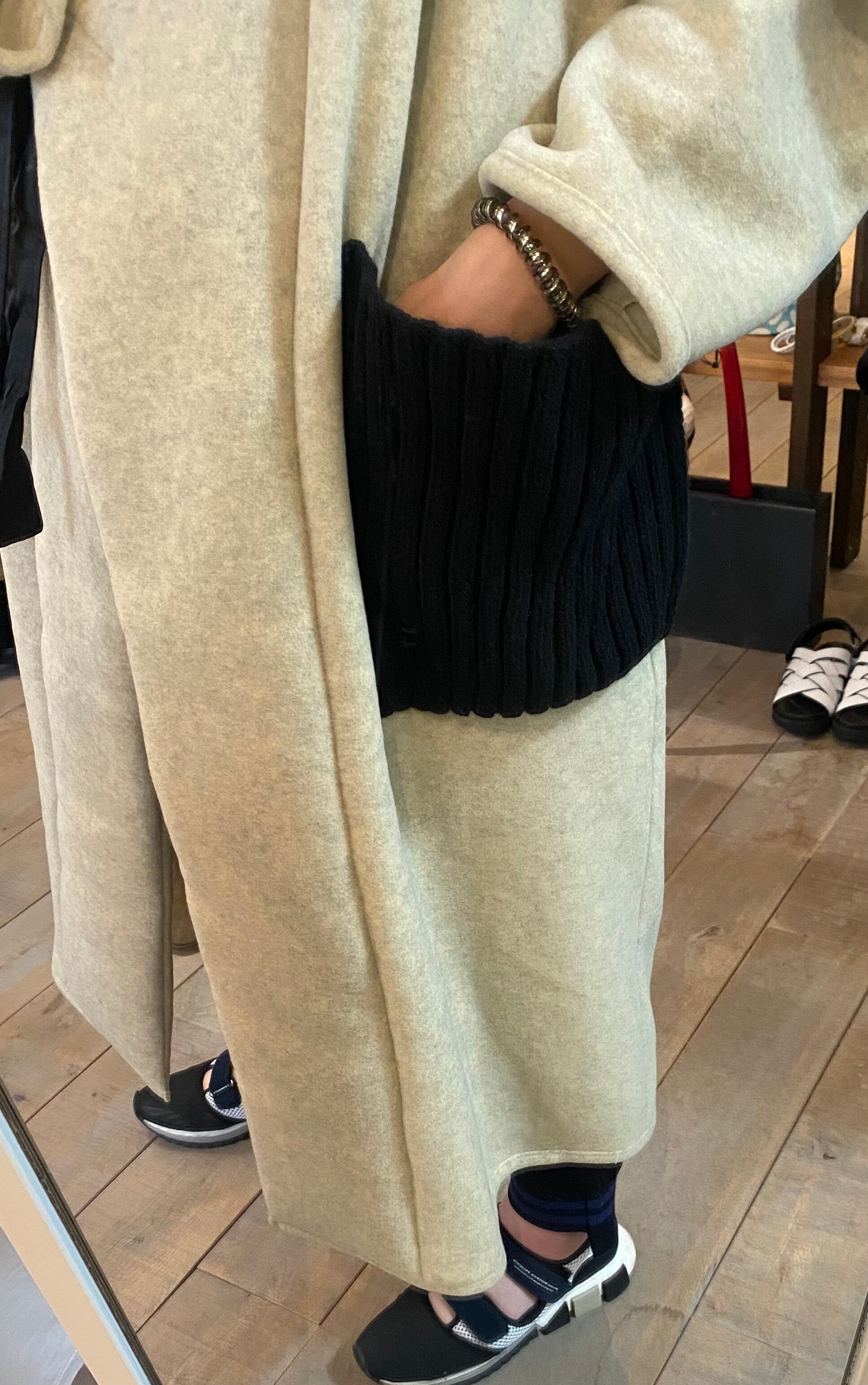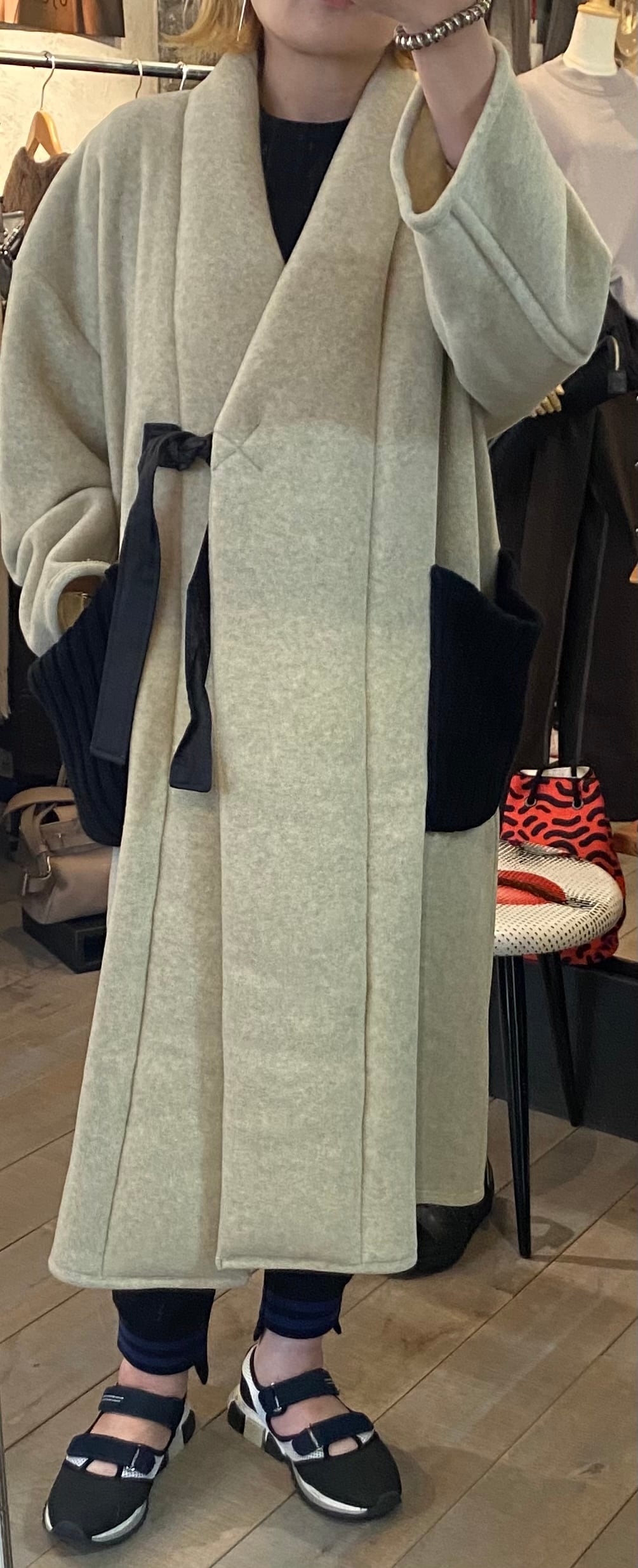 ニット素材のポケット、フロントの閉めるところの紐がポイントに⭐️