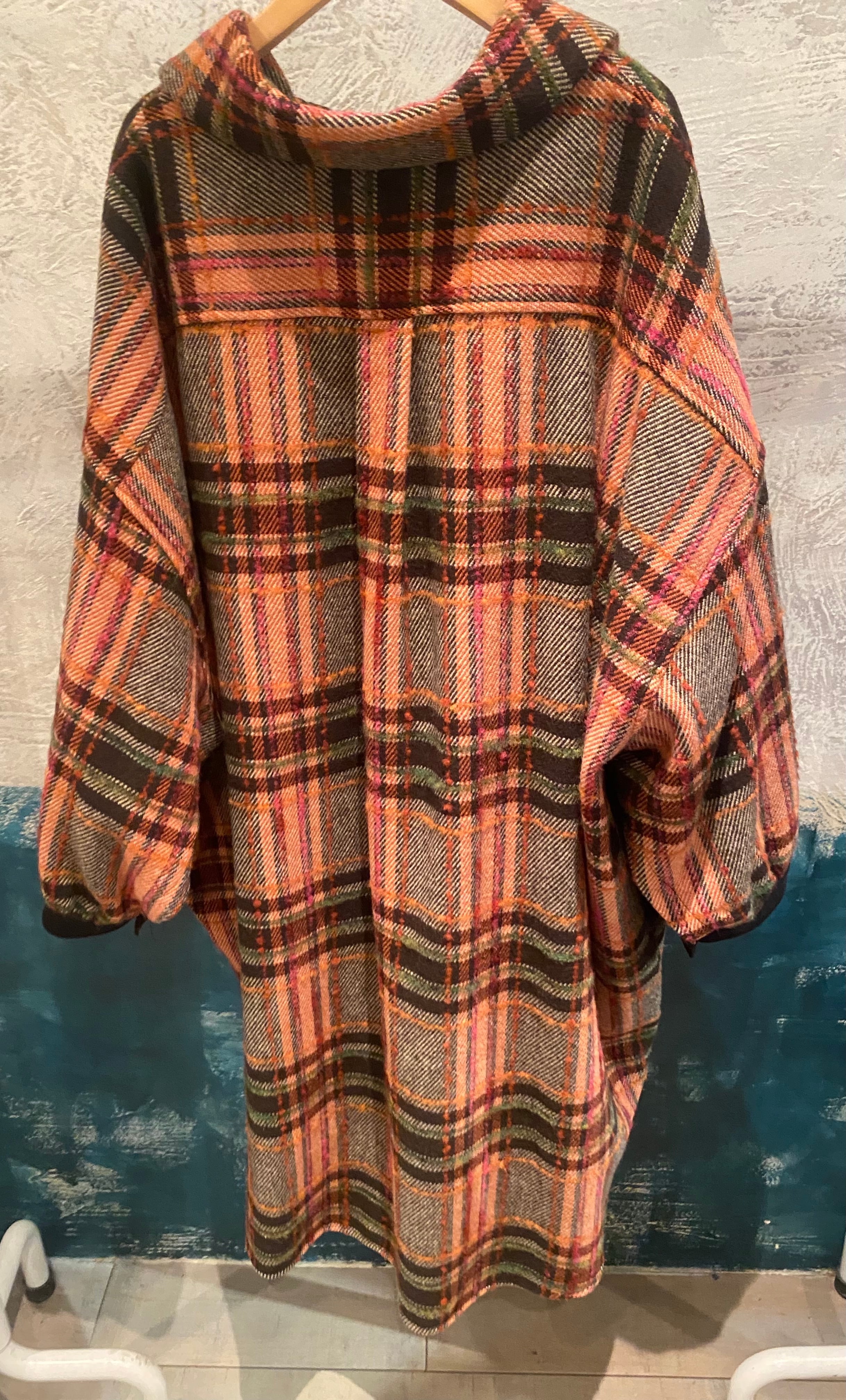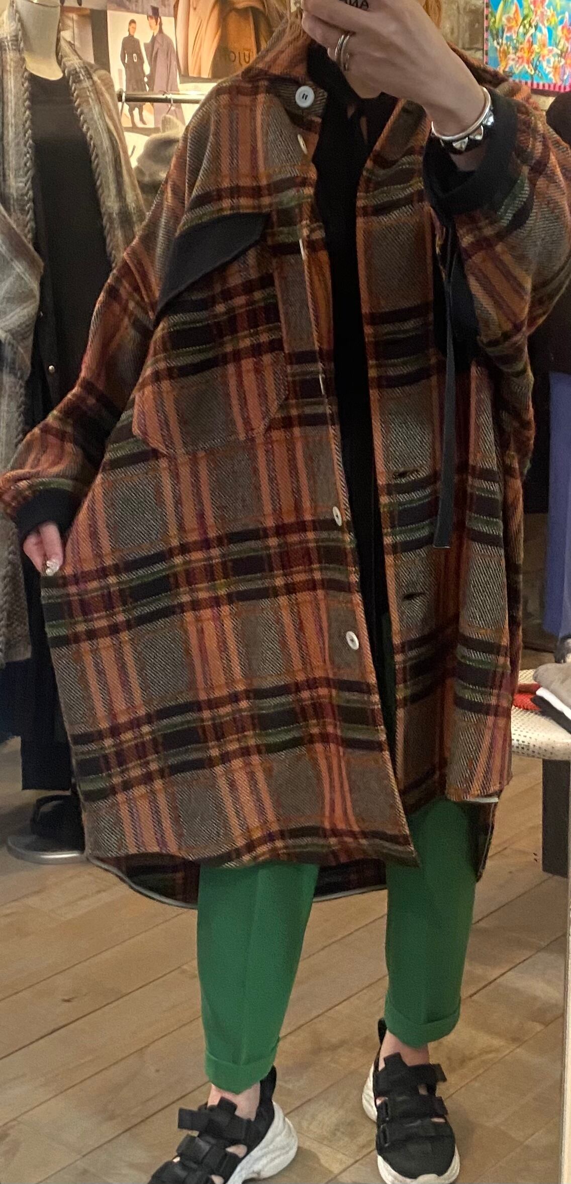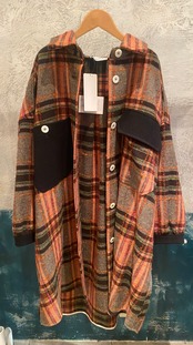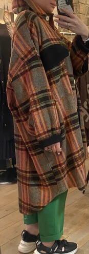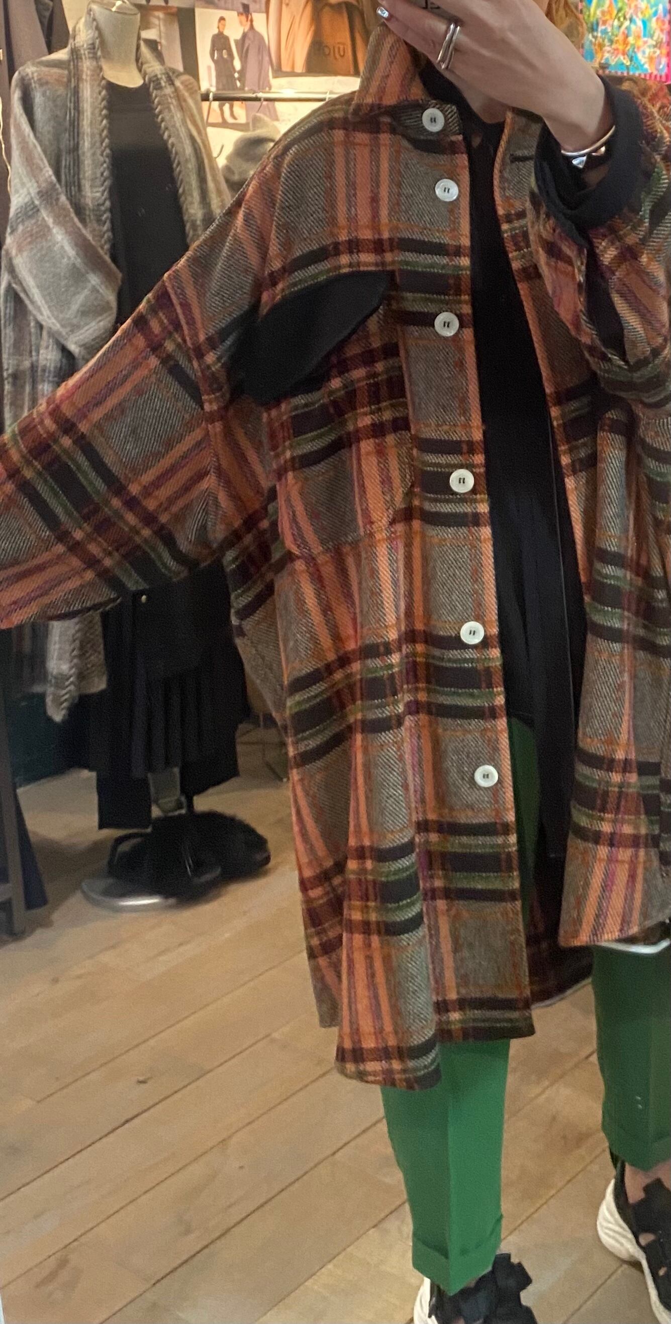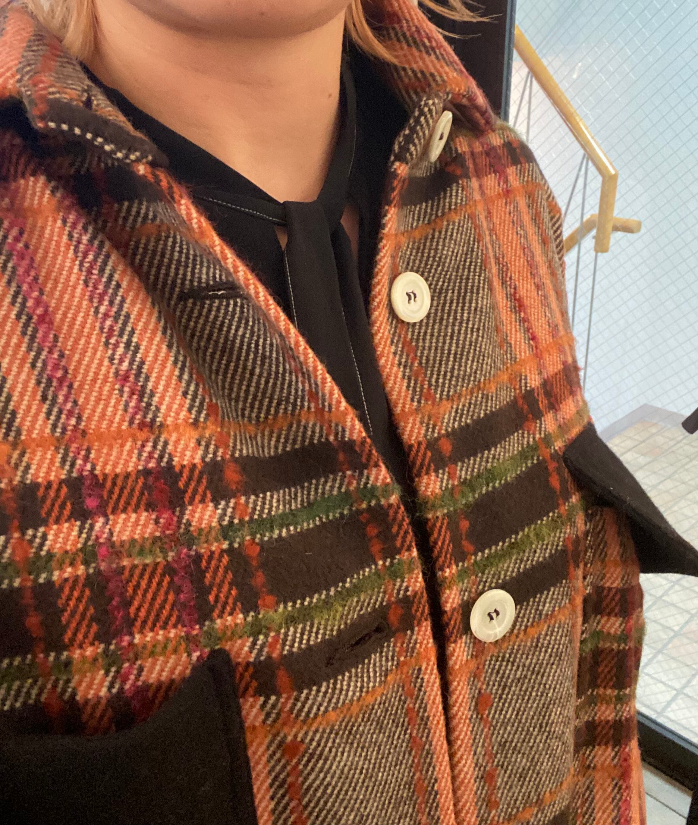 オーバーサイズのシルエットで、配色、素材感、左右で違うデザインのポケットなどが素敵です⭐️ 後ろ長のシルエットで、パサッと着て頂けます♪
