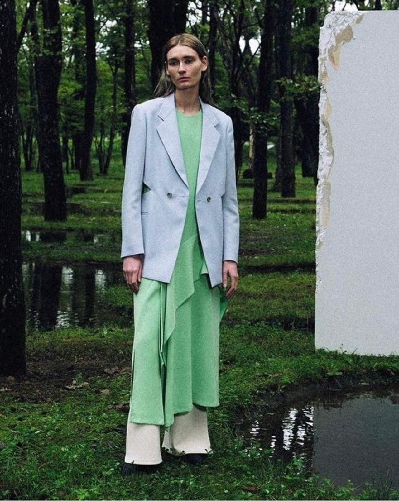 オチ感のある素材感で、シルエットがとっても綺麗です! 裾にスリット有り