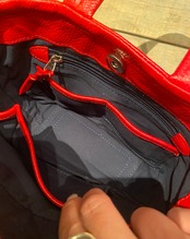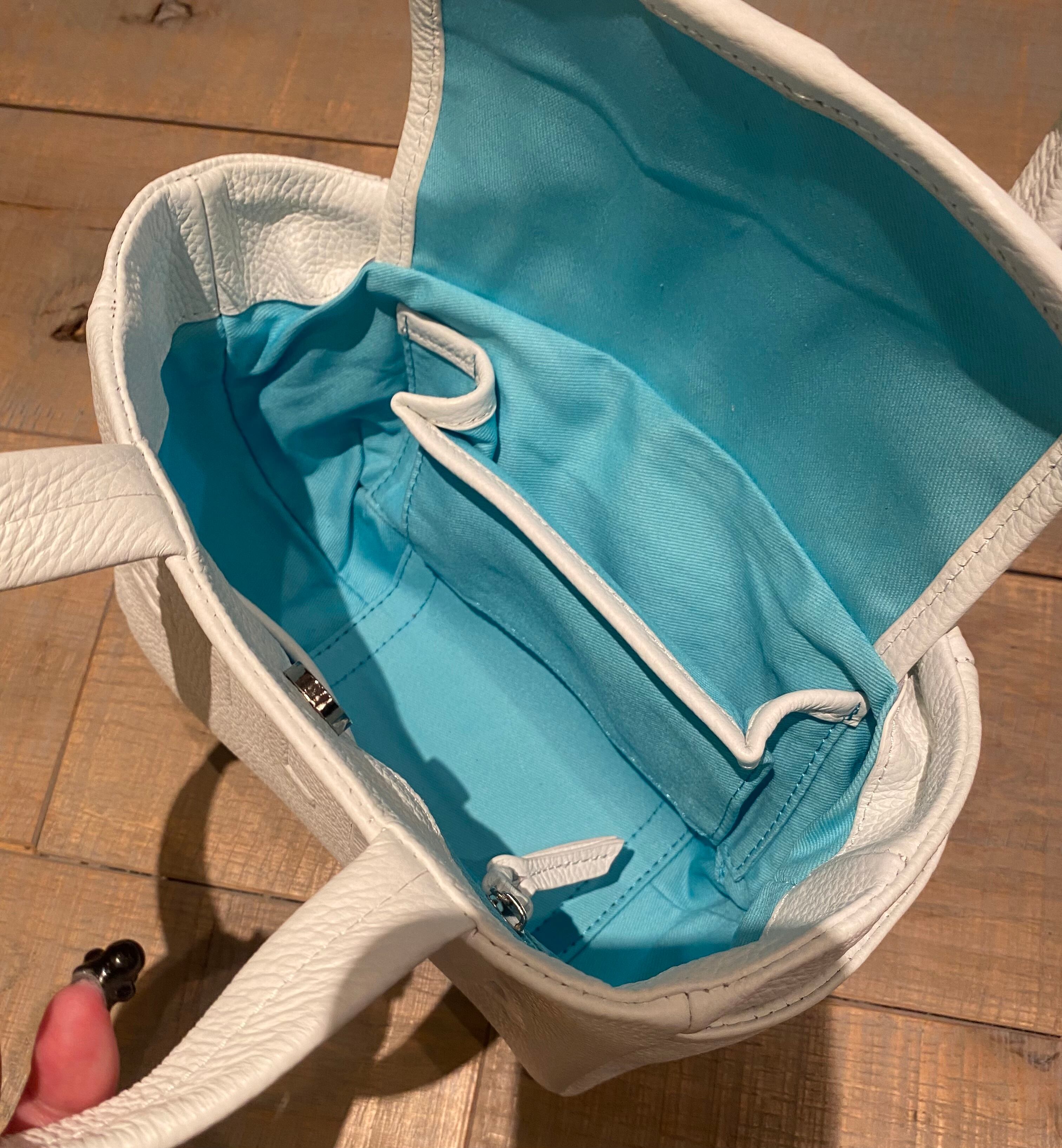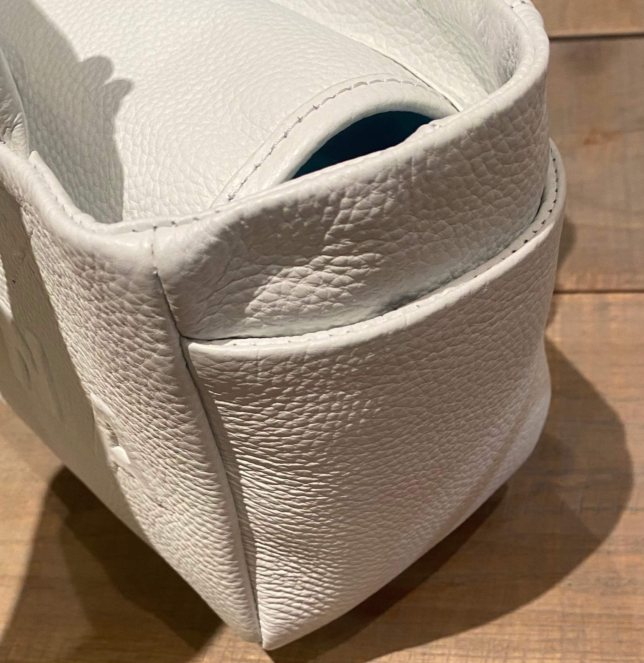 小さいbagですがマチもあり容量もある使い勝手のいいデザイン。内ポケットも充実しています!!牛革で、使い込んでいくたびにアジが出ます♪ ブランドのロゴがポイントで、シンプルでコンパクトさがなんとも言えない可愛いさが◎