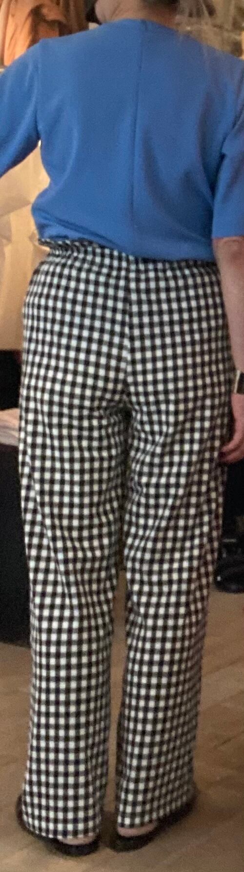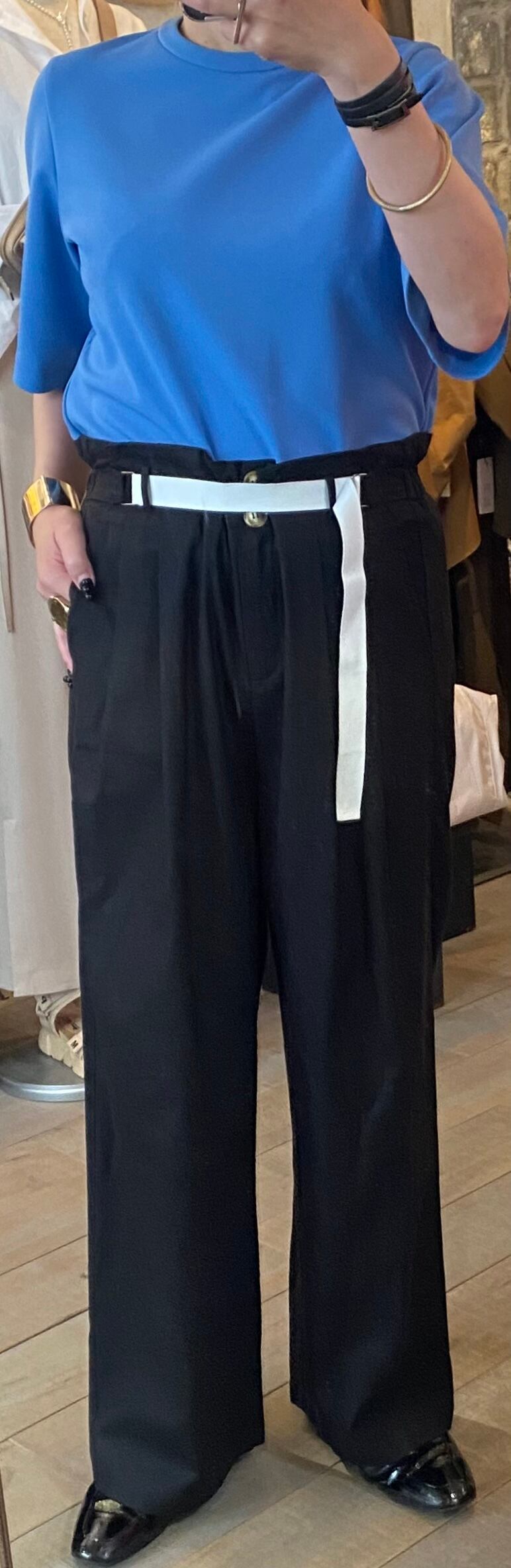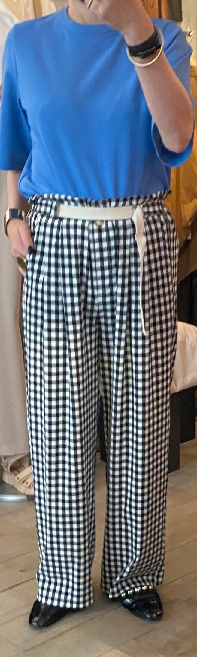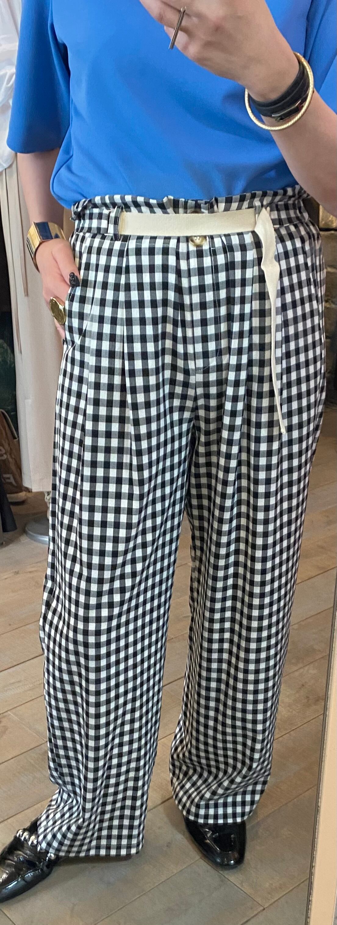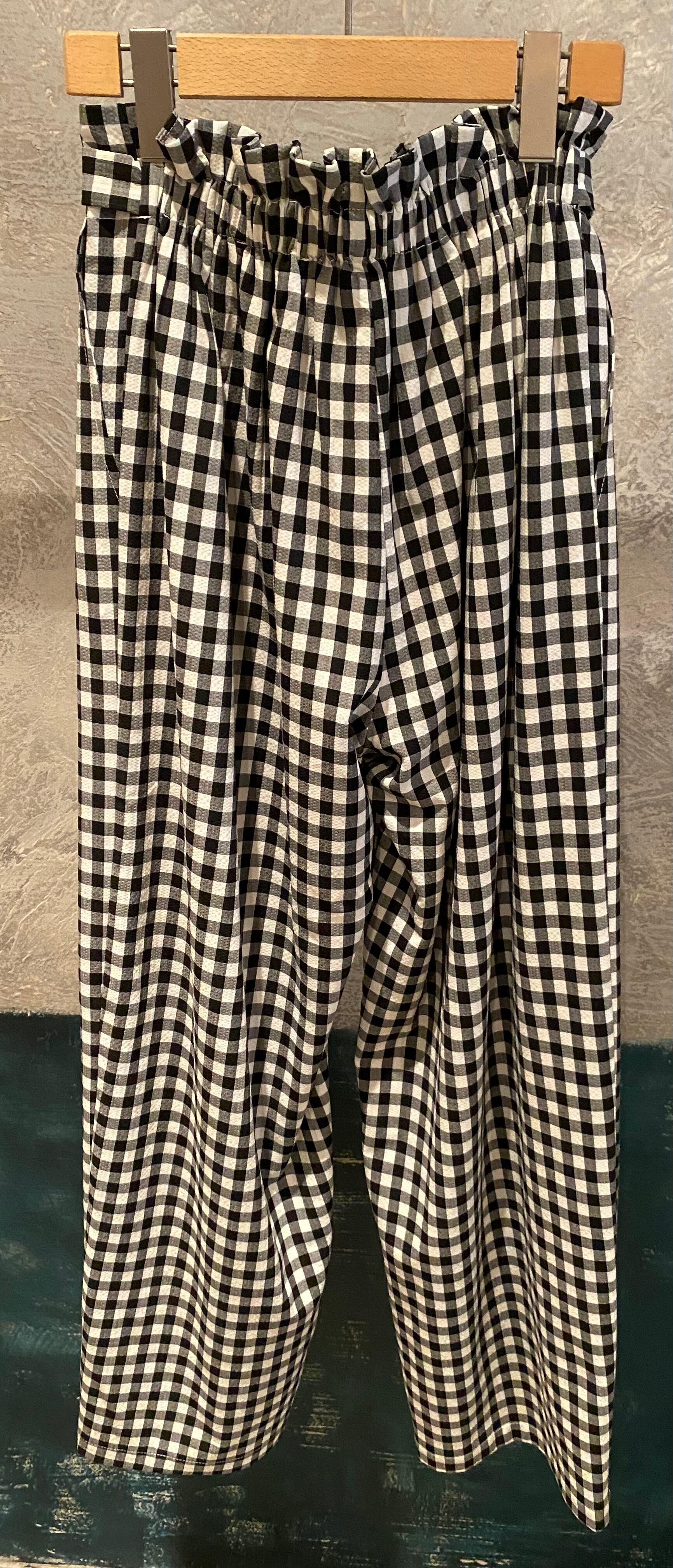 ベルトでウエスト調節可能のパンツは、ベルトがポイントにも❗️ウエストの後ろがゴムになっているのでとっても楽ちん!! オチ感のある誰でも履きやすいくらいの太さのパンツ☆チェックとブラックの無地は同型ですが生地違いになります。