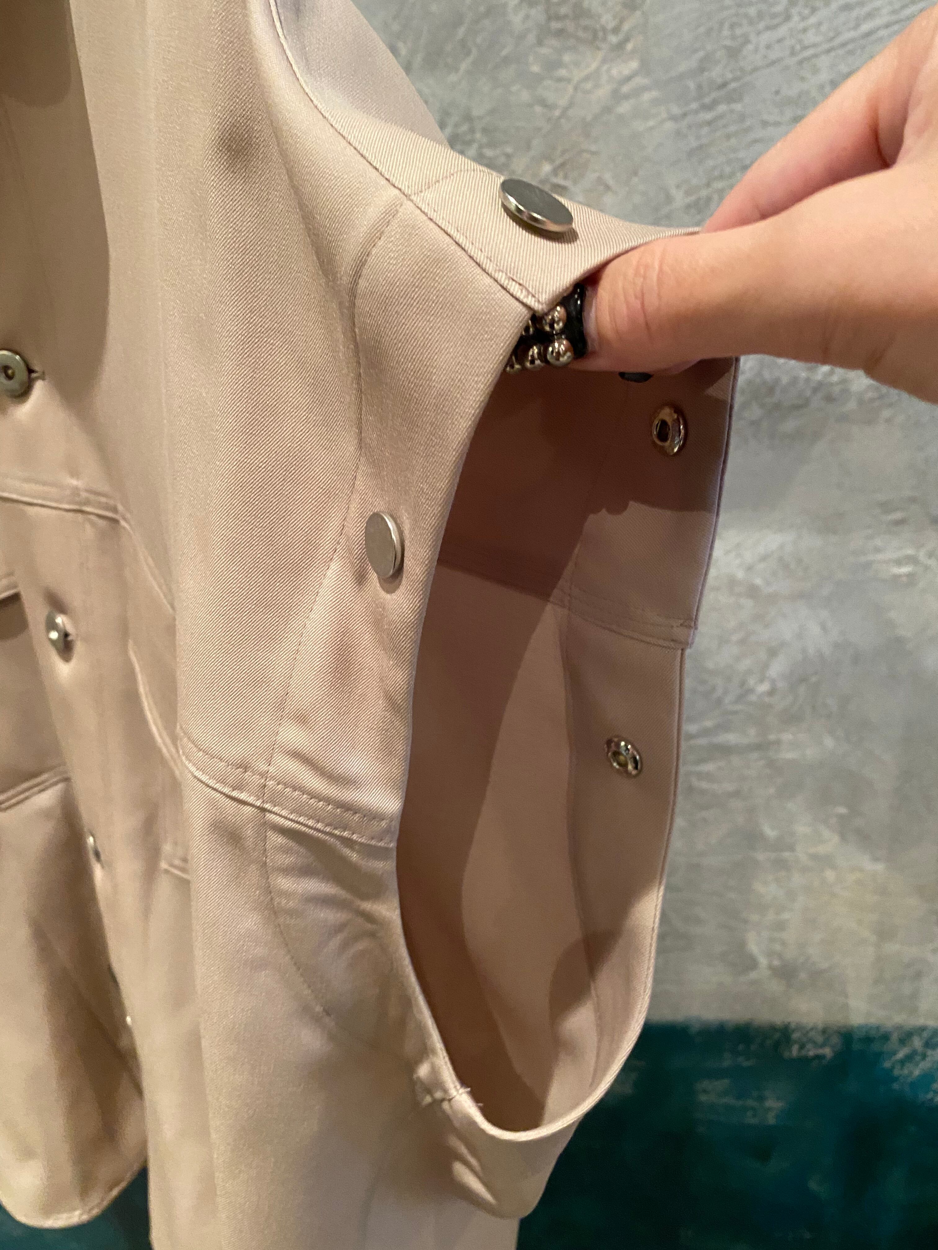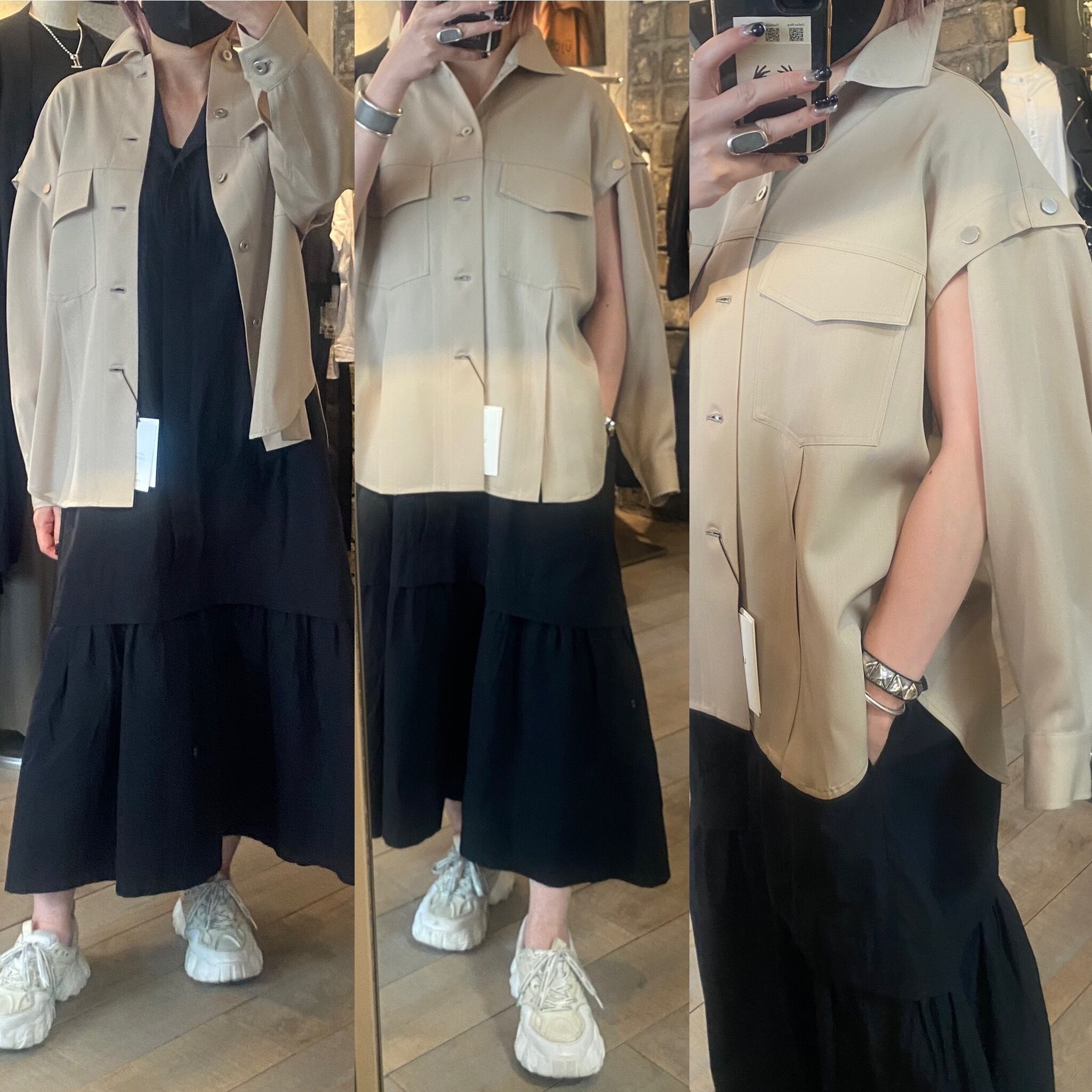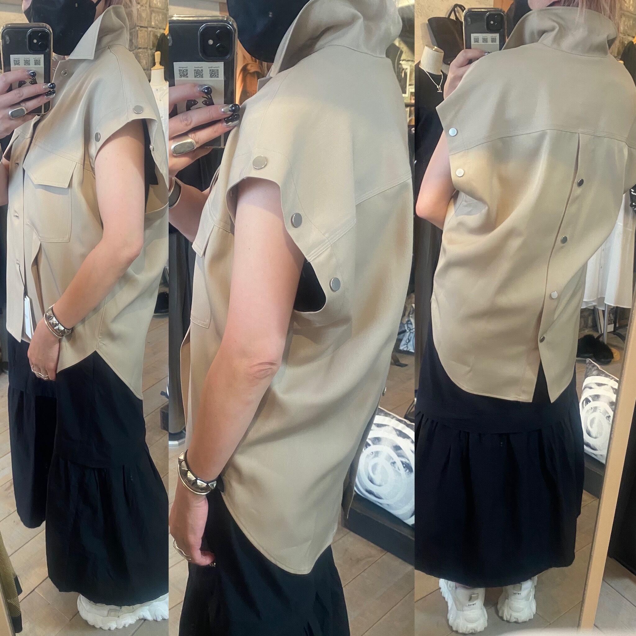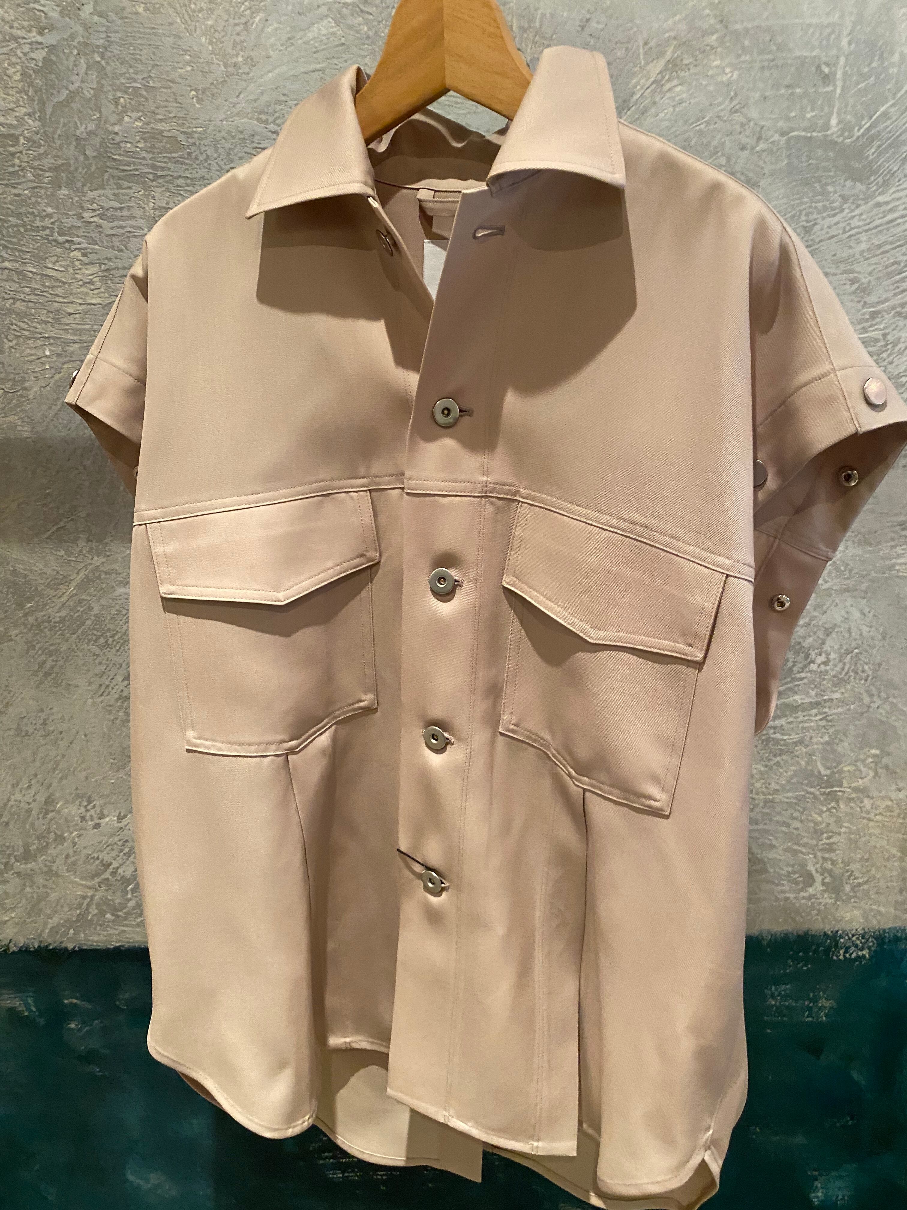 脇下の部分から腕を出す着方や、お袖をとってベストとしても活用でき、閉めてブラウスっぽく着ても開けてジャケットとしても◎ 色々レイヤードに便利なアイテム❗️ふんだんに付いたボタンもポイントに。