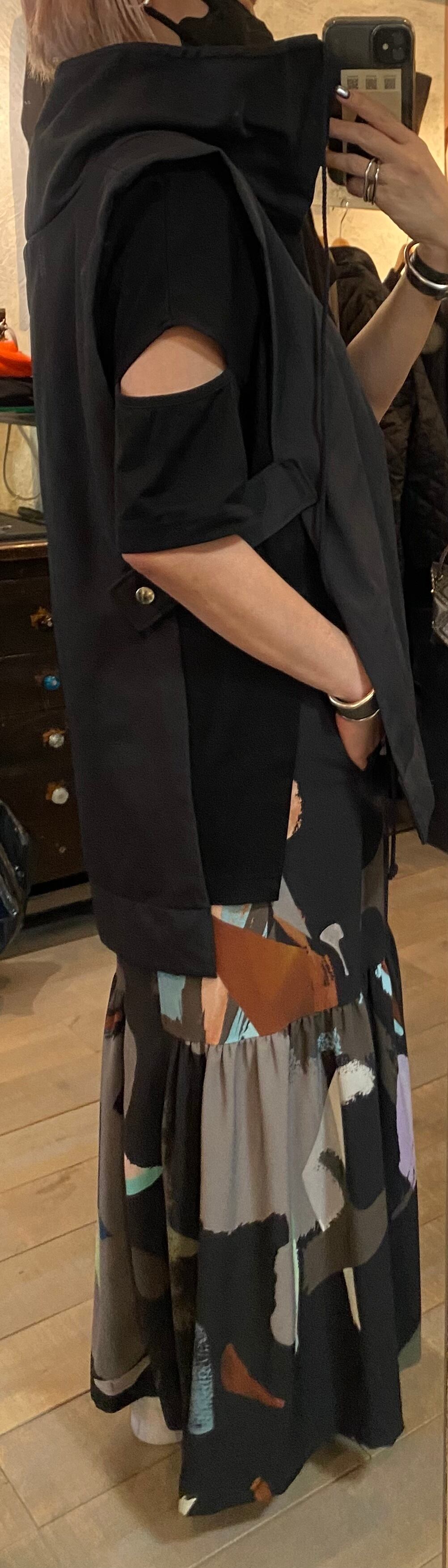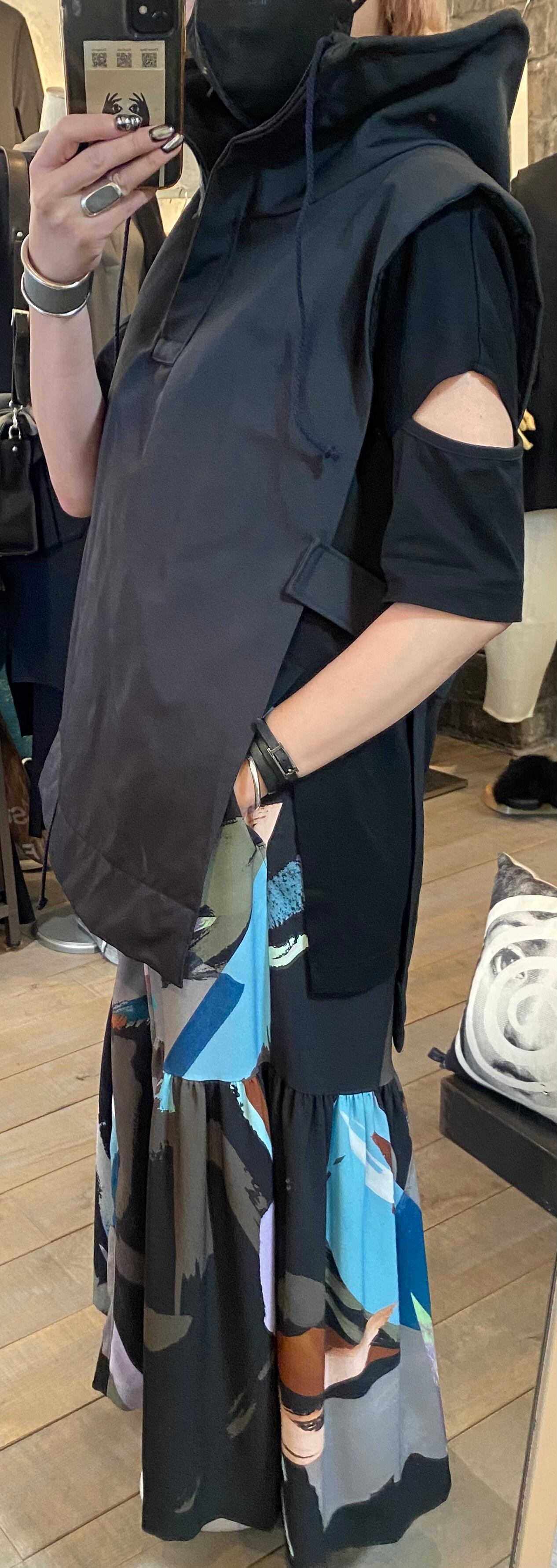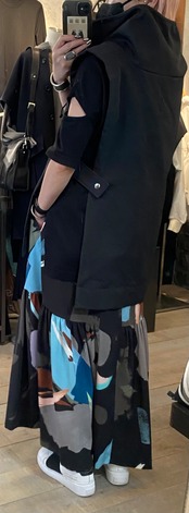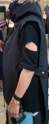裏がキルティングになっていて薄手の中わた入り。スタンドになる襟元がポイントで、ファスナーの開閉やギャザーの寄せ具合で表情が変わります❗️真夏以外着回せるレイヤード活用アイテム♪インナーはカットソー、ブラウス、厚手のニット、ジャケットまで何でもレイヤードできます。レイヤードするだけでスタイリングがワンランク上がるアイテムです!!上品な光沢感とハリ感も特徴的です。