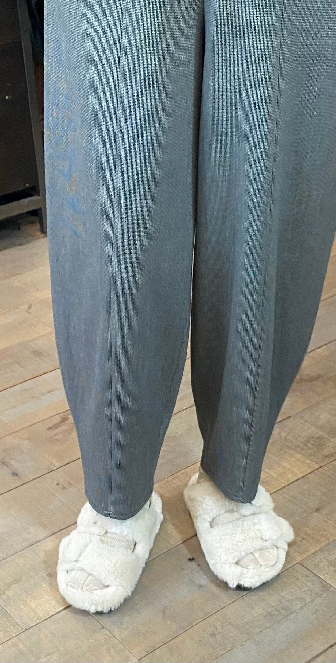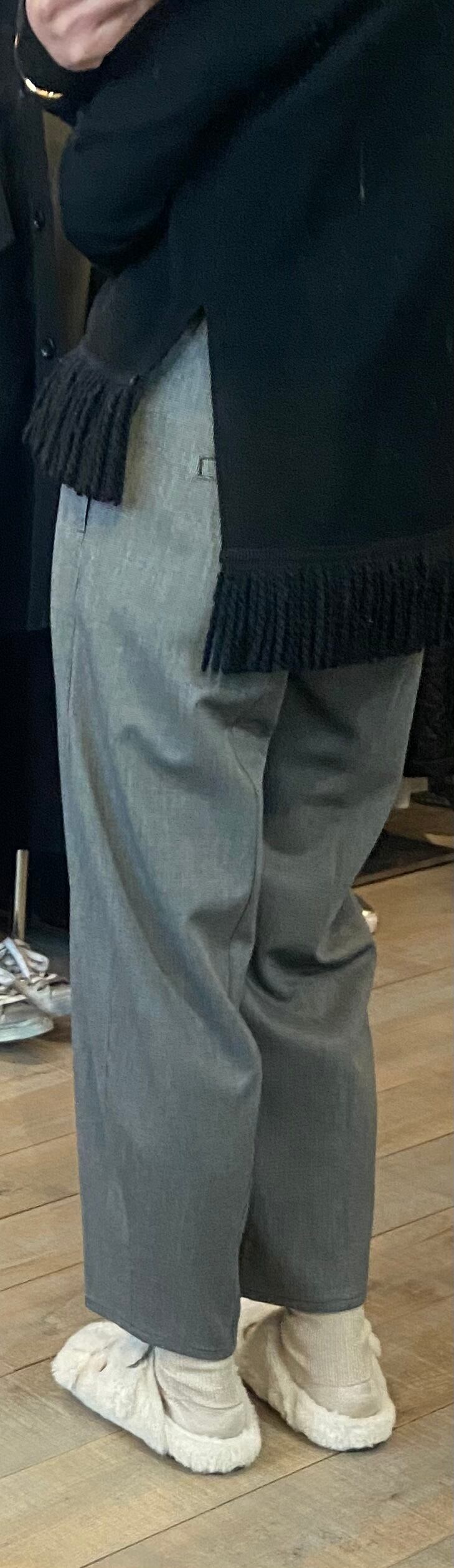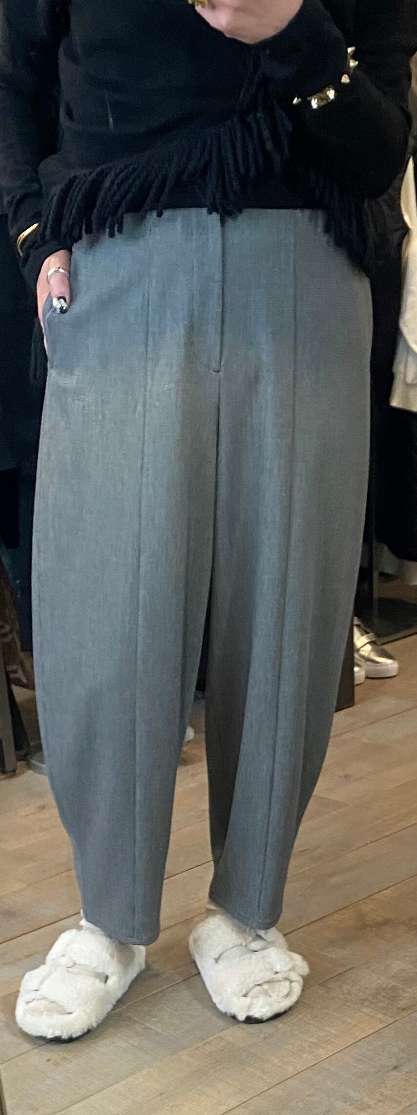 適度なボリュームのシルエット。バルーンパンツでも、前後と縦に施した切り替えでかなりスッキリ細見えするデザイン。合わせるトップスも選ばないヘビロテアイテムです☆見た目は分厚いパンツではないのですが、裏が少々起毛感があり、これからの季節にぴったり♪