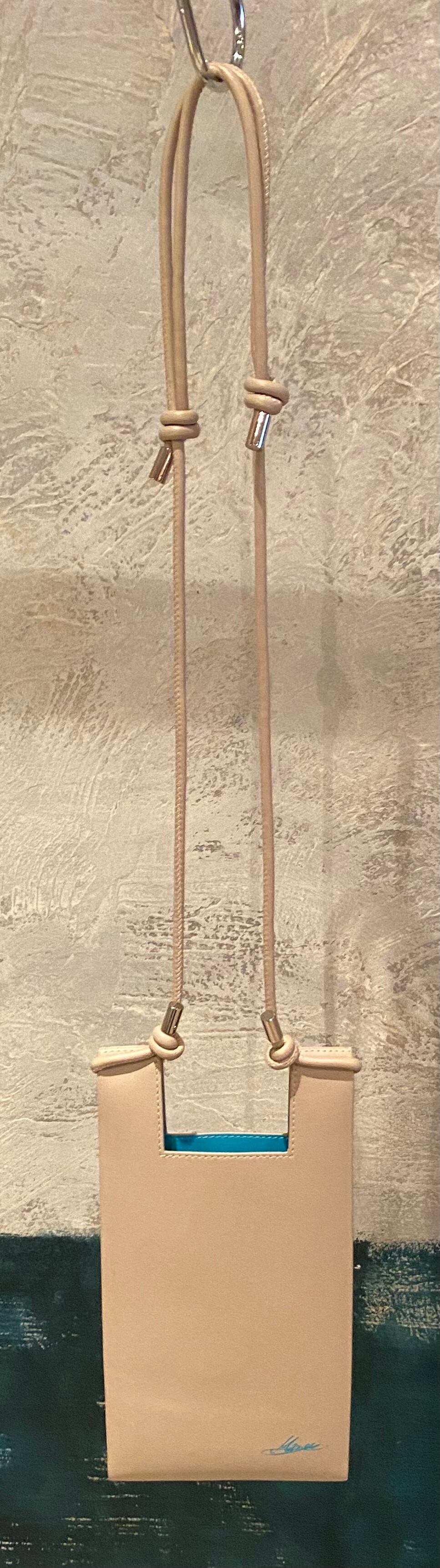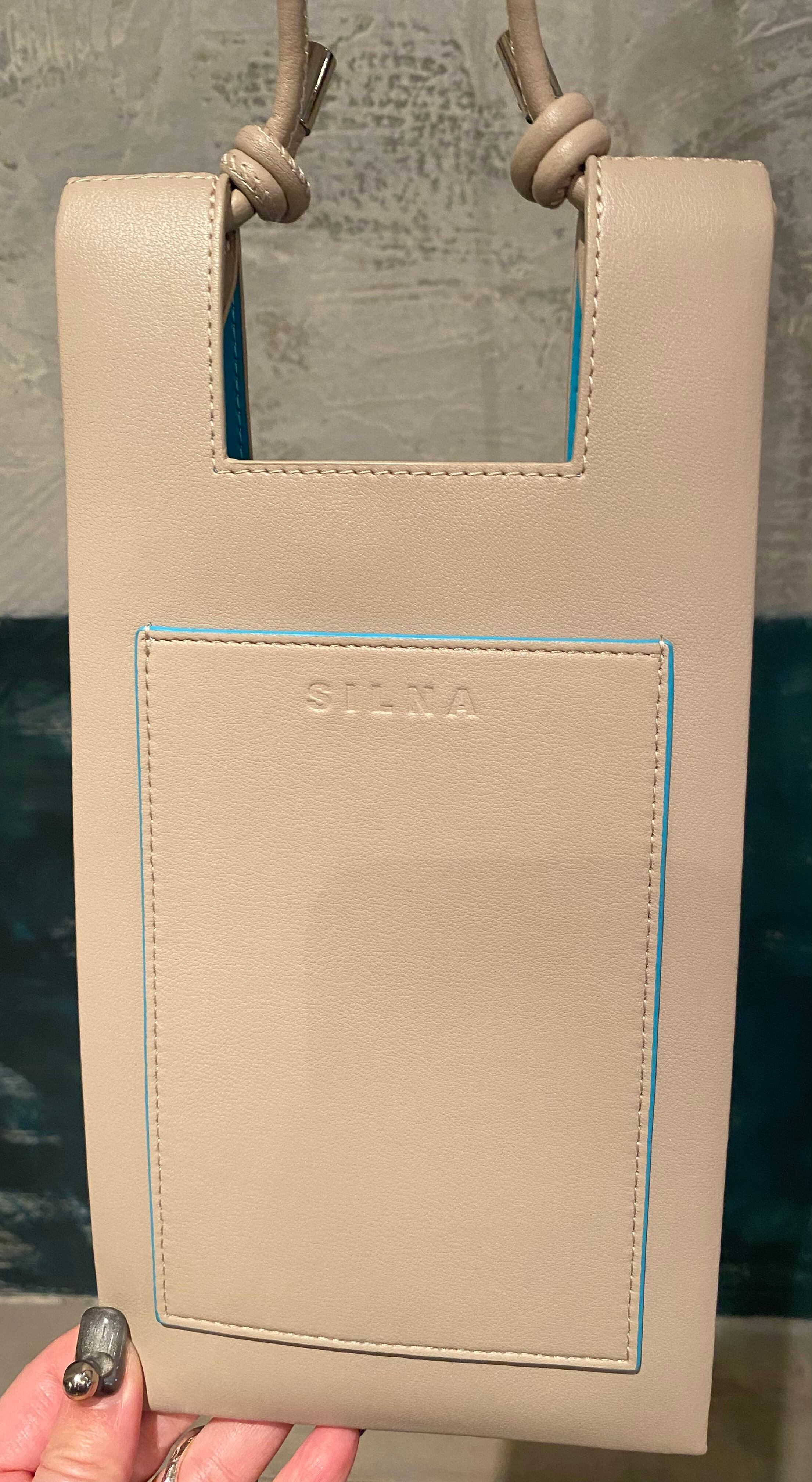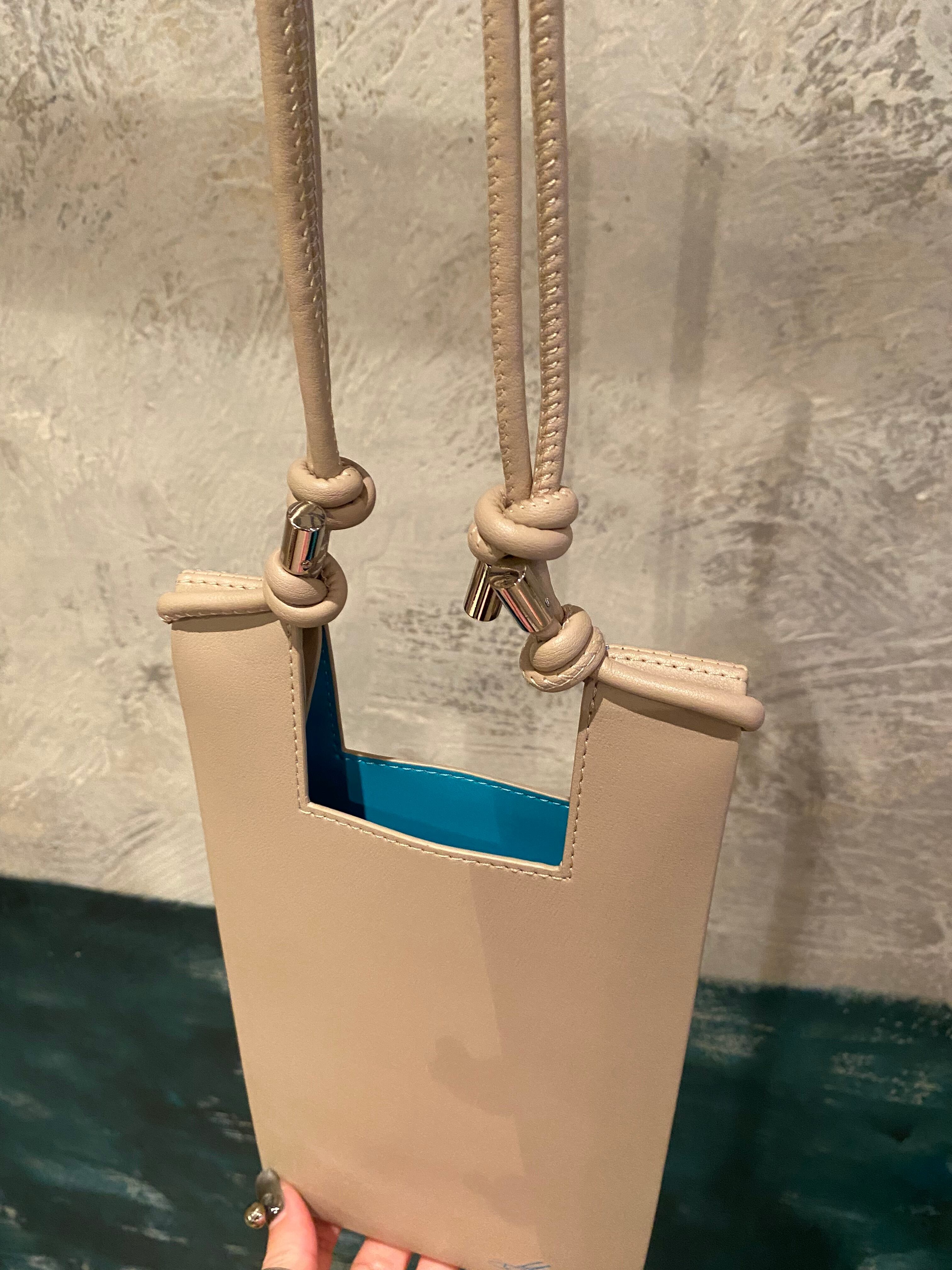 チラッと見える裏のカラー配色がポイント。ショルダーの長さも調節可能です。携帯電話が入るほどの大きさの外ポケットがあり、メインの方にお財布や必要最低限の荷物が入るので使い勝手も◎こちらは牛革で質感も柔らかいです☆