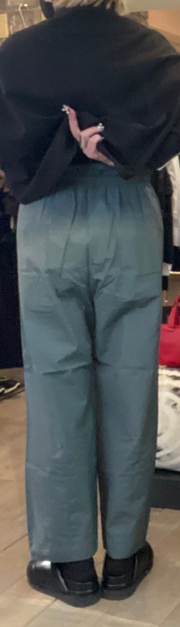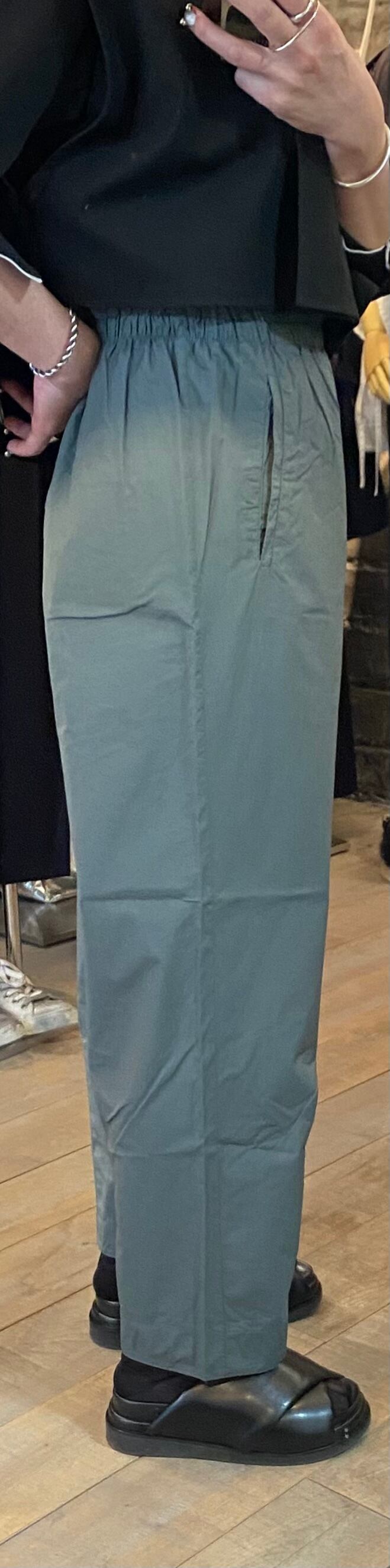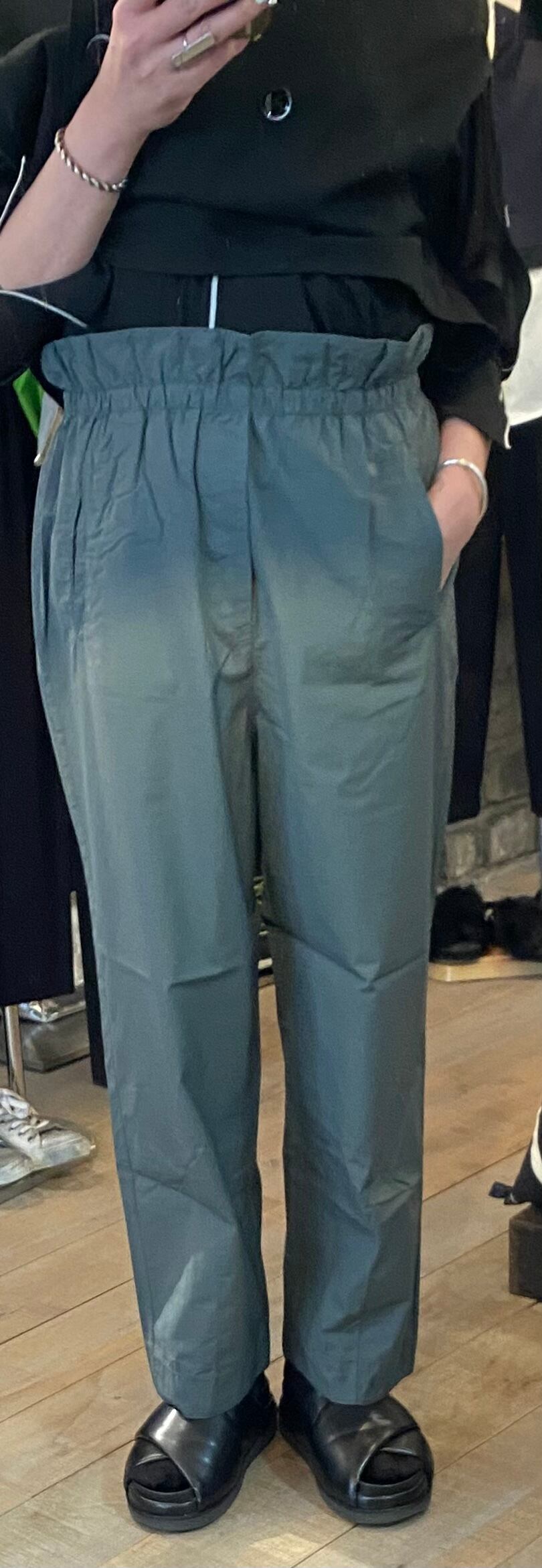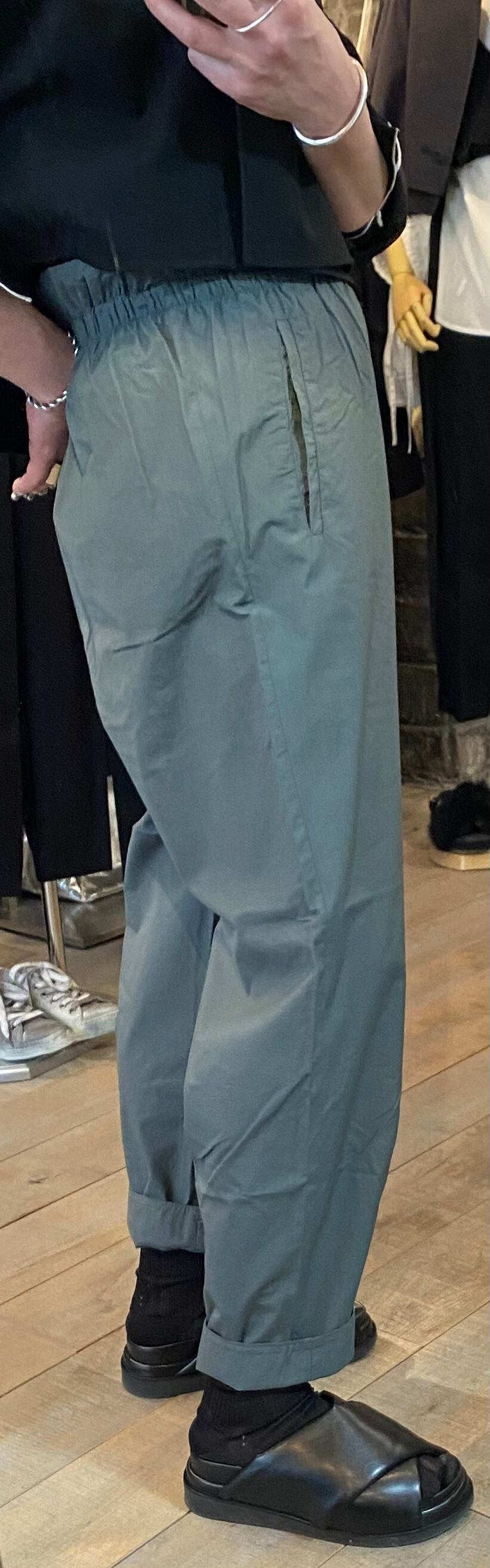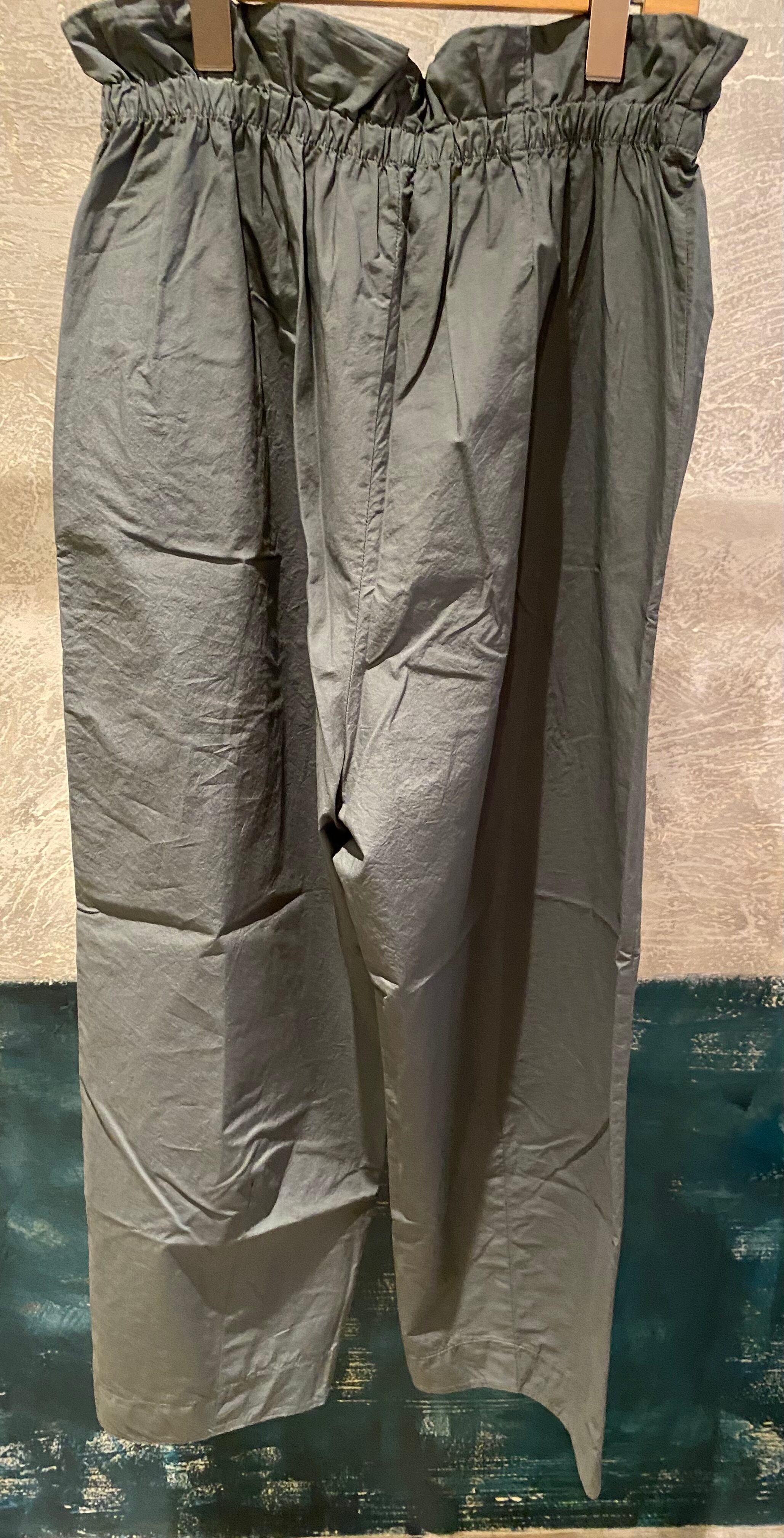 ウエスト楽ちんな総ゴム。両サイドポケット有り。裾が少しバルーンっぽいシルエットになるようにデザインされていて、こちらもロールアップするのも◎