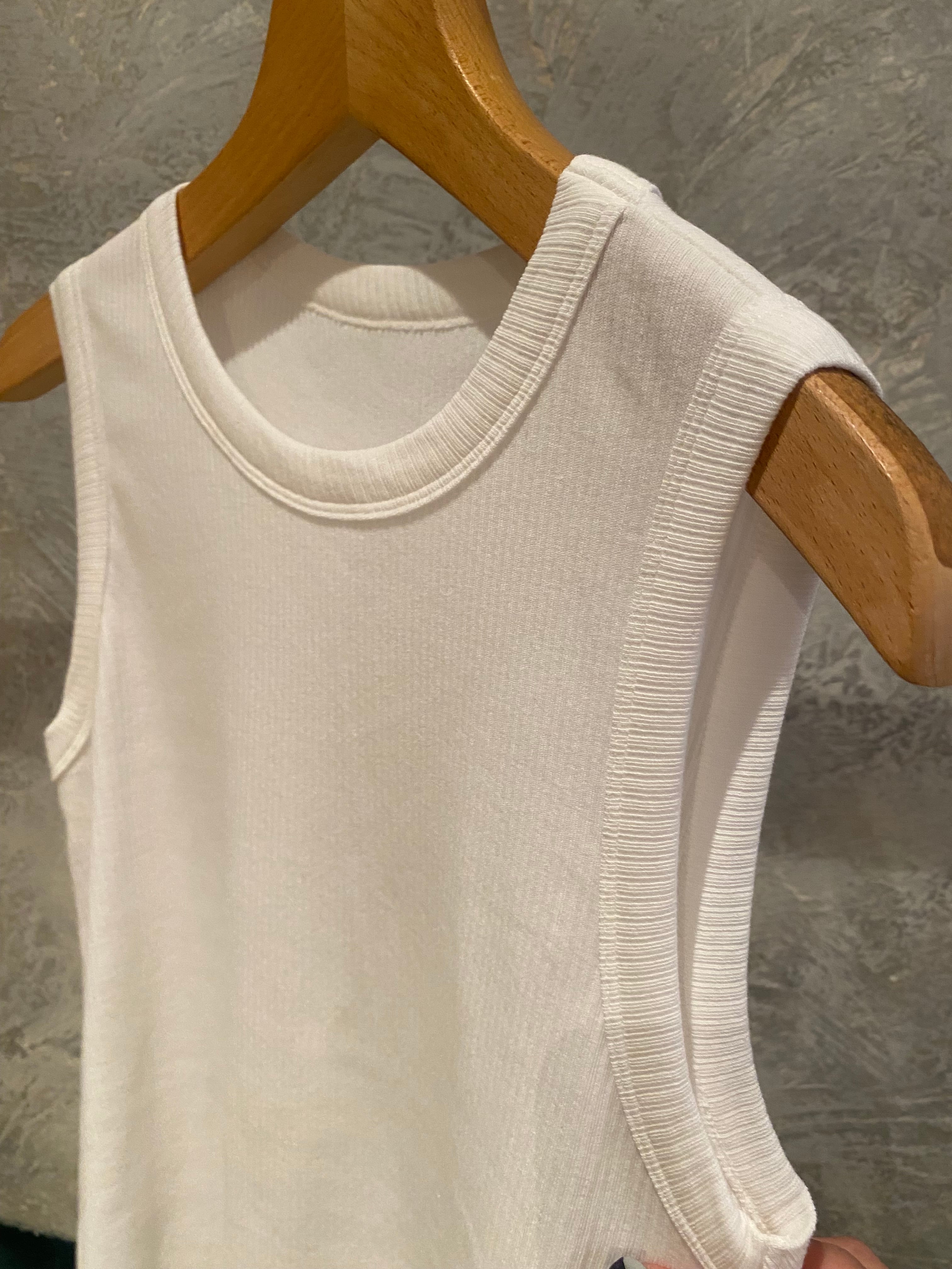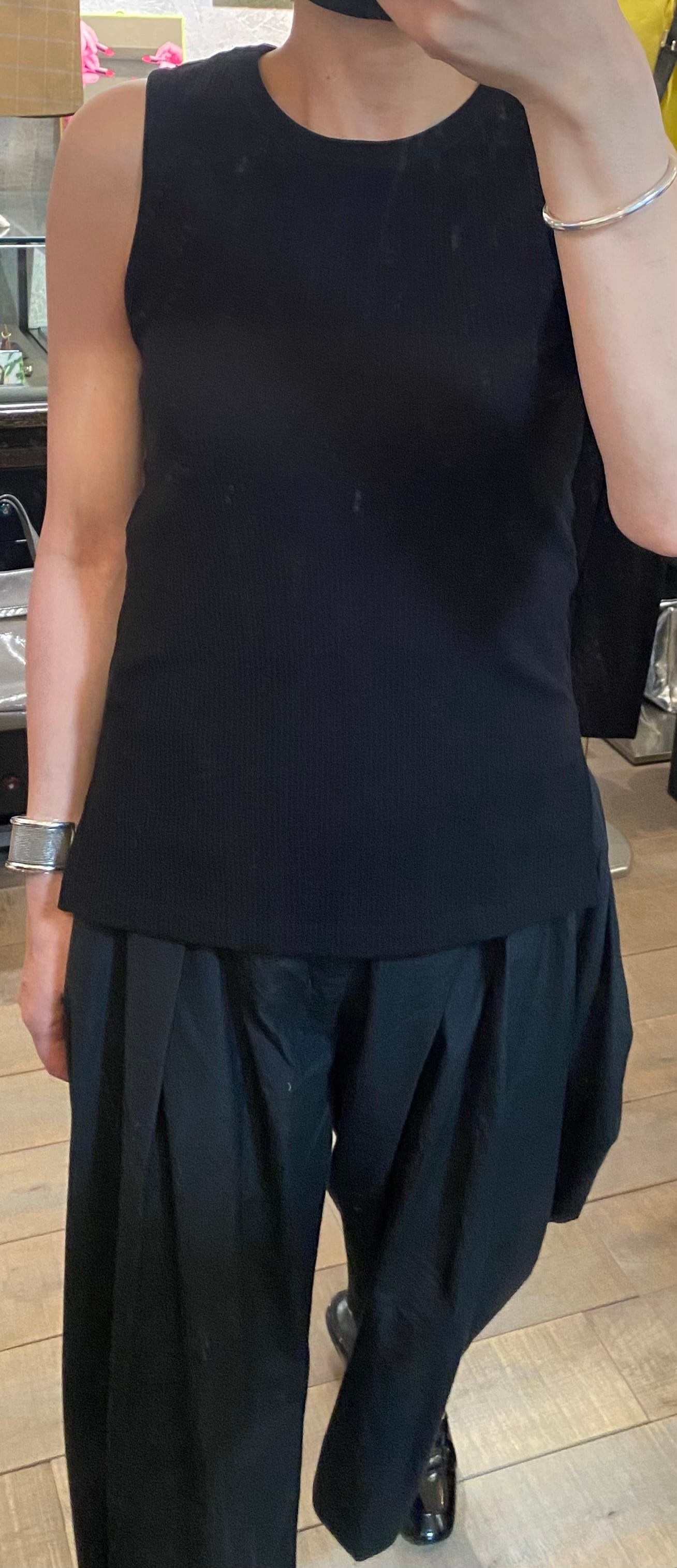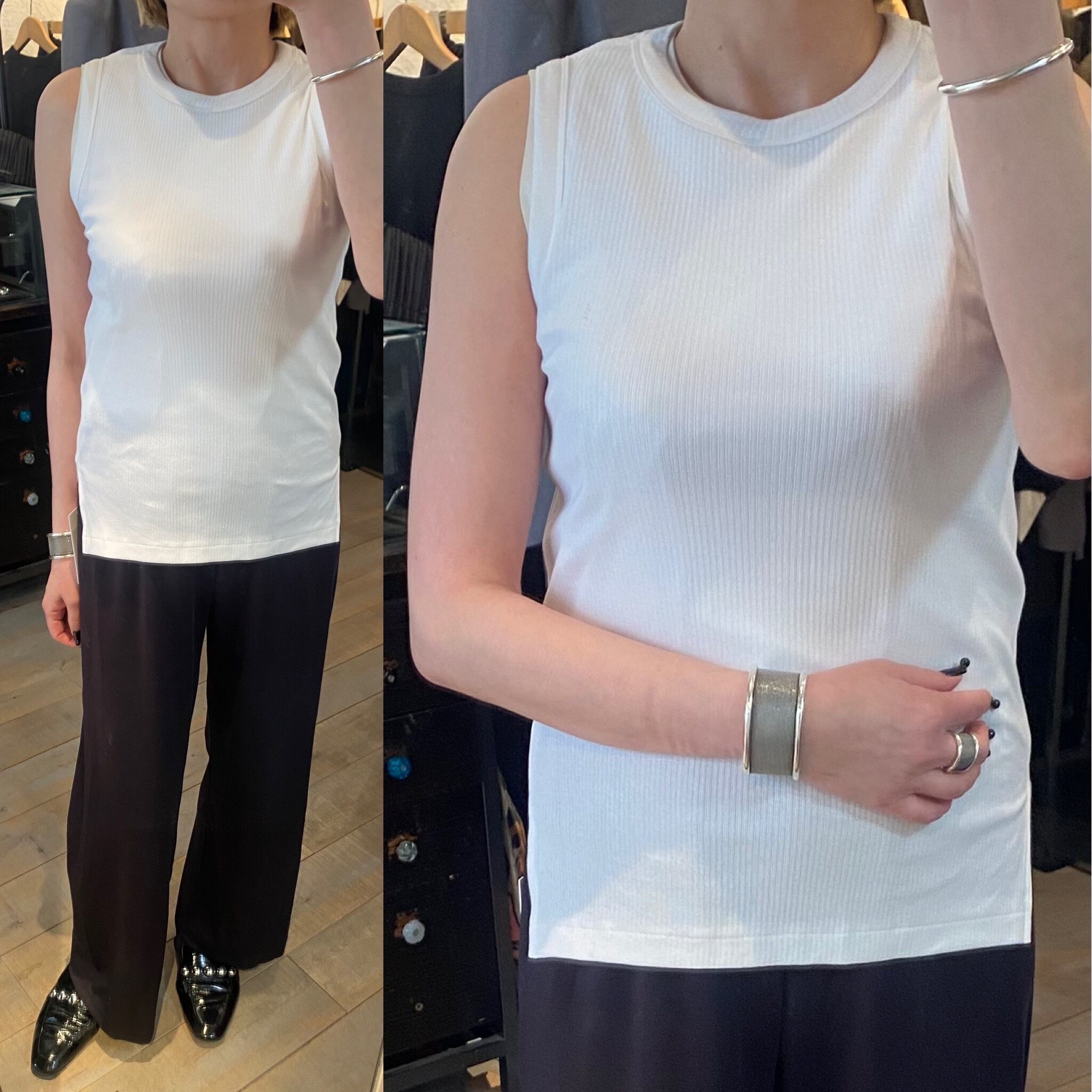 リブタンクトップは2型。ネックの詰まったタイプと前後Uネックのデザイン。いずれも伸縮性もあり着心地抜群でインナーにとってもオススメ♪