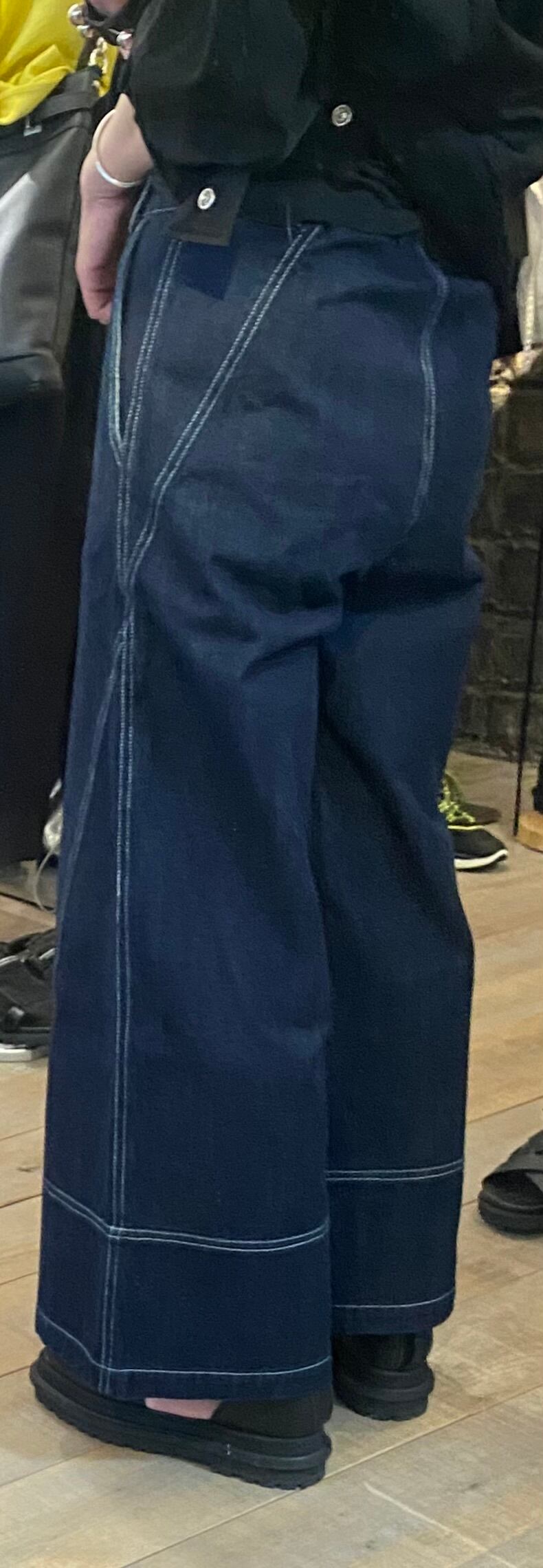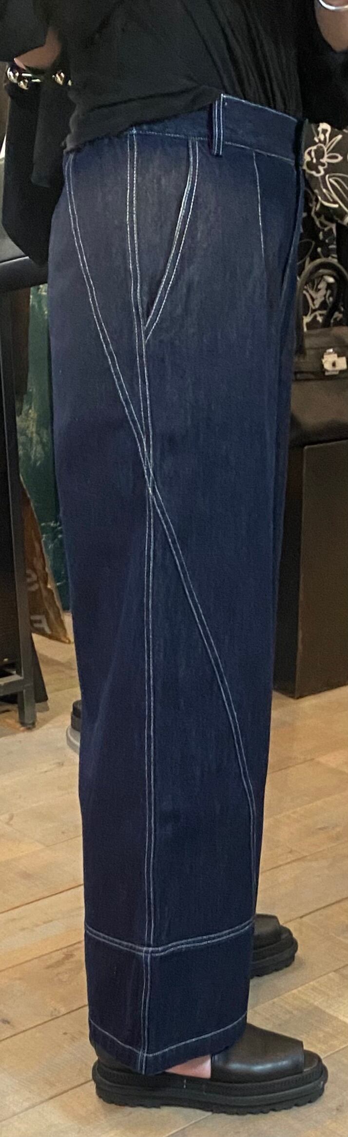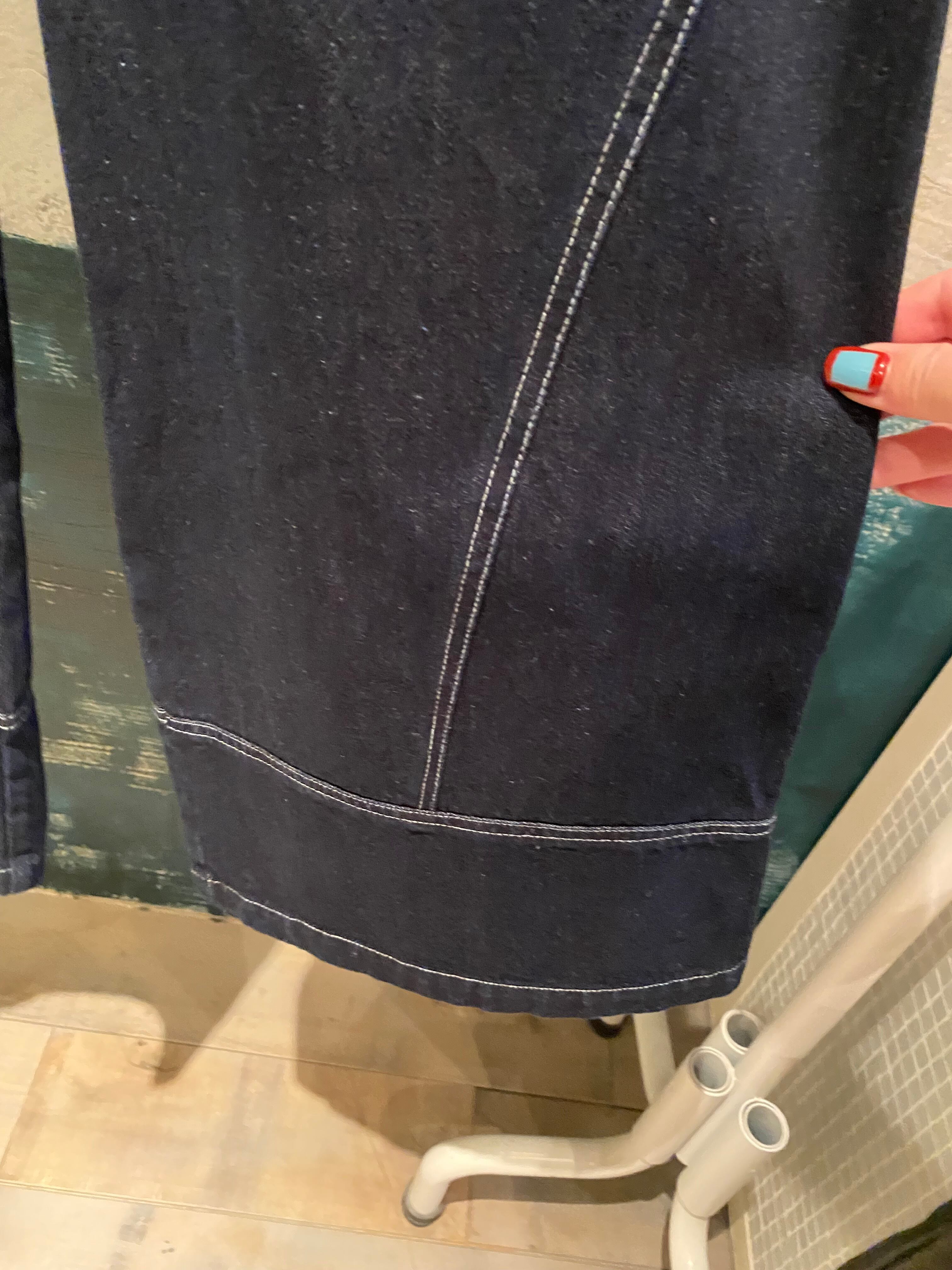 ステッチのデザインがポイントで、スッキリと見せてくれ、ウエストの後ろ側がゴム仕様で履き心地も抜群。シーズンレスで着回せるのも嬉しいところ。オチ感もありスタイルアップしてくれるボトムスです。