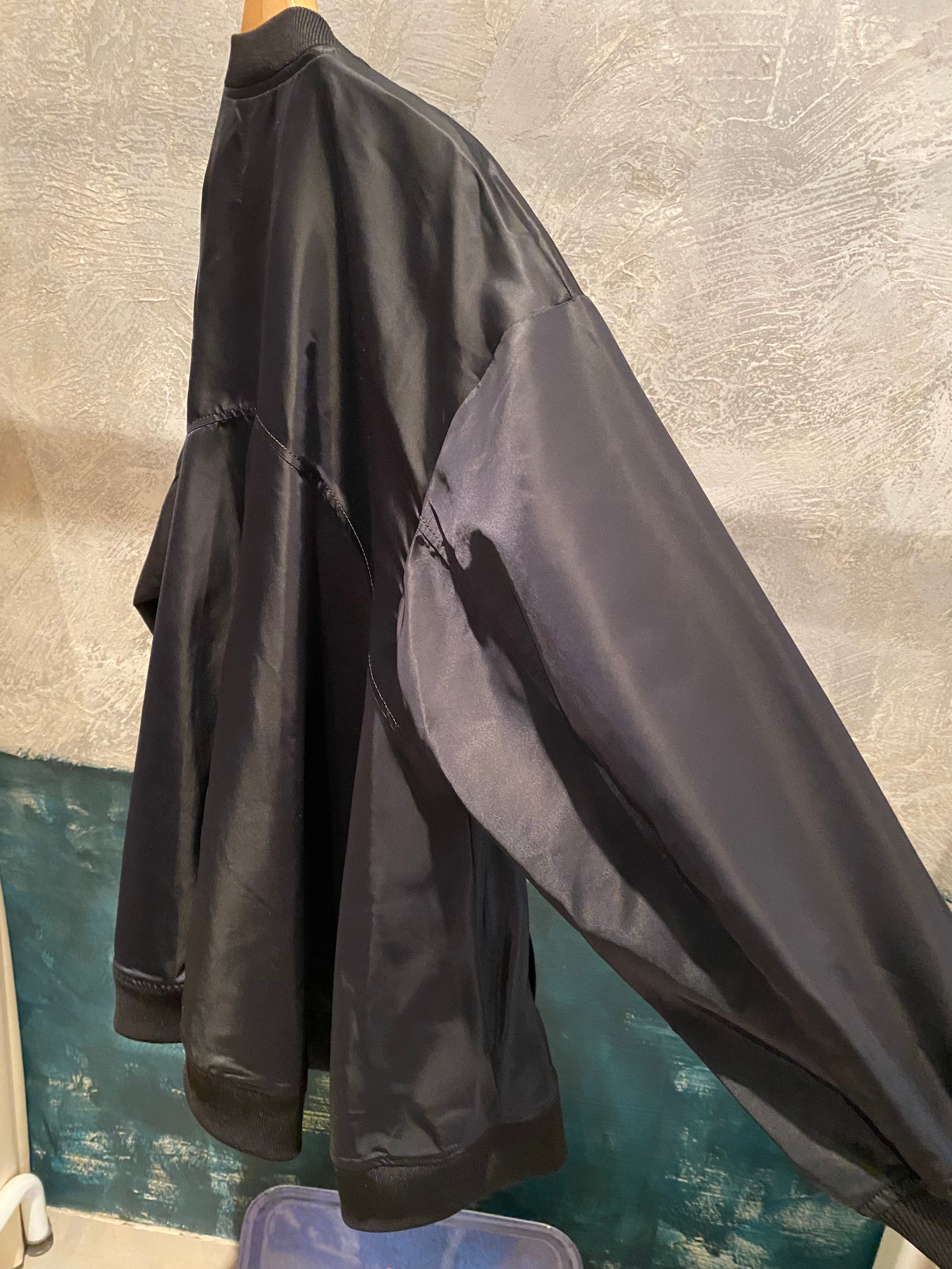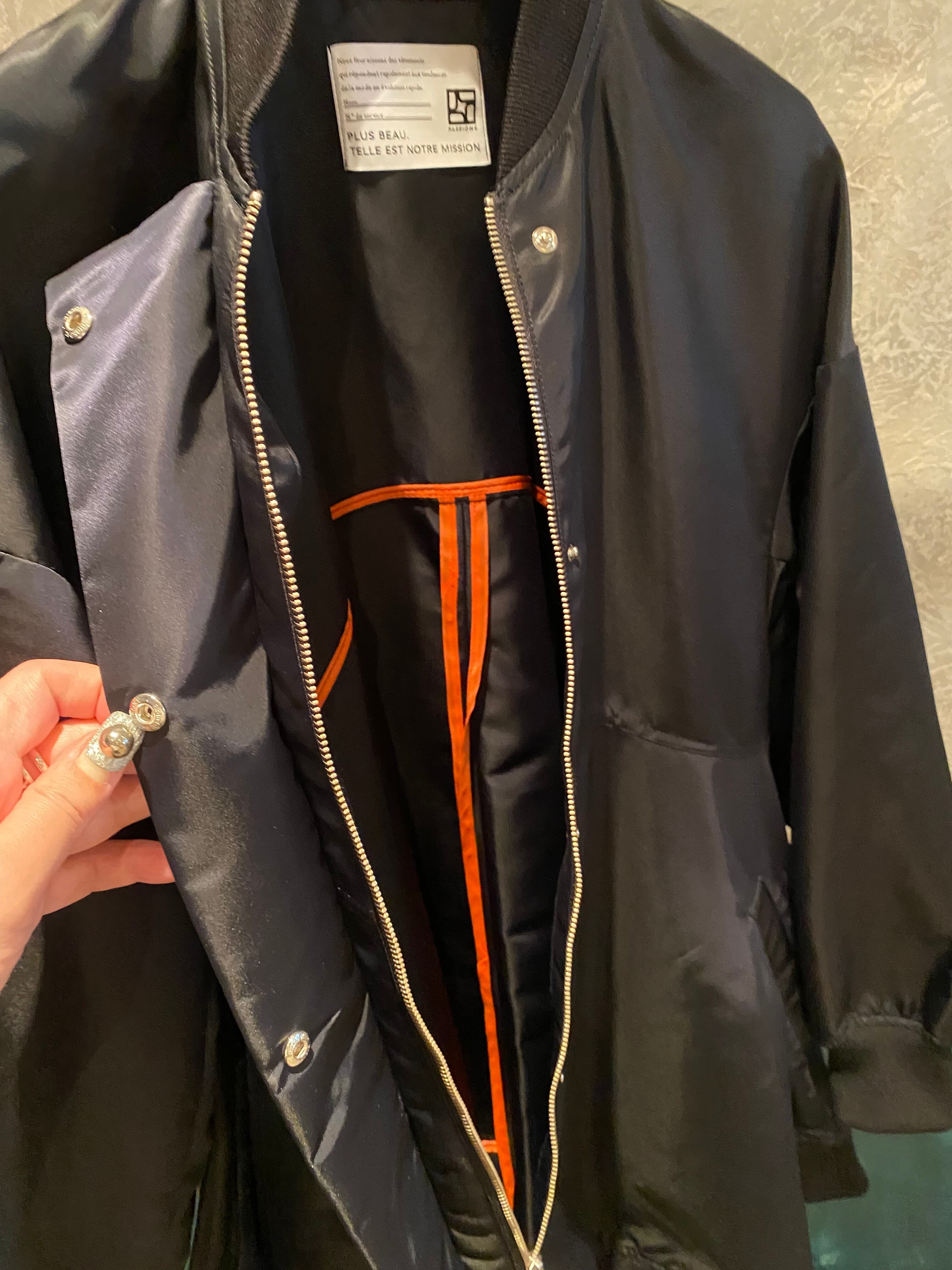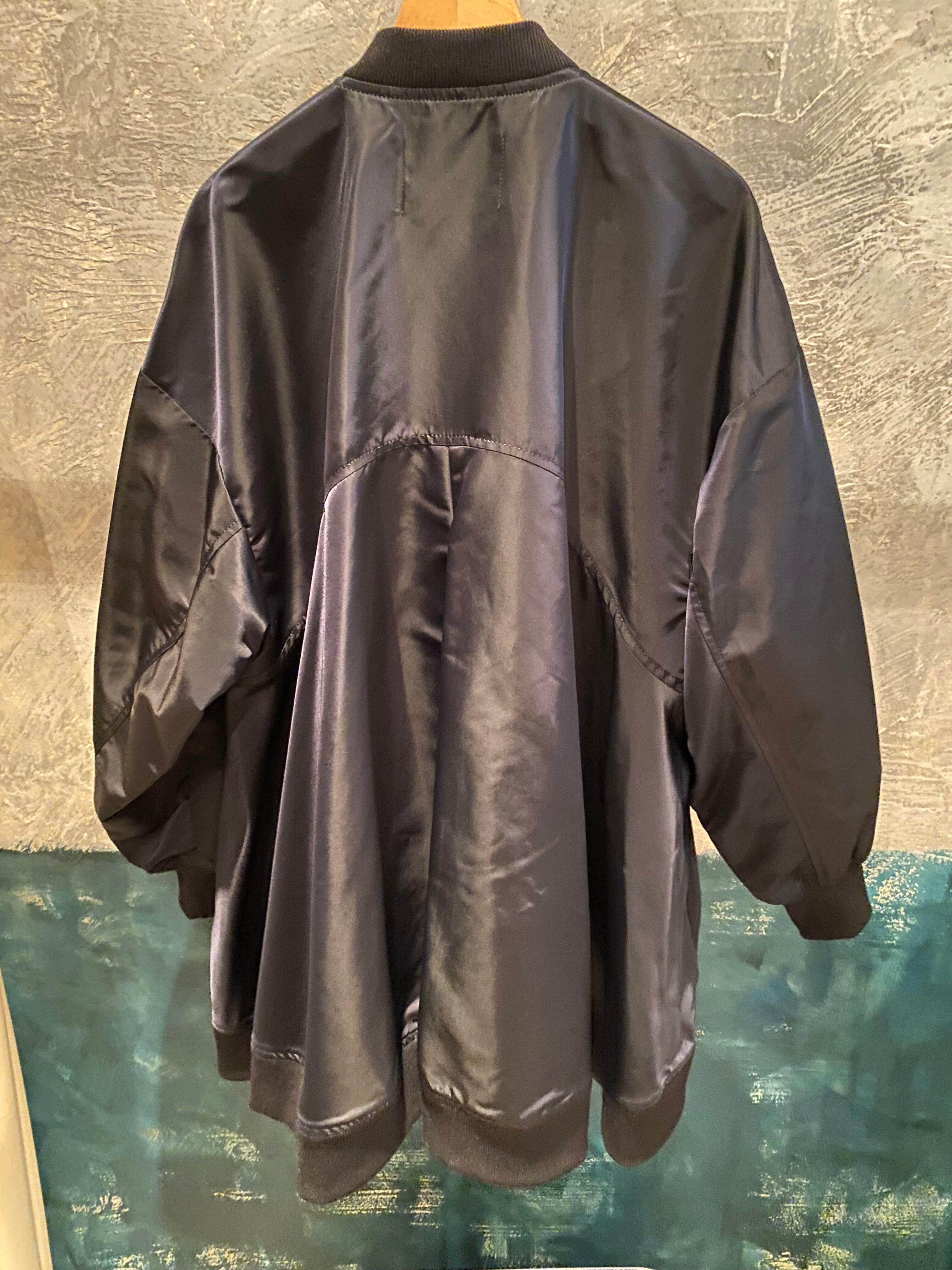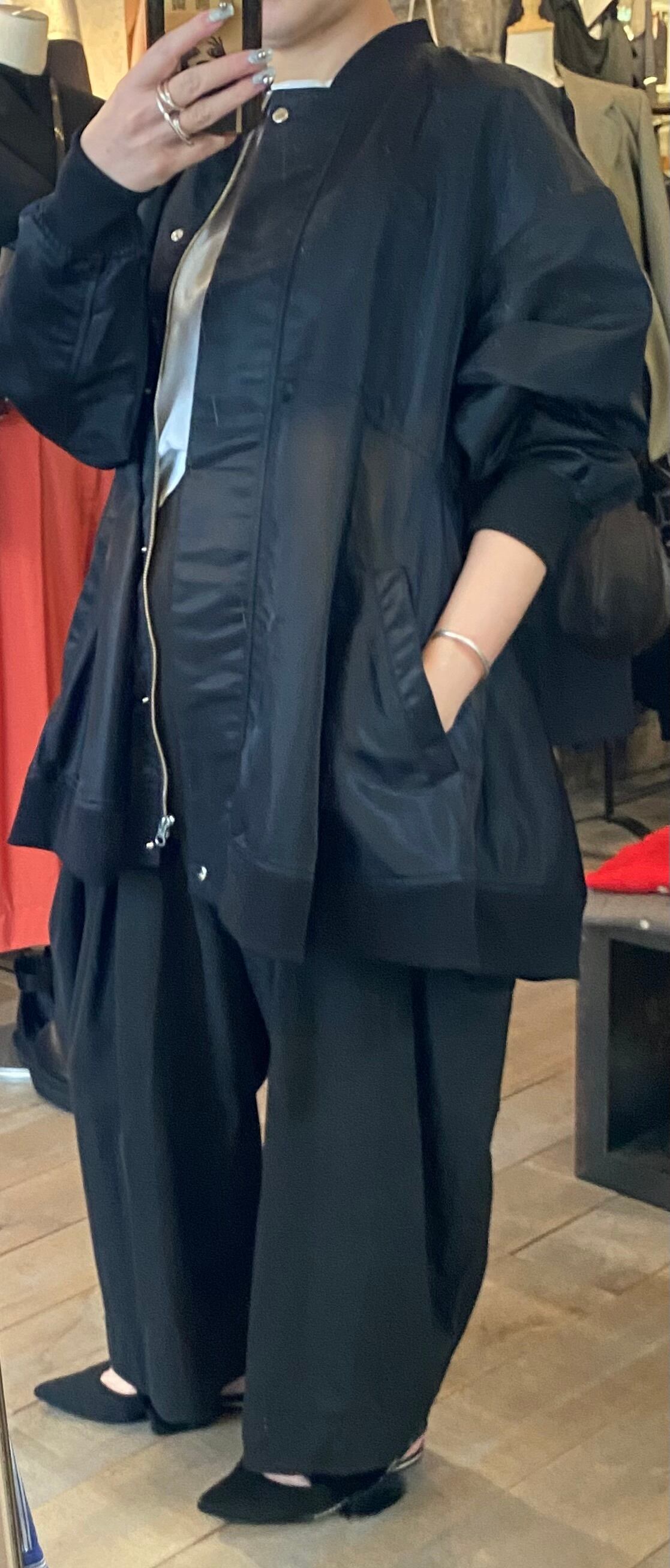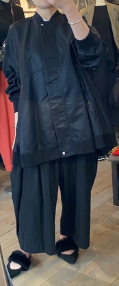 シルエットにこだわった blouson。前ファスナー、スナップボタン仕様。両サイドポケット有り。襟ぐり、お袖口と裾がリブ仕様。裏地はなく軽めの blousonなので、春、秋に活躍するアウター。中には着込んで頂けるので、ロングシーズンレイヤードを楽しめます。裾の方はAラインになった特徴的なシルエットです♪